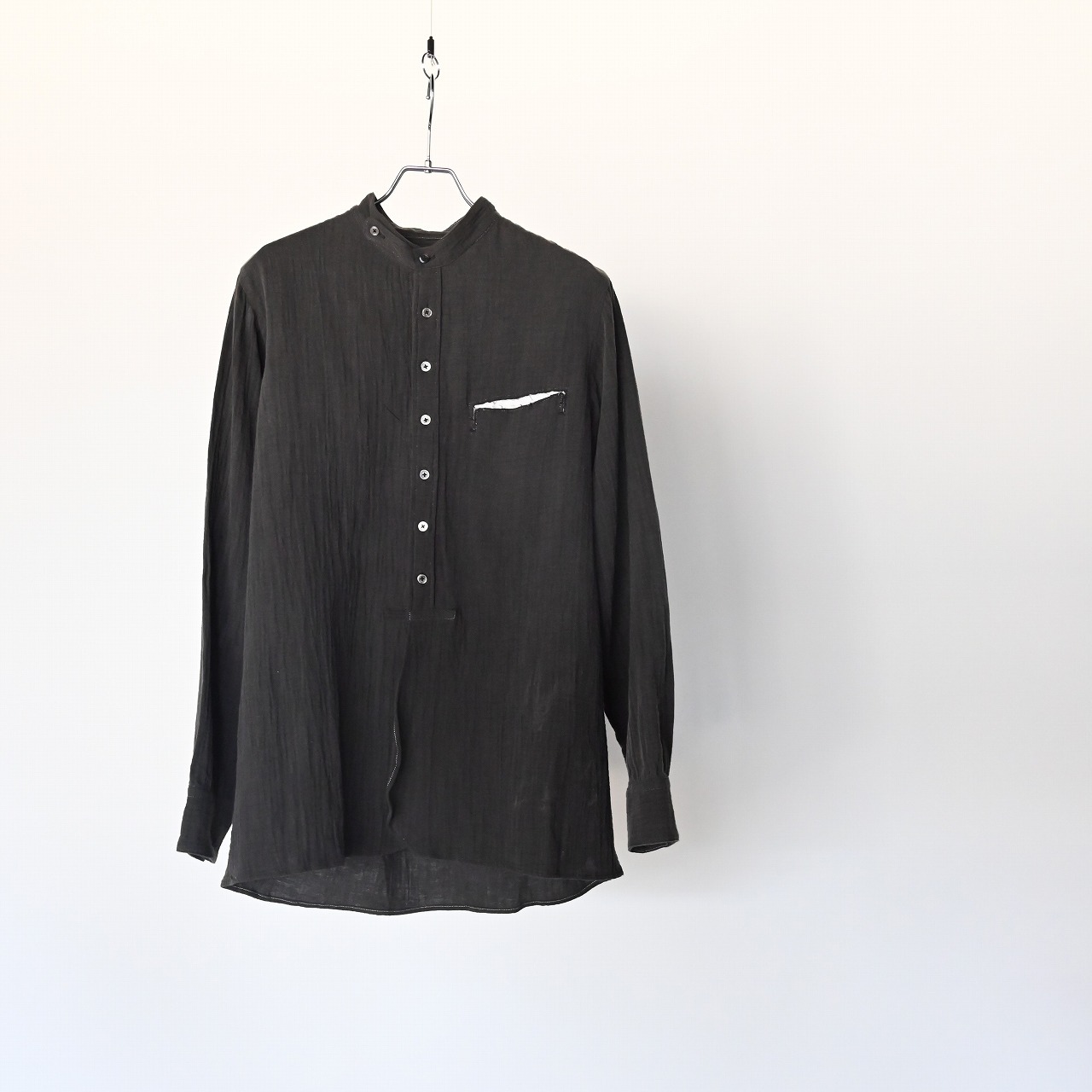 リネンファブリックを使用した一見プルオーバーに見えるバンドカラーシャツ、デザインも良いですが、着心地も抜群です。
