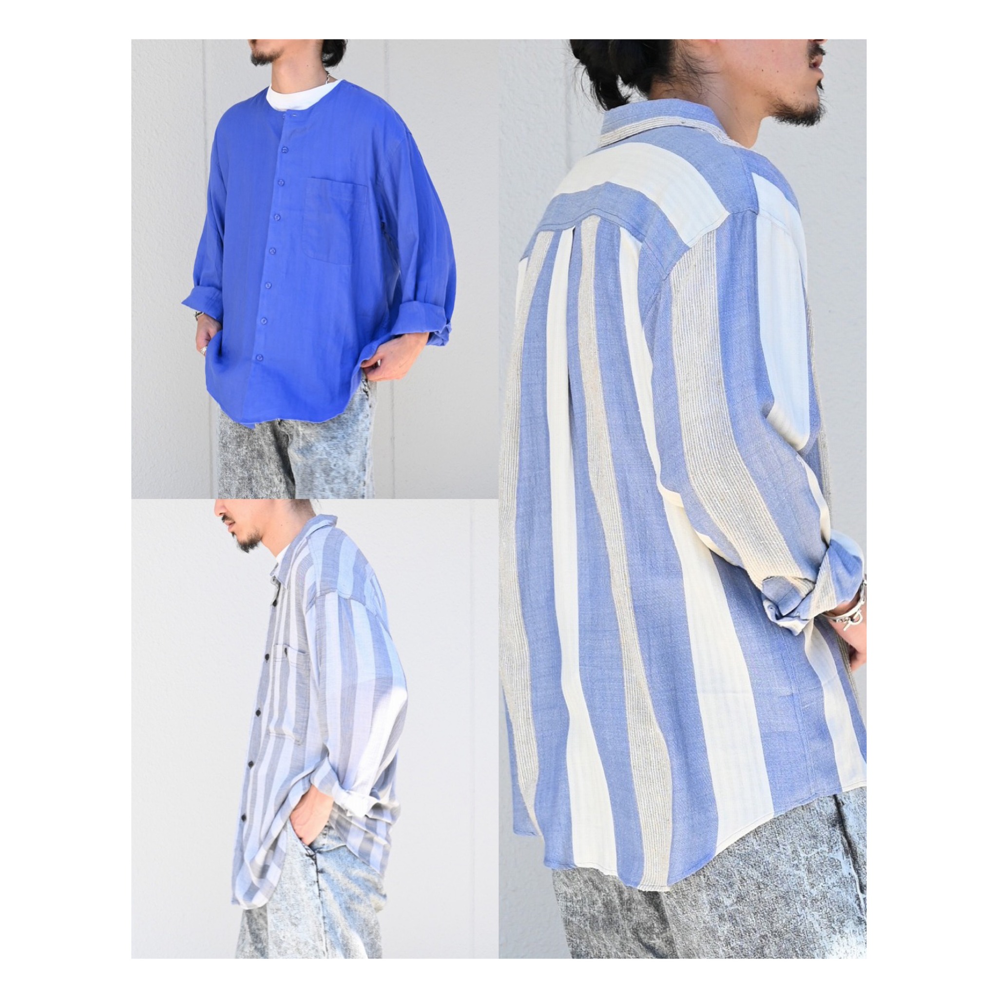 GOOUCHのデッドストックシャツは、すべて新品未使用のヴィンテージ品。独自の素材選びと時代を超えて魅力を放つデザインは、現代のワードローブにもすんなりと馴染みます。涼しげな素材と品のある佇まいは、大人の春夏スタイルにぴったり。