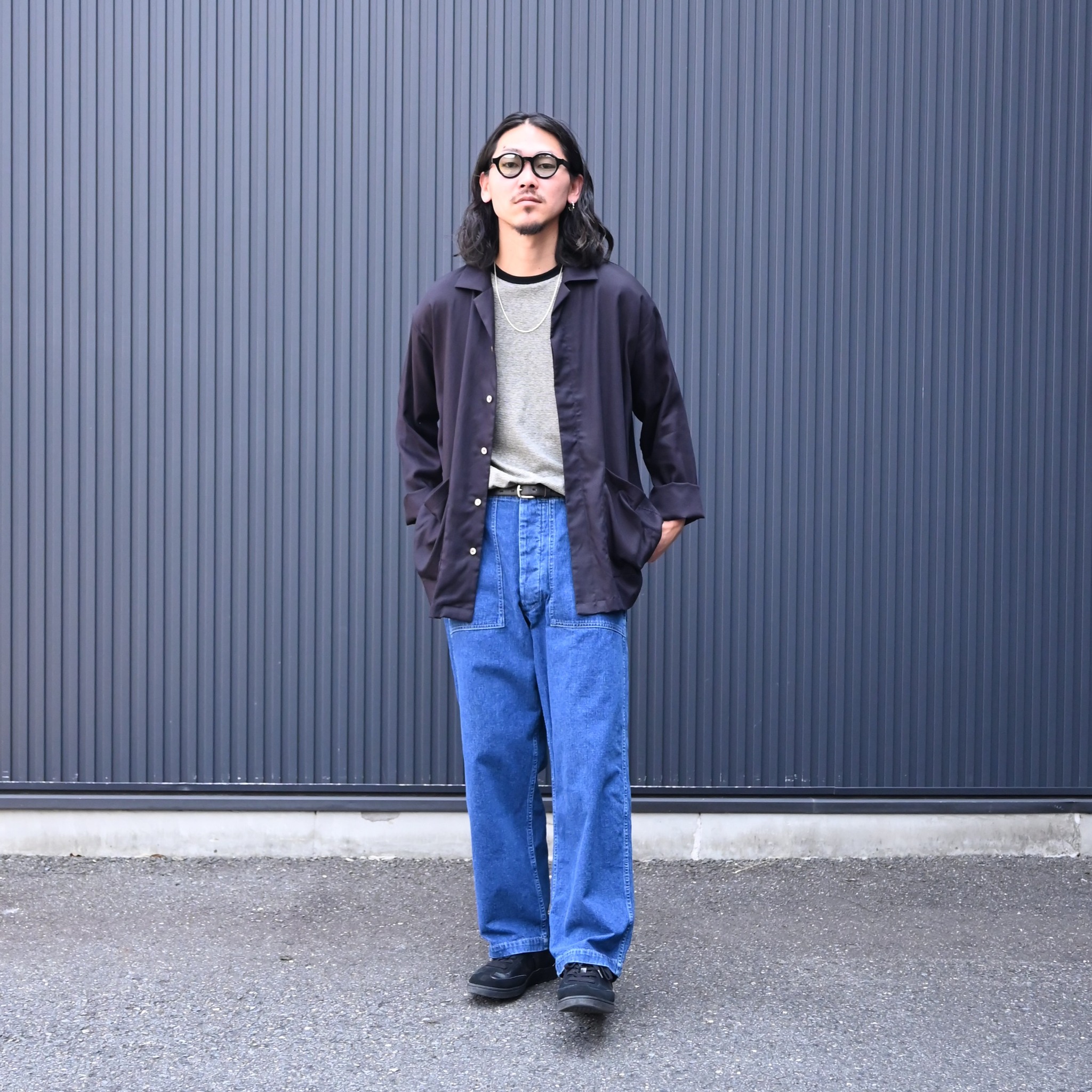 For the bottoms, I paired it with USED SLUB YARN DENIM BAKER PANTS, which have just the right amount of fading, a perfect cropped length, and that unique baker pants base that really stands out.