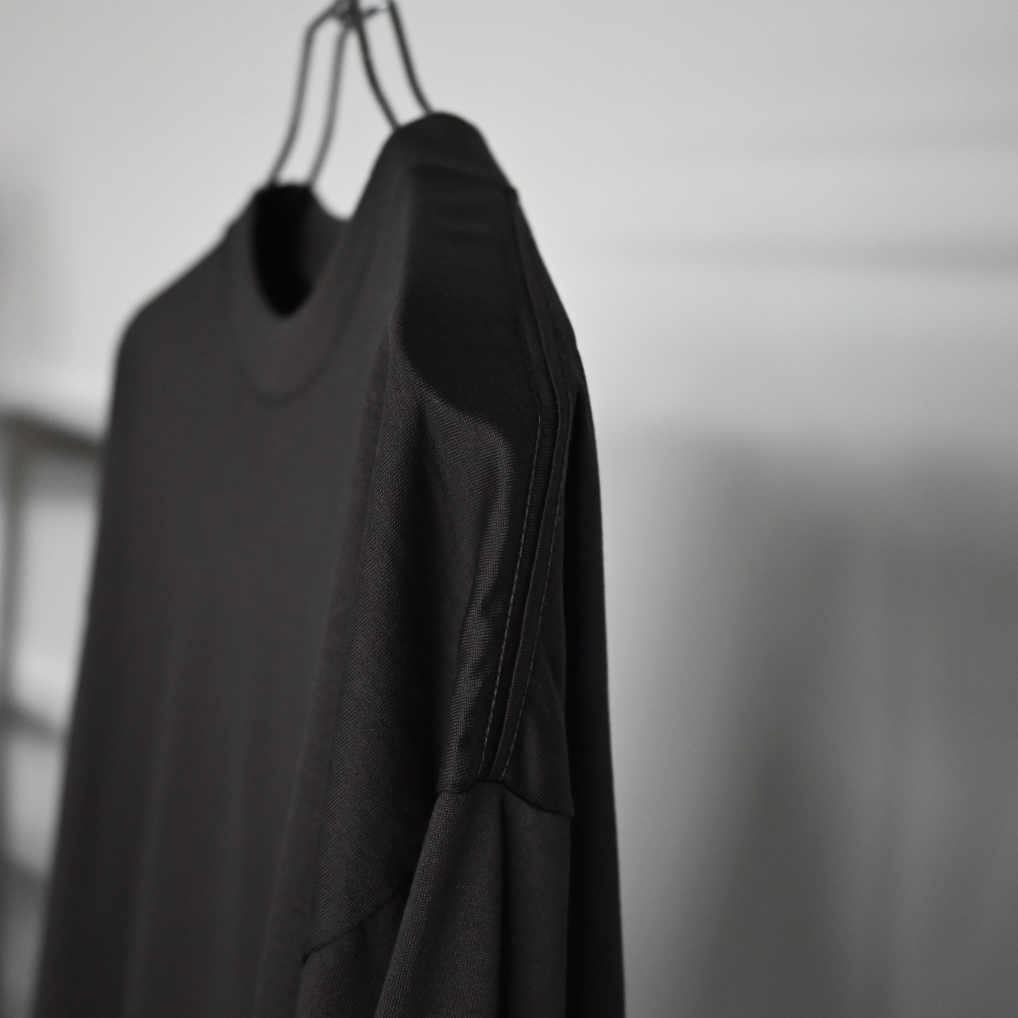 ・和歌⼭の⽼舗丸編みメーカーと協業し製作した、60/2の⾼品質な⽷を⽤いたハイゲージ(32G)天竺素材