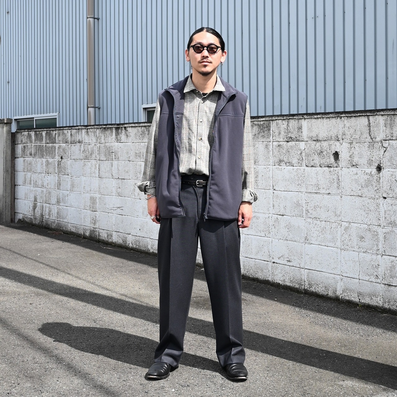 This time, I styled it with a fleece vest from THEDAY as the main piece, paired with a shirt and seamless trousers from Yamauchi as inner layers.