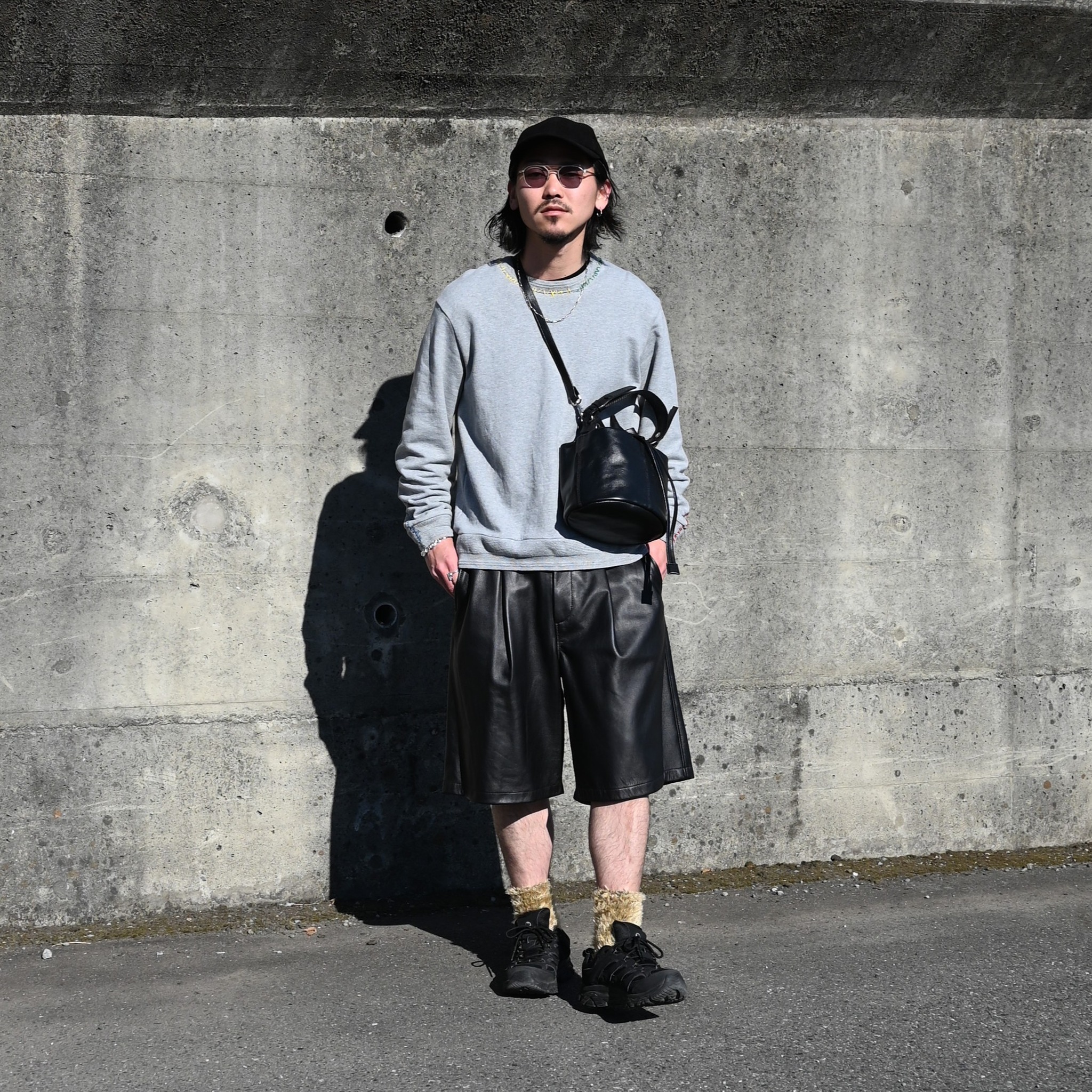 ・このレザースラックスショーツは、レザーを使っていながらも、短すぎず上品に着こなせるパンツ