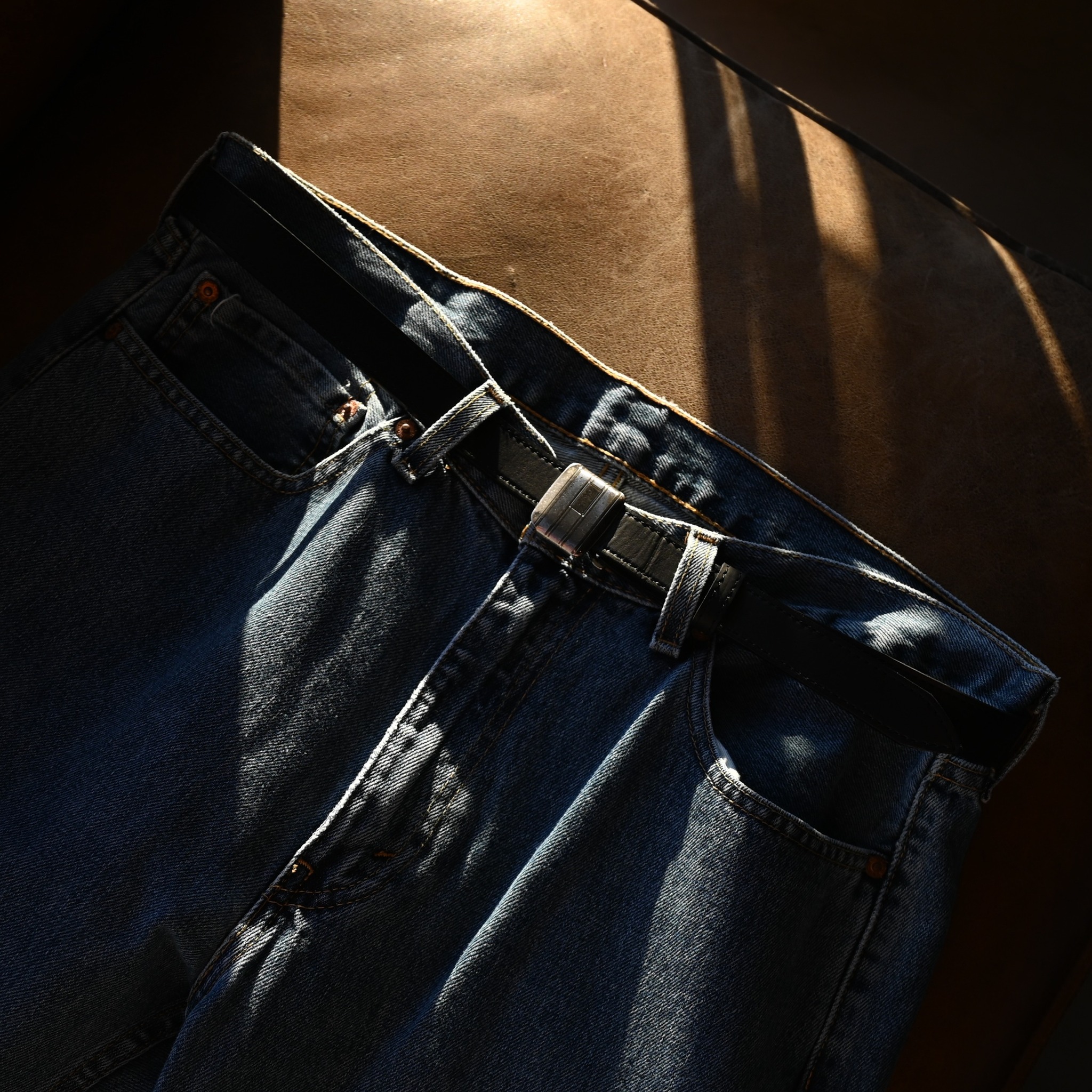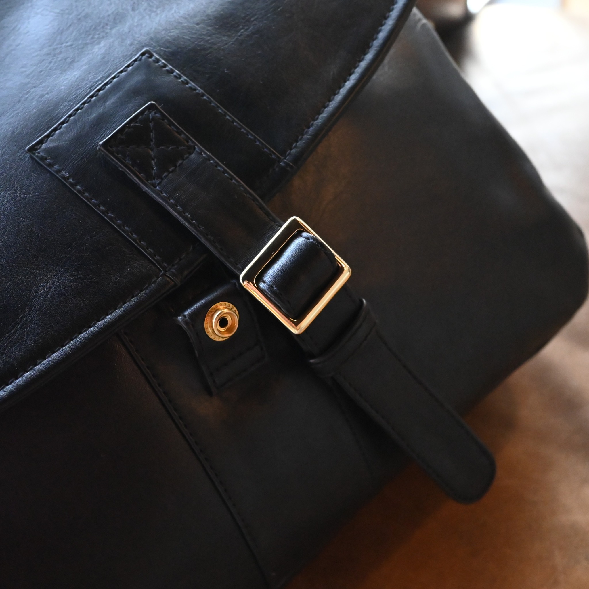 ・真鍮製のバックルがアクセントとなり、シンプルながらもスタイリッシュな印象を与える