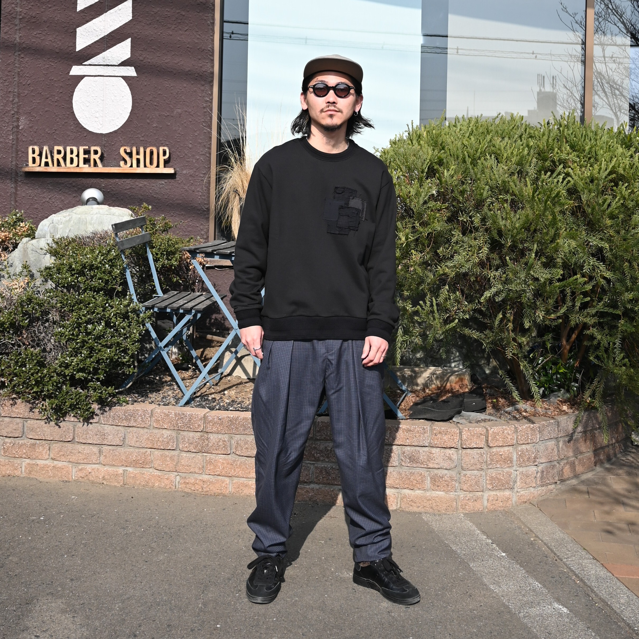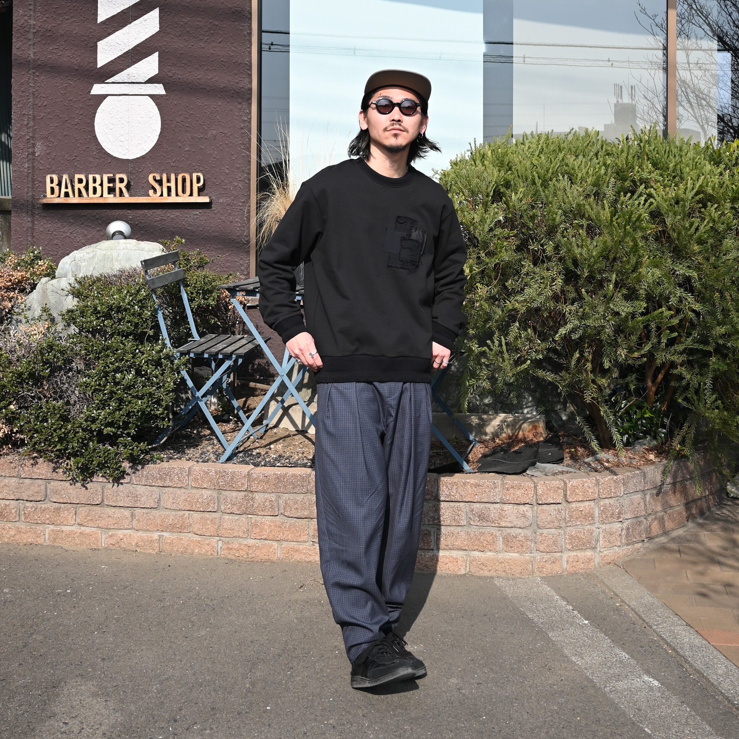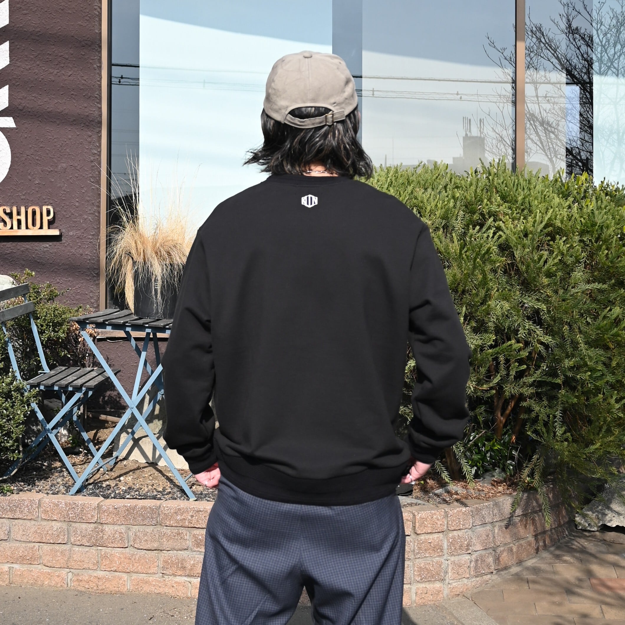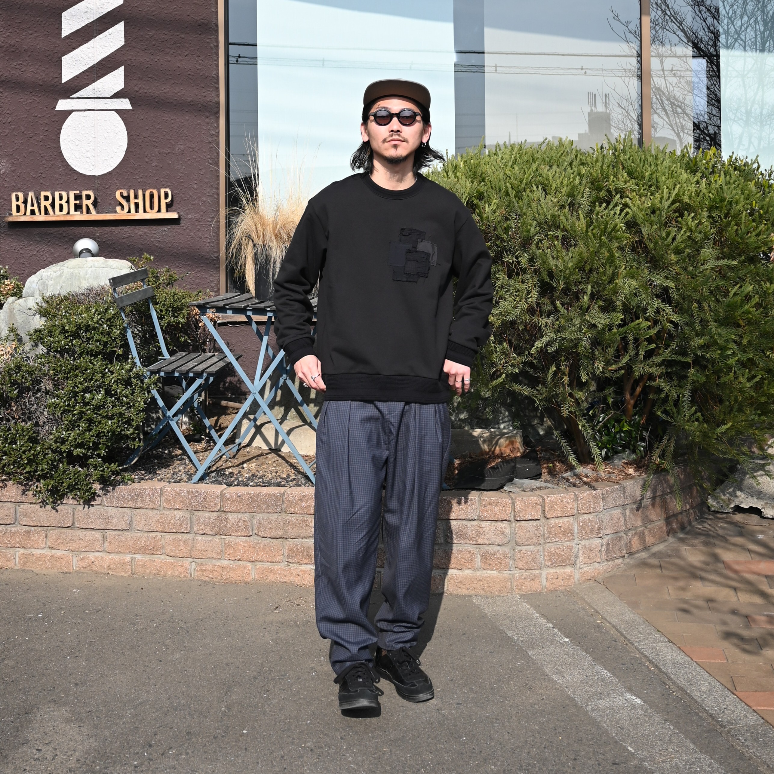 ・『UPCYCLED BORO TYPE2』を使用し、5つの四角形生地を左胸に施した襤褸スウェット