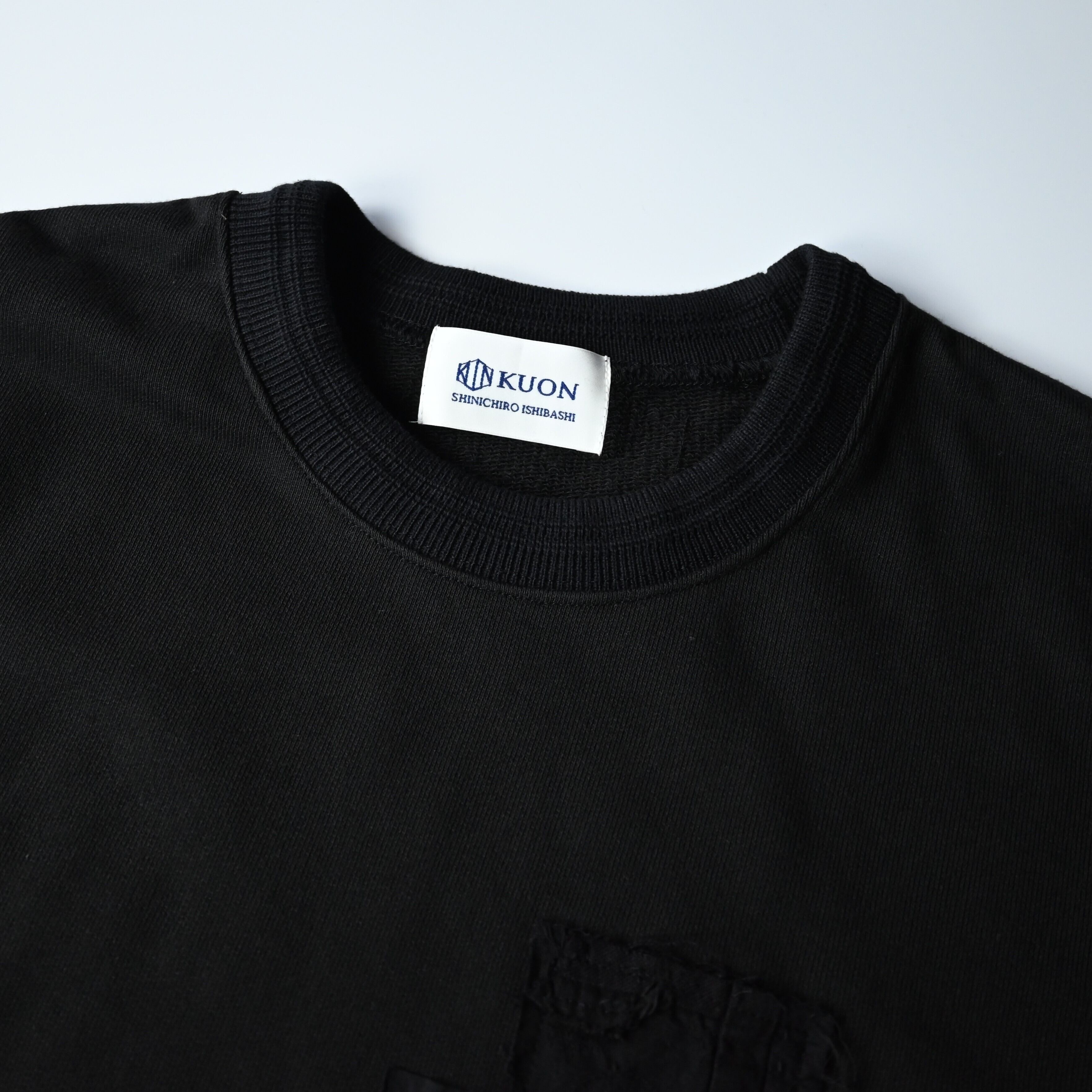 左胸に5つの襤褸生地を施した「襤褸スウェット」