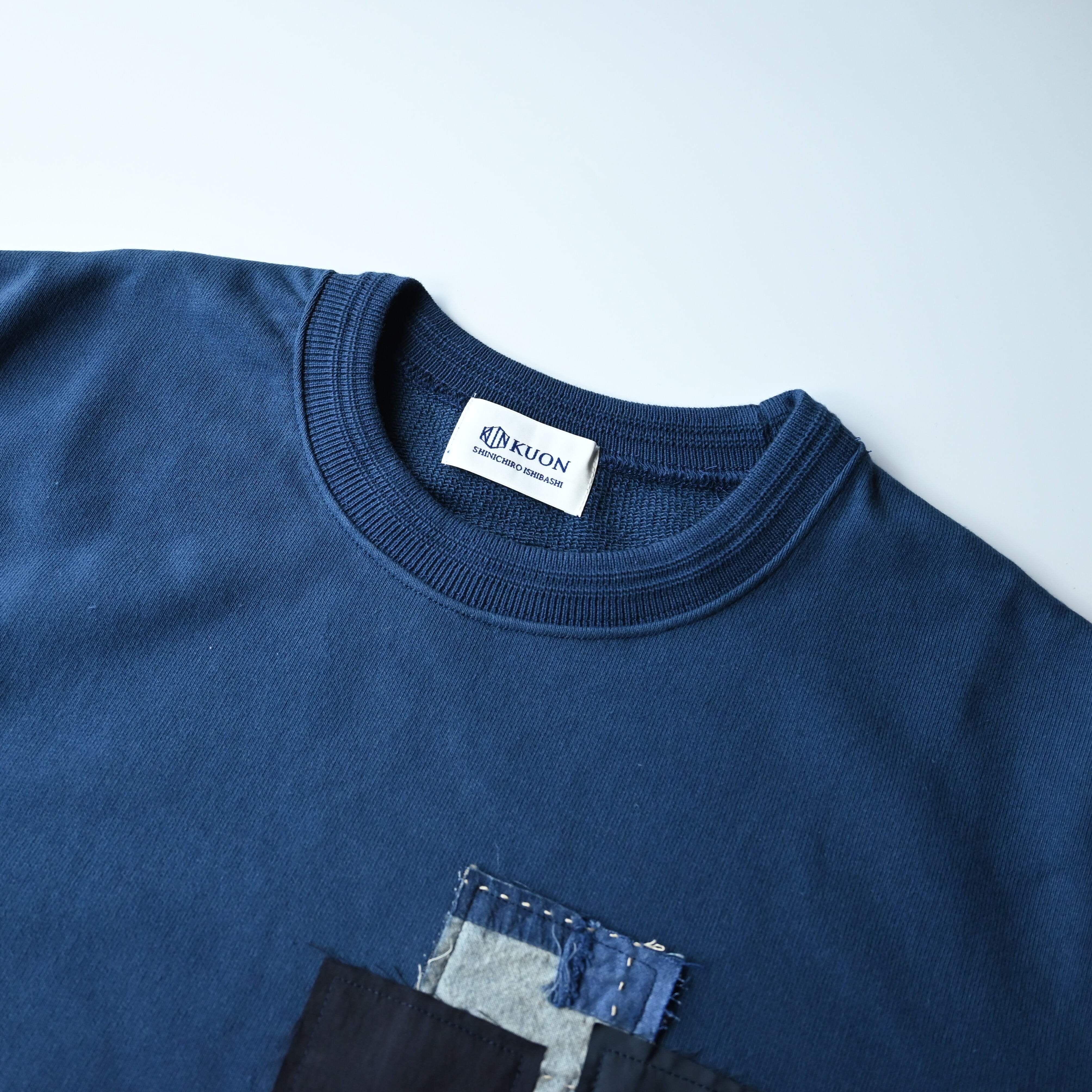 ・『UPCYCLED BORO TYPE2』を使用し、5つの四角形生地を左胸に施した襤褸スウェット