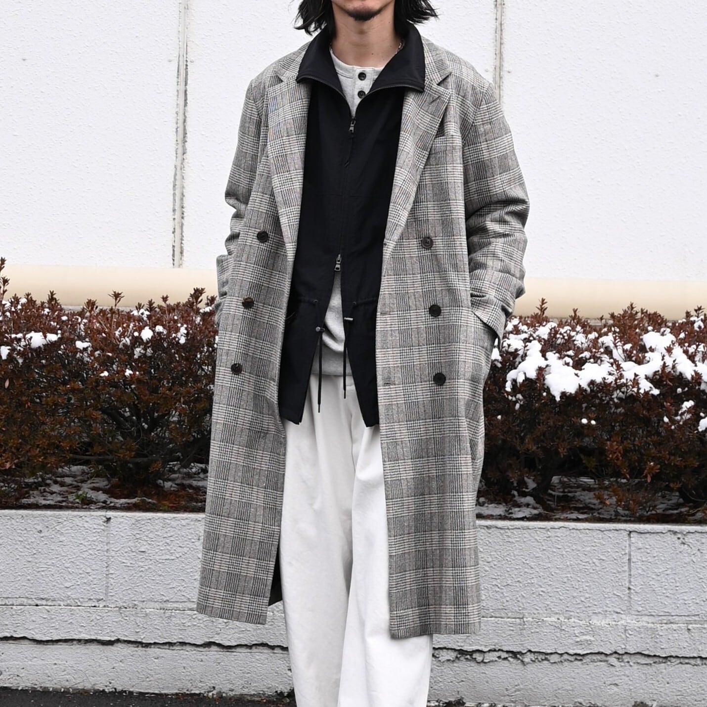 ・ネップシルクウールを使用したダブルのロングコート