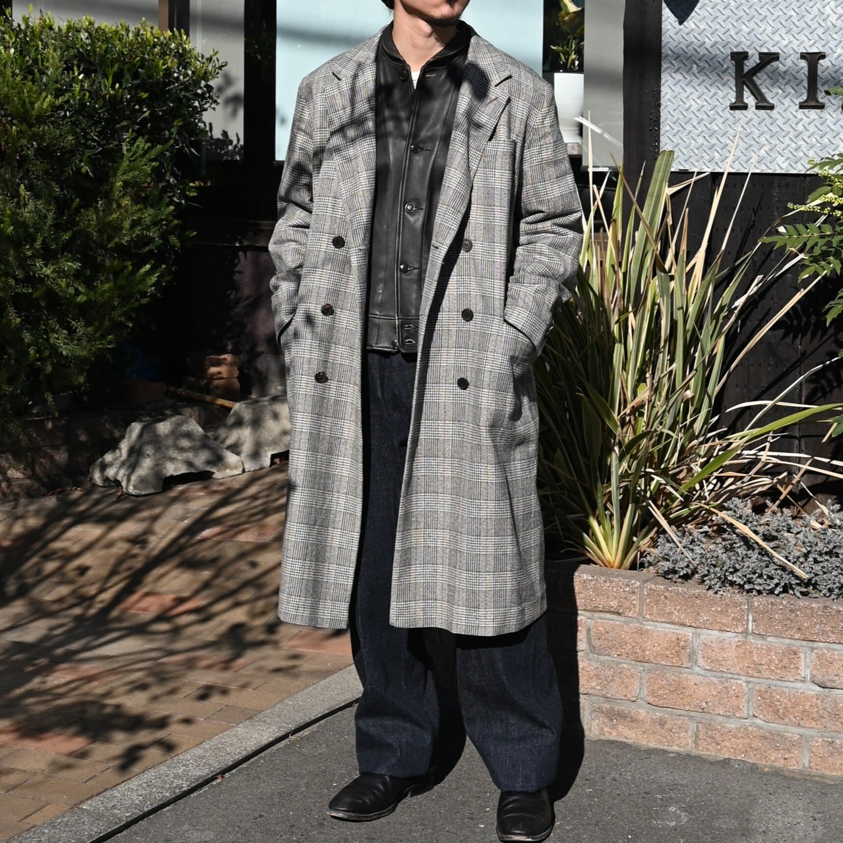 クラシックな生地感と対照的なボリュームのあるロングコート