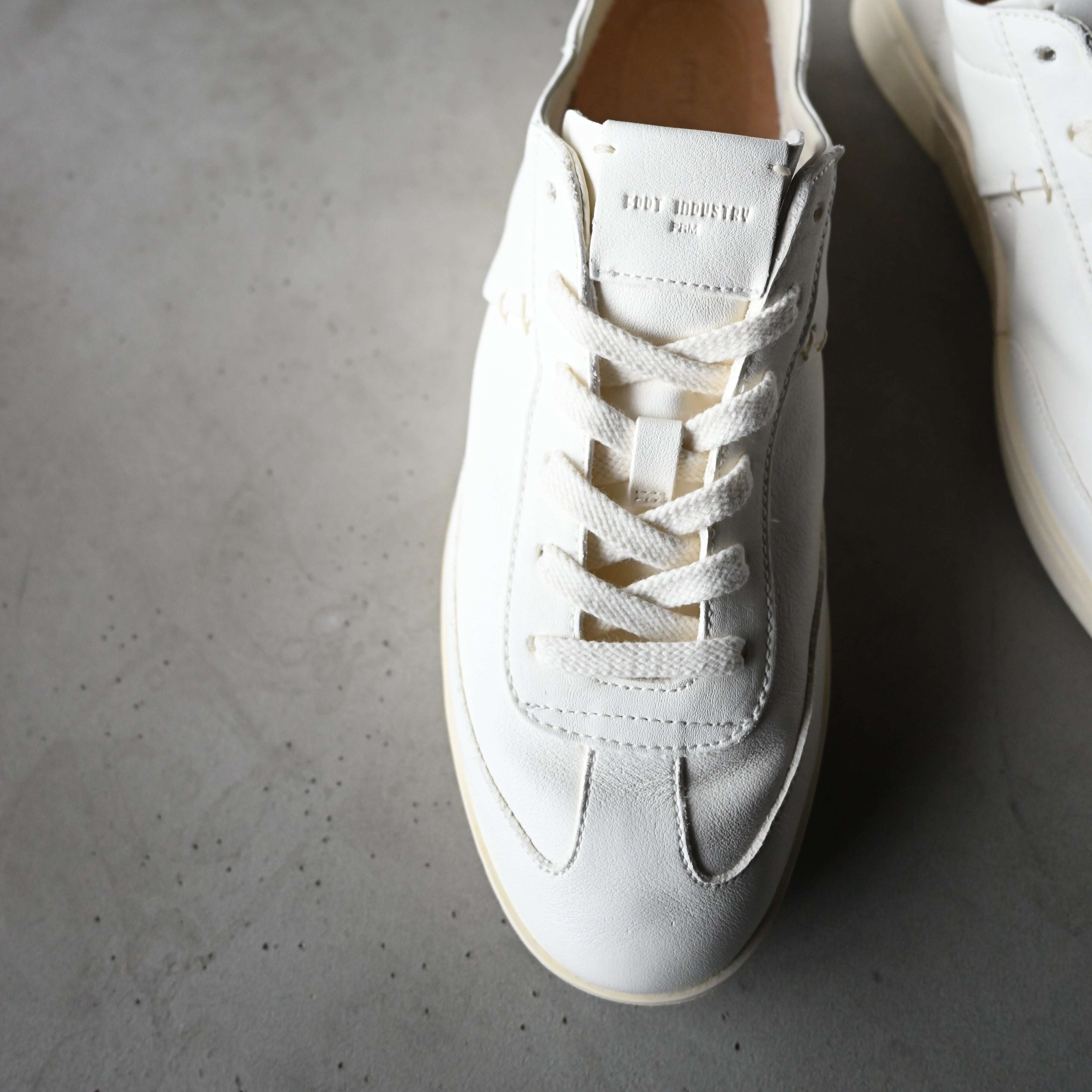 A reinterpretation of the classic German trainer, crafted from a single piece of leather by FOOT INDUSTRY, blending heritage with a modern twist