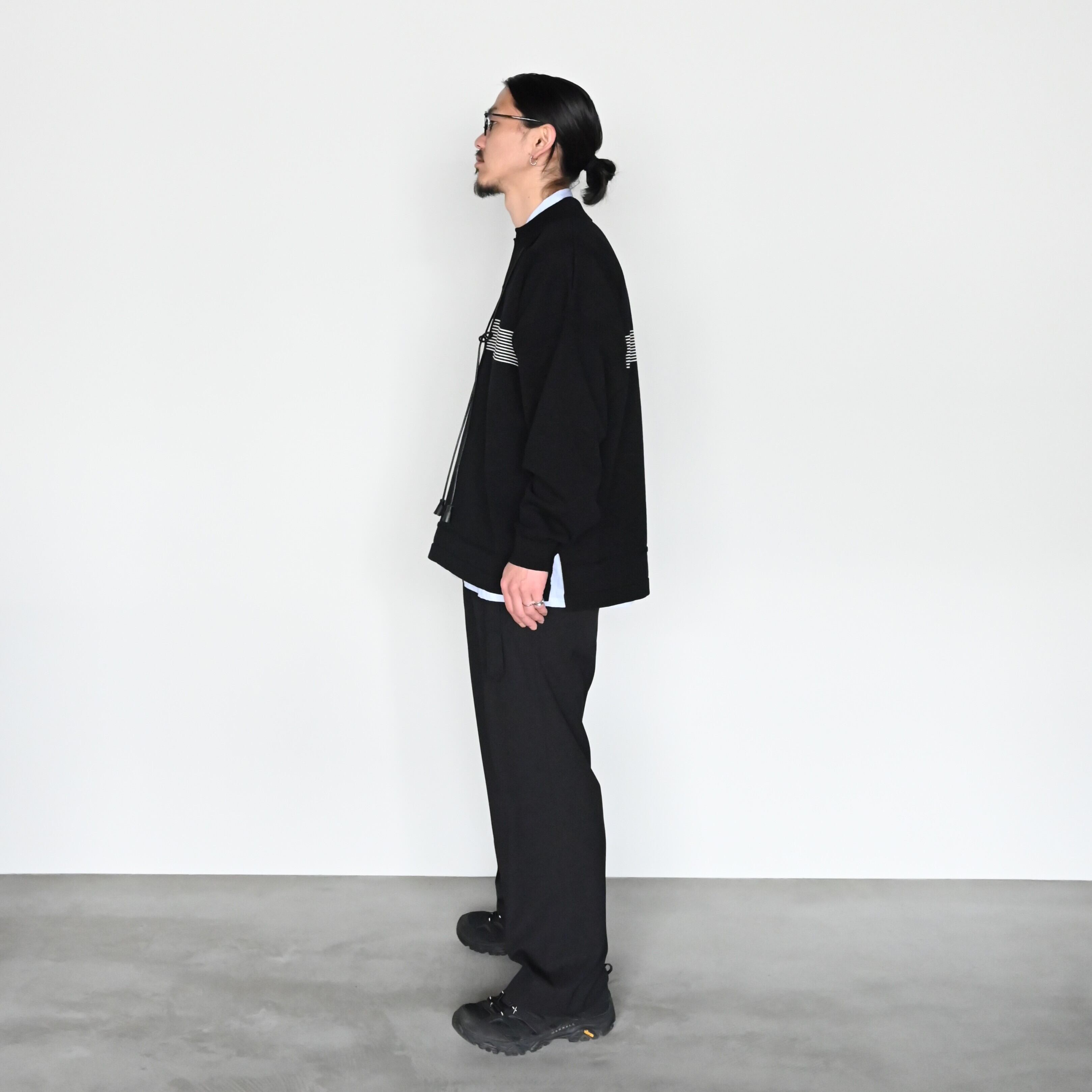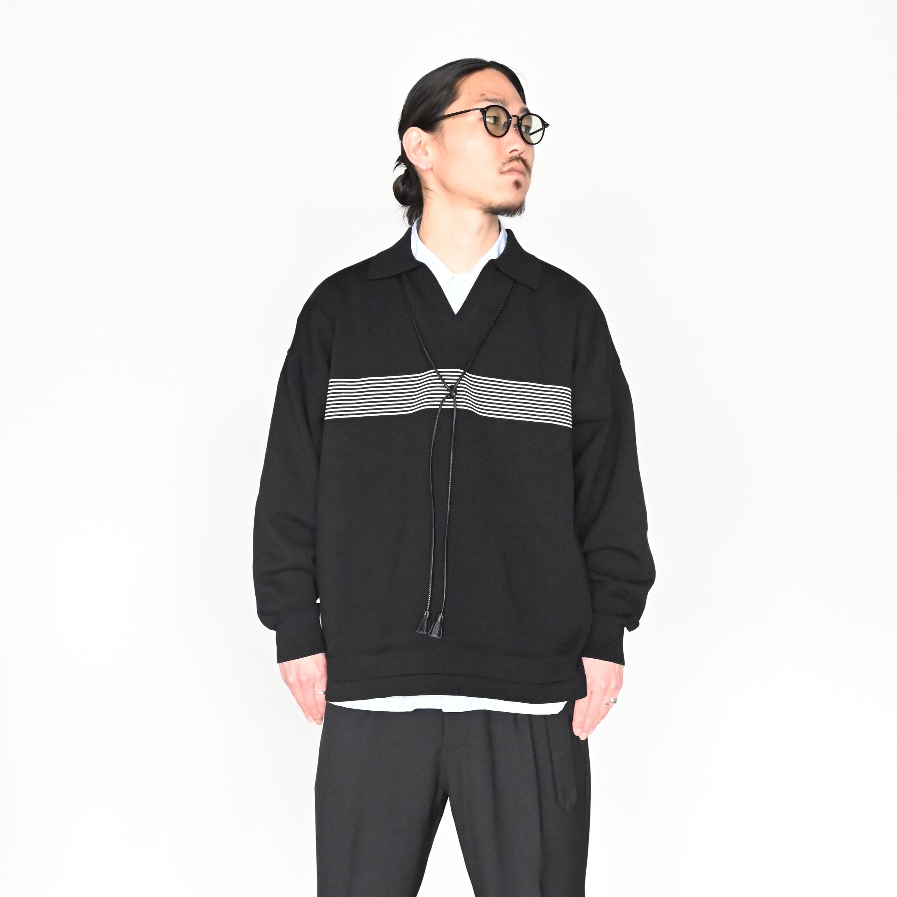 インナーにYASHIKI(ヤシキ)のSazanami Skipper KnitとINTÉRIM (インテリム)の200/2 SUPIMA GRAPH CHECK 60s OPEN COLLAR SHIRTを合わせてKUON(クオン) のSingle Pleated Belted Trousersを着用。上品だけど遊びのあるスタイルです。