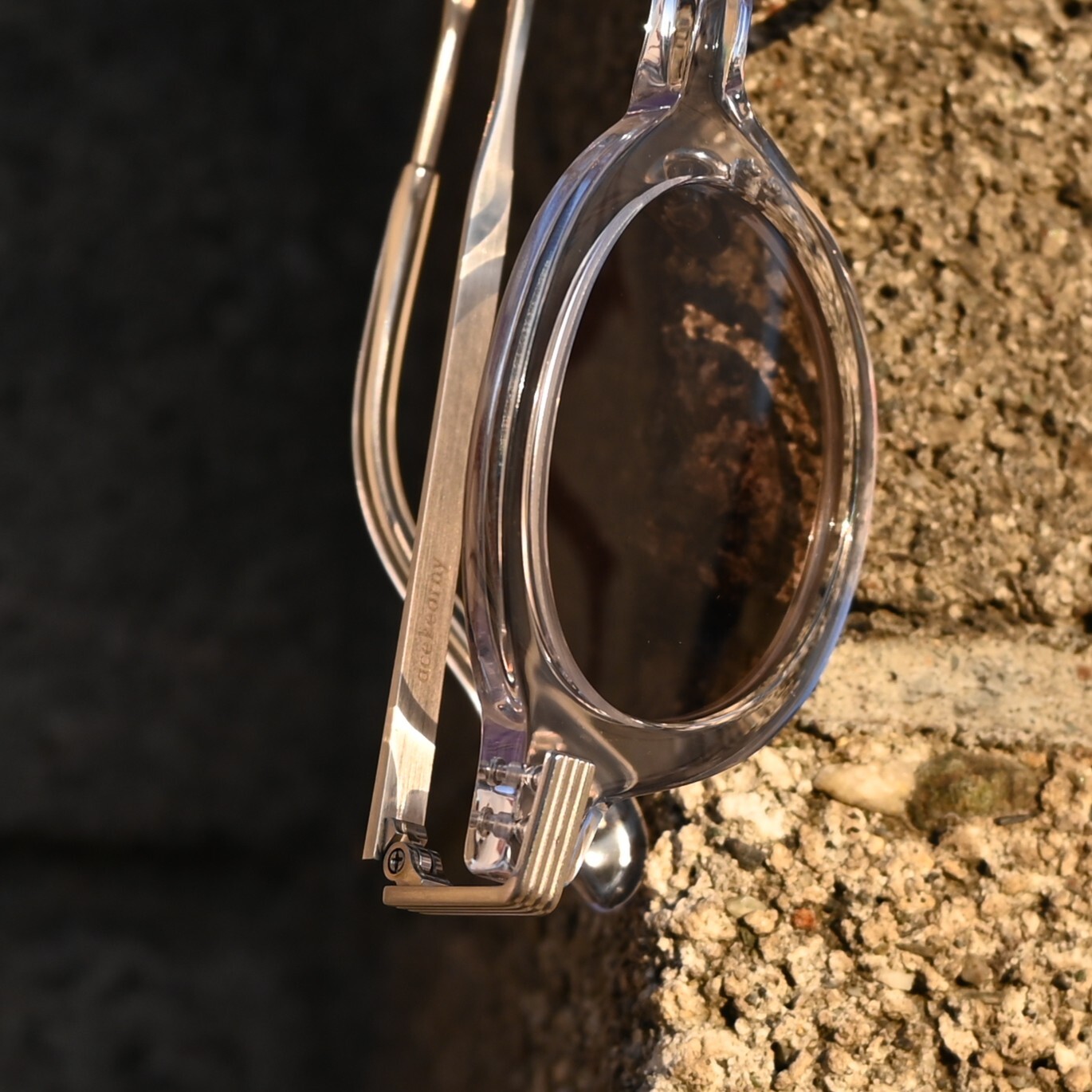 色に深みがあり、使い込むほど肌に馴染み熟成する生地として20世紀半ばまで主流だった、セルロイド製の眼鏡。量産に不向きな上、加工に手間が掛かる可燃性であることから、時の移ろいとともに技術の継承が途絶えつつある。この事実は、ファッションに関わる以上、危惧すべき事象と感じ、2013年に眼鏡ブランド<kearny>をスタート。