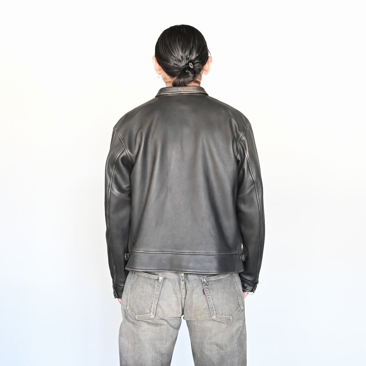 (90年代アメリカ製ゲイリー・ニューマン エグザイル)ヴィンテージTEEをメインにデニムはINTÉRIM(インテリム)のSHABBY VINTAGE "1947XX" SHUTTLE DENIM TROUSERSを合わせました。OLDJOE(オールドジョー)の PATINA DEERSKIN COSSAK JACKETを合わせてアメカジライクなスタイルに。