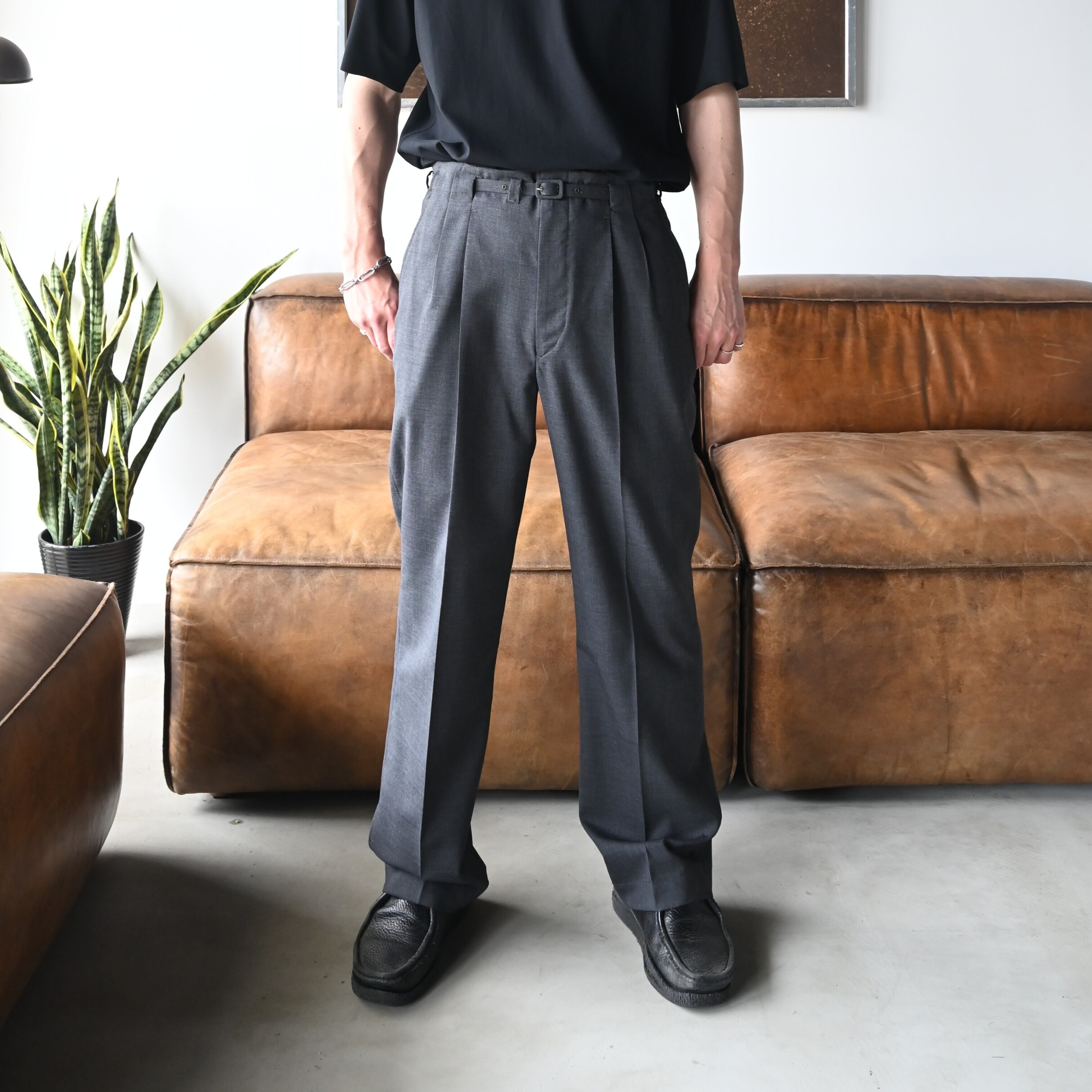 OLD JOE(オールドジョー)のORIGINAL PRINTED OPEN COLLAR SHIRTS (Square Dot) Short-sleeveをメイン着用。 HIDDEN LOOP BUDDY TROUSERと合わせました。ネイビー、グレーの配色のバランスがとてもよく、雰囲気抜群です。春夏感をプラスするために小物とサングラス、そしてSAILOR’S ROPEWORK BAGを合わせました。