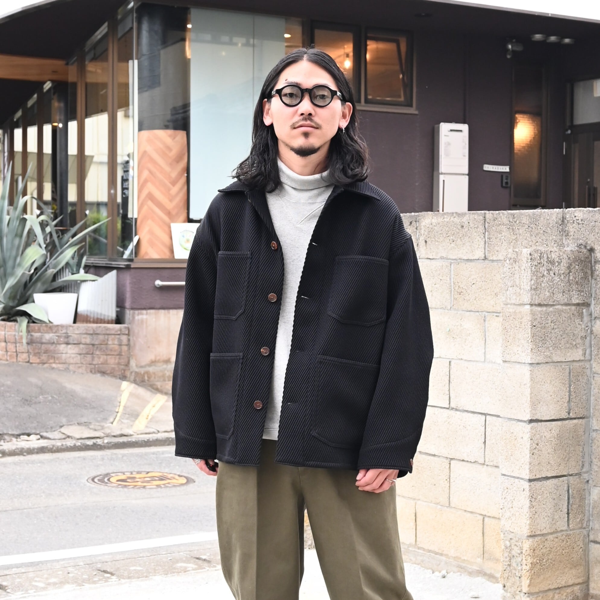 LVMH社からピックした⽴体的な畝が特徴のダイアゴナルウール⽣地のカバーオールジャケット