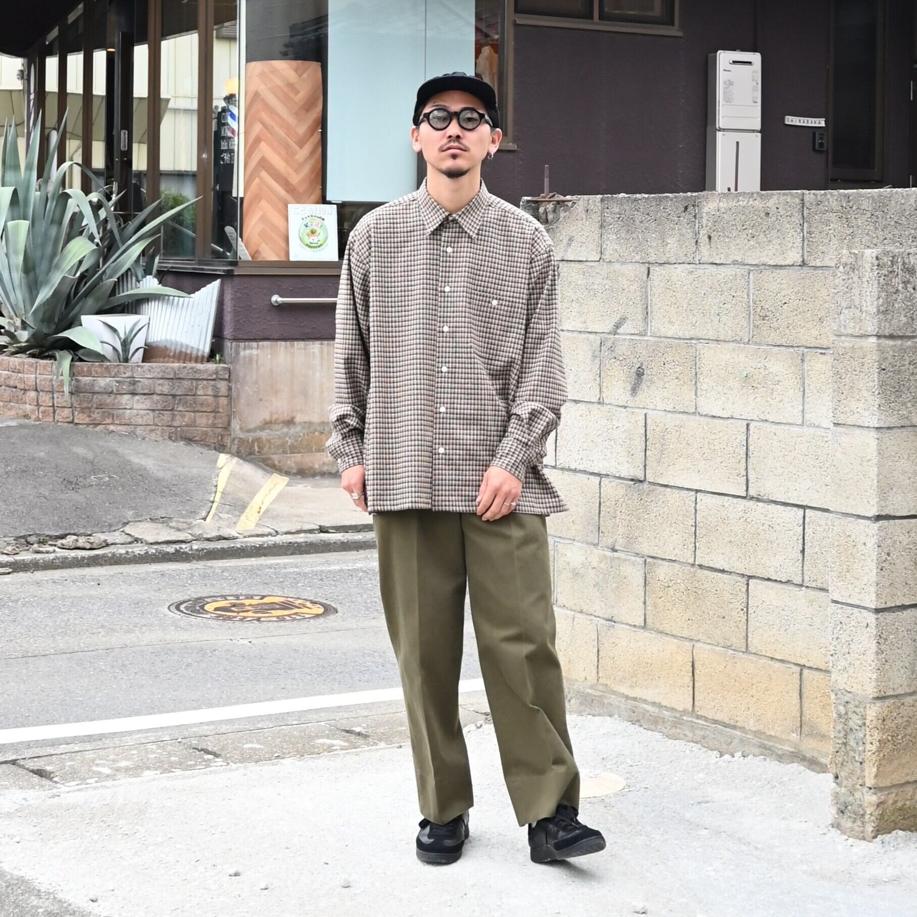 ・19世紀後半にアメリカで誕⽣し、国内の要⼈や作家などから⽀持を得たのちにフランスで⼈気を博した、知る⼈ぞ知る某メンズラグジュアリーブランドの定番品をアイデアソースに製作したスクエアシルエットのレギュラーカラーシャツ