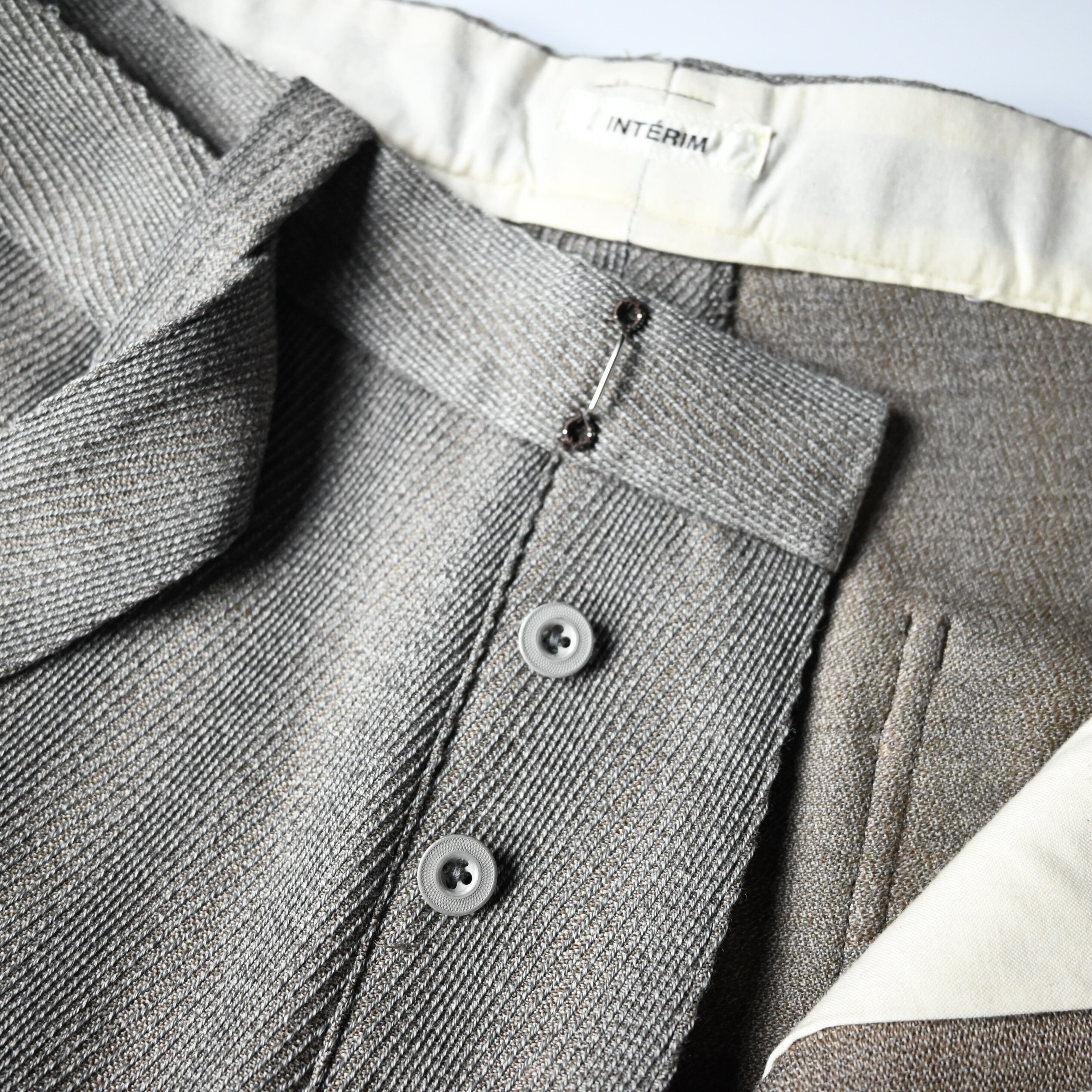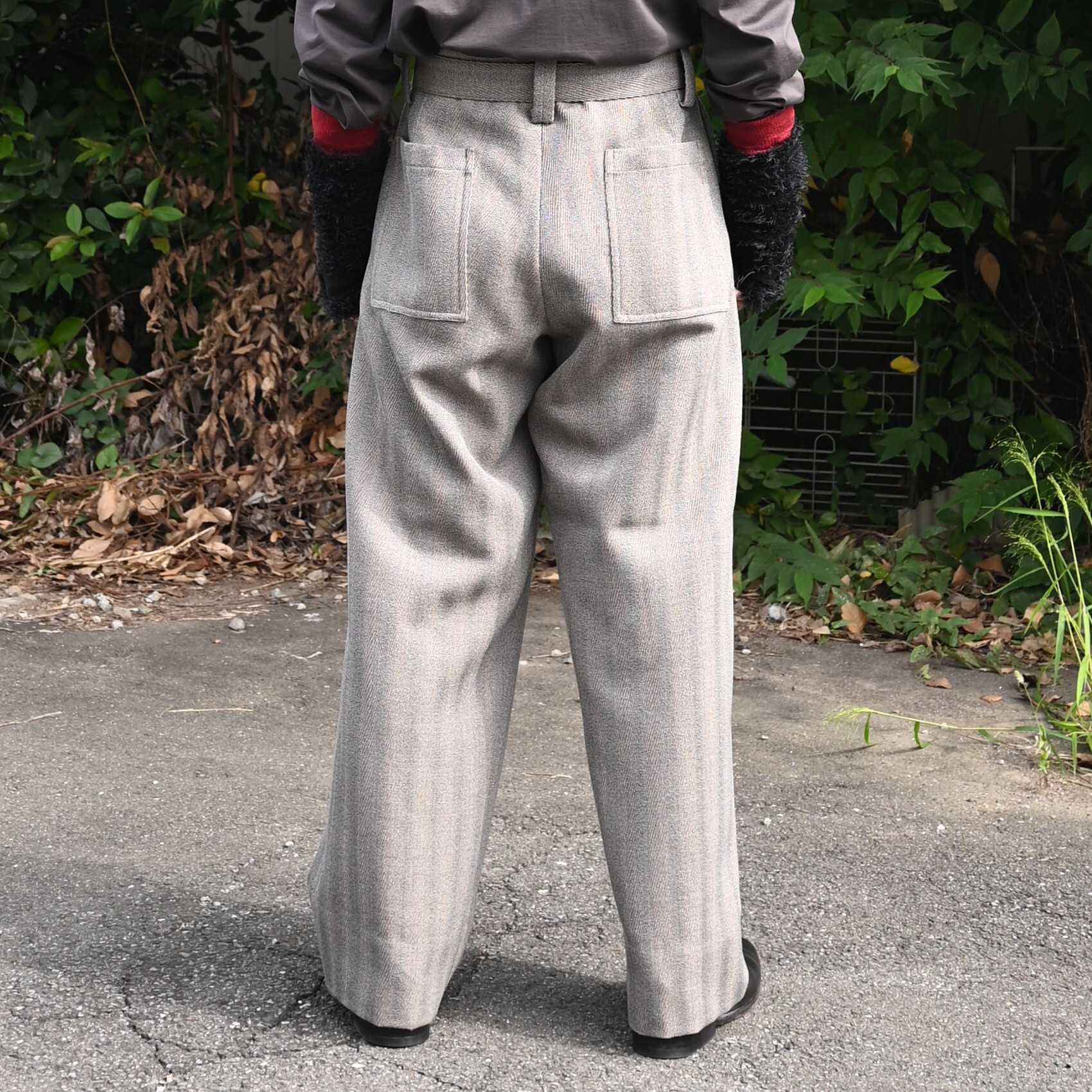 INTERIM / STRUCTURED DIAGONAL MELANGE WOOL DEADSTOCK BELTED MIL BAGGY TROUSER