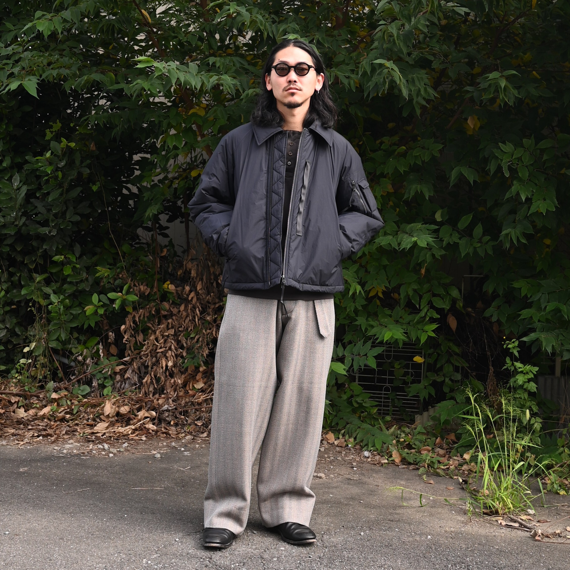 ・こちらの商品は「STRUCTURED DIAGONAL MELANGE WOOL DEADSTOCK PIPING DOUBLE JACKET」https://ganko.base.ec/items/111284684とセットアップで着用可能