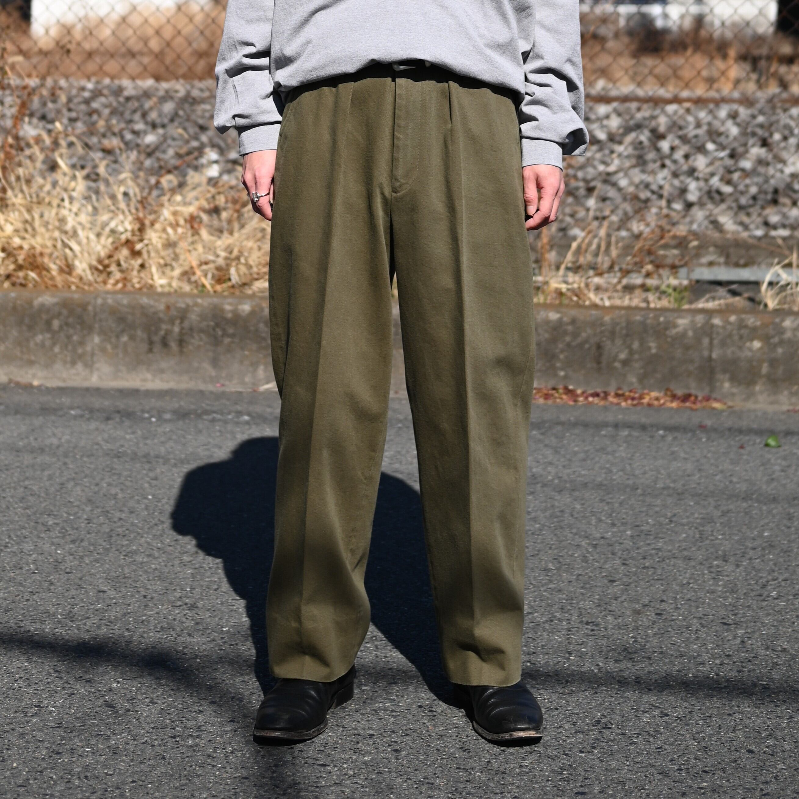 INTERIM / HEAVY PIMA TWILL 1-TUCK FRENCH ARMY WIDE TAPERED TROUSER