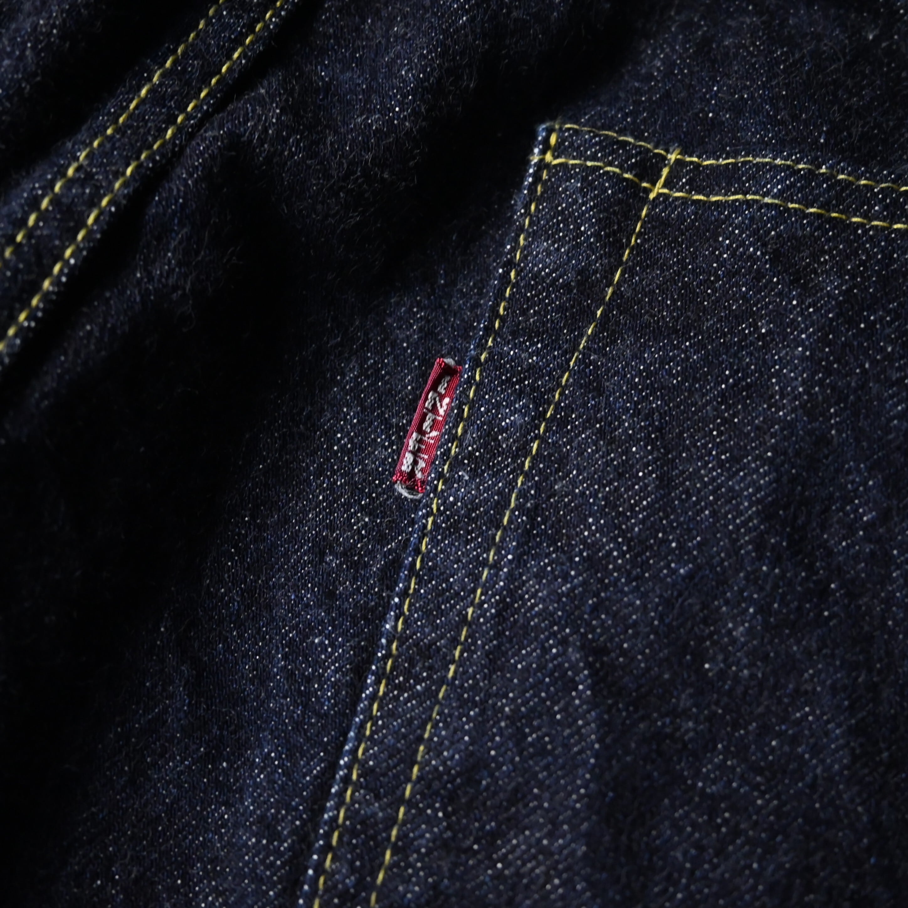 • Made from approximately 15oz heavy unsanforized denim, woven for about 40 years by a long-established Japanese mill.