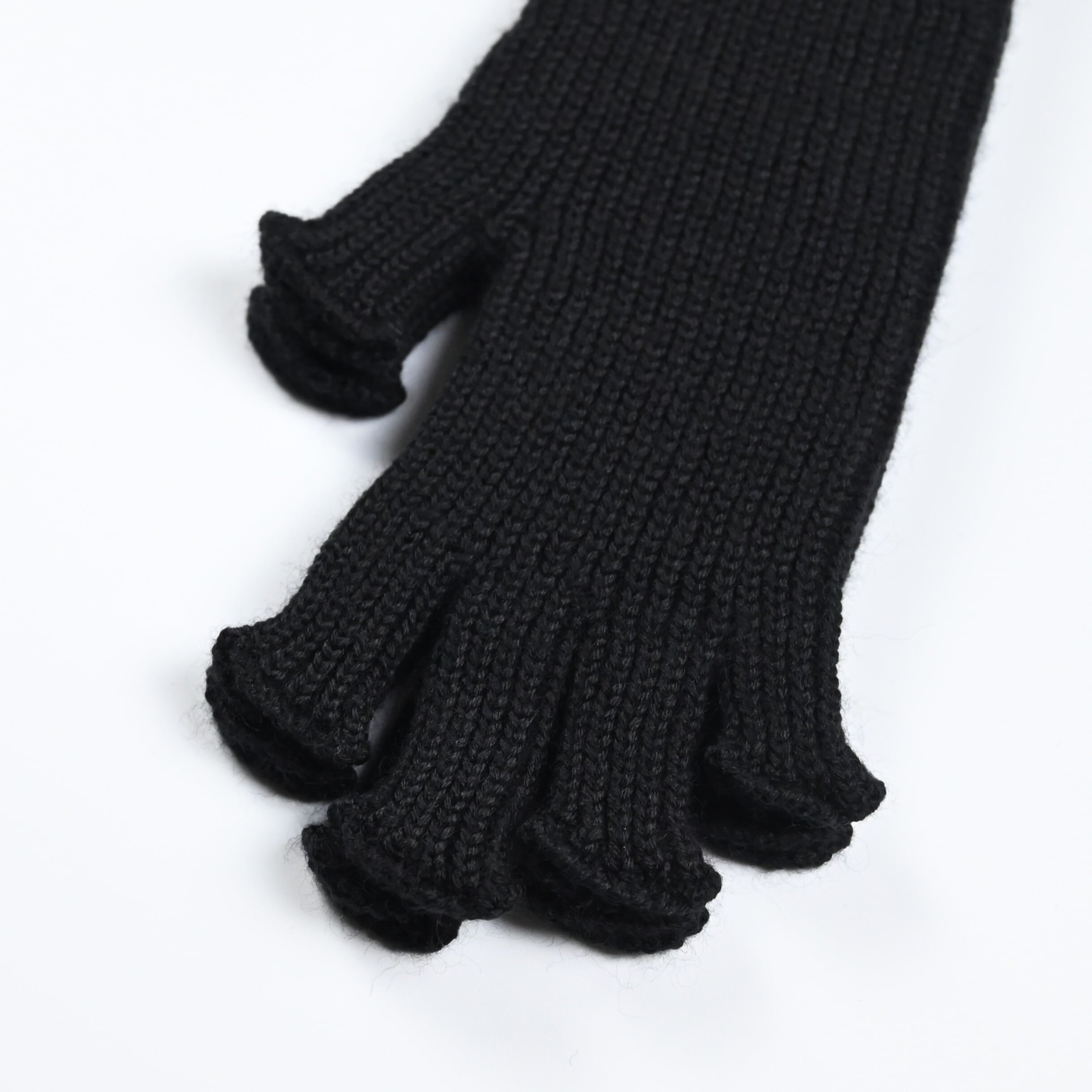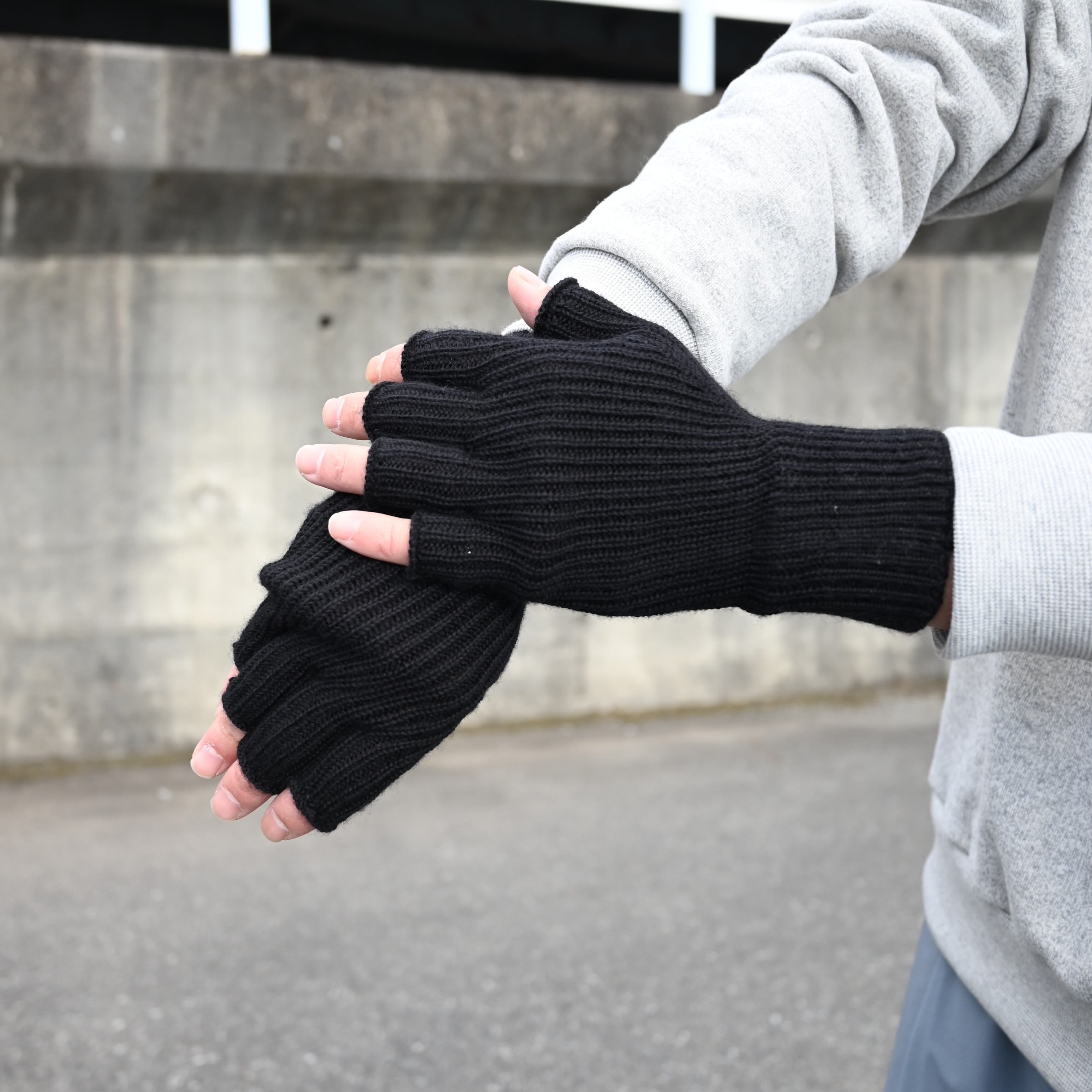 ・ほどよい伸縮性とボリューム感を持たせて編み⽴てた、フィンガーレス仕様のニットグローブ