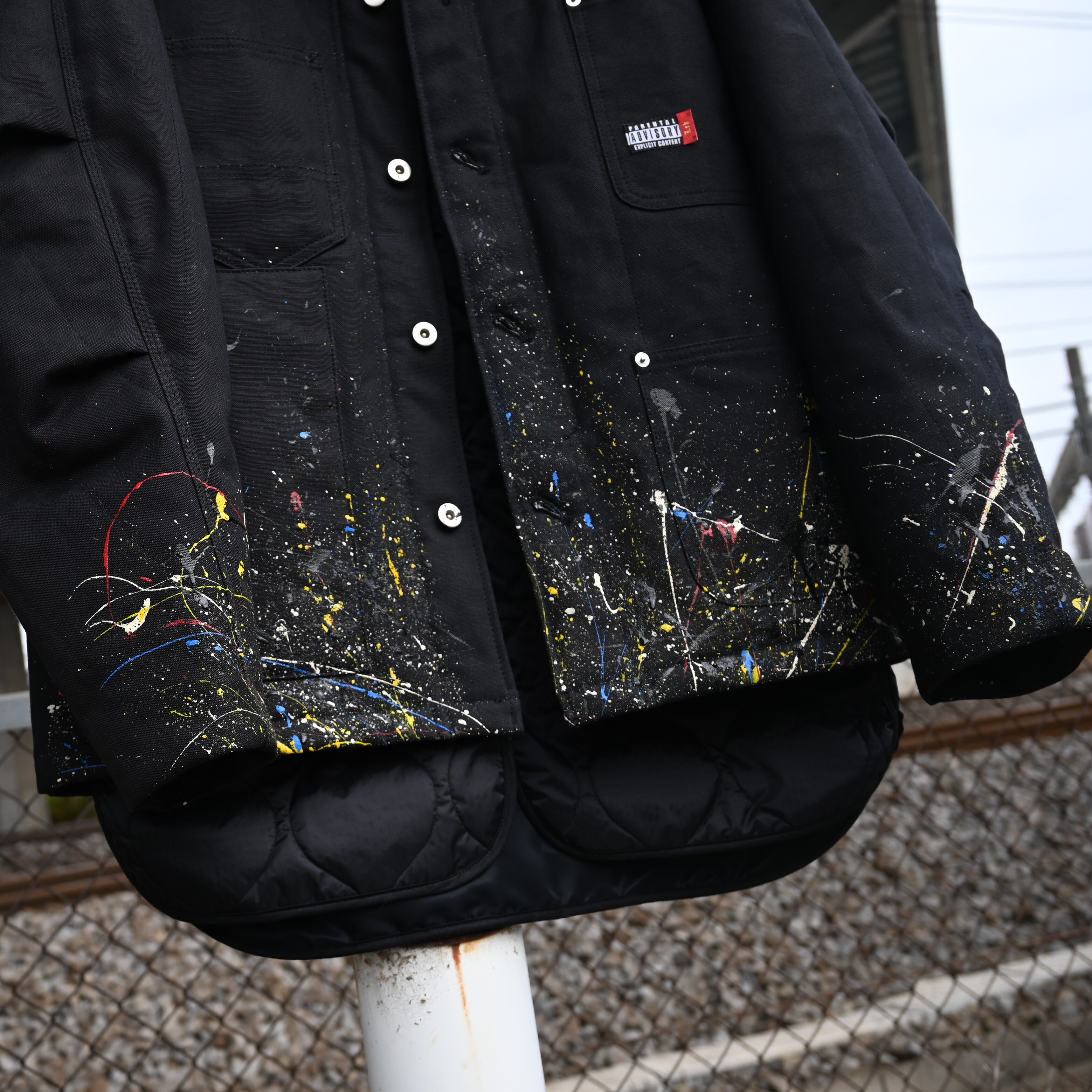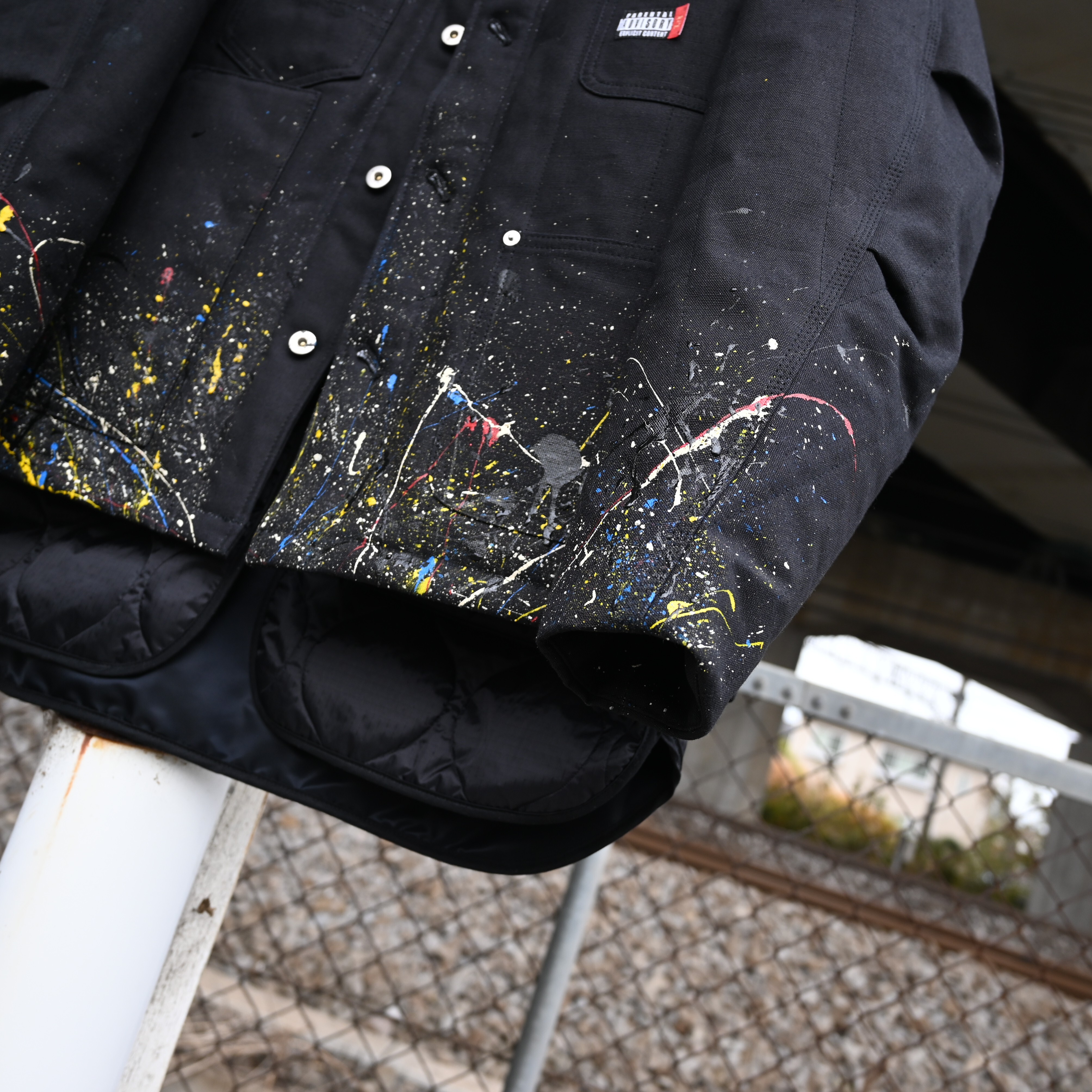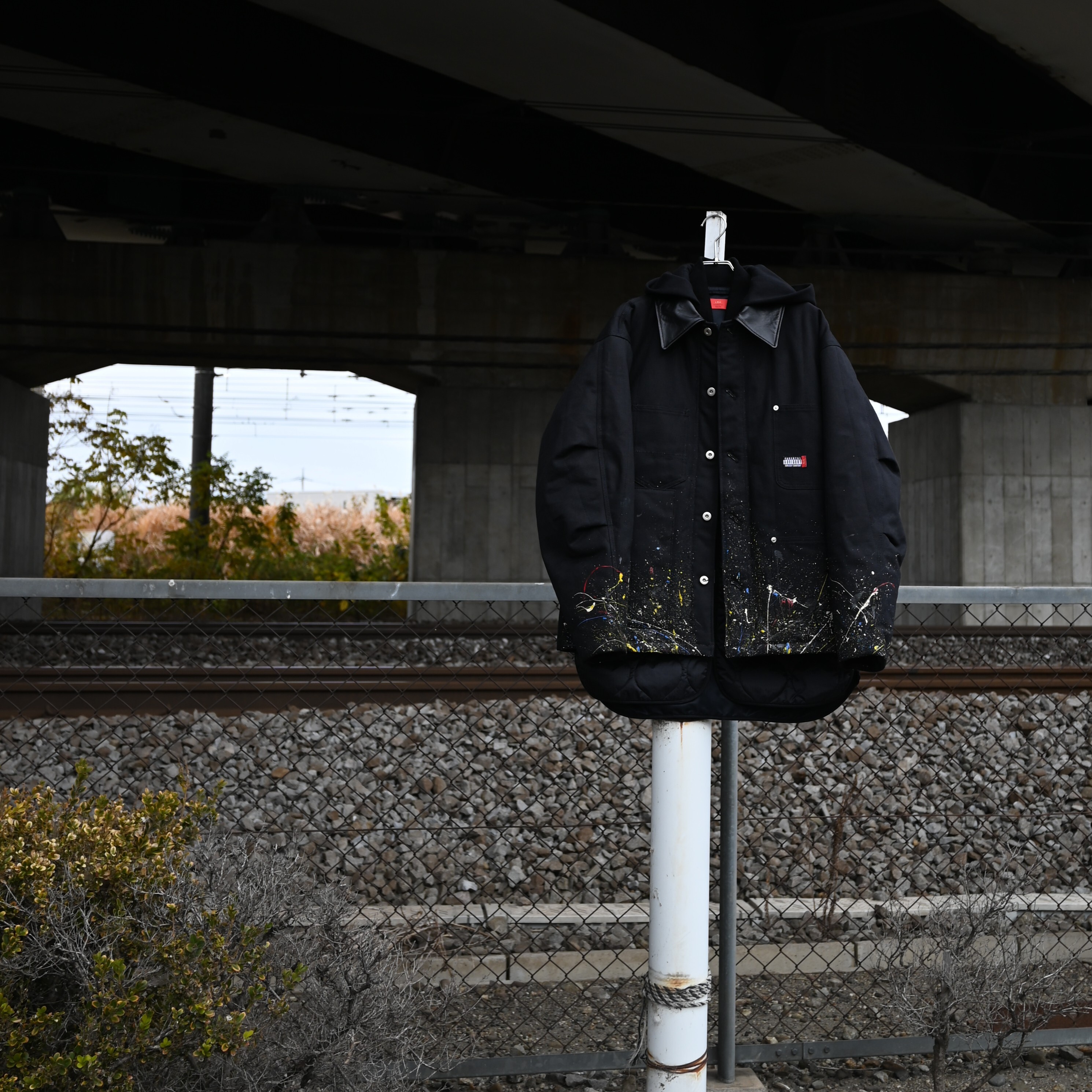 ペンキ加工により全てが1点物の「キルティングドッキングカバーオールブルゾン」