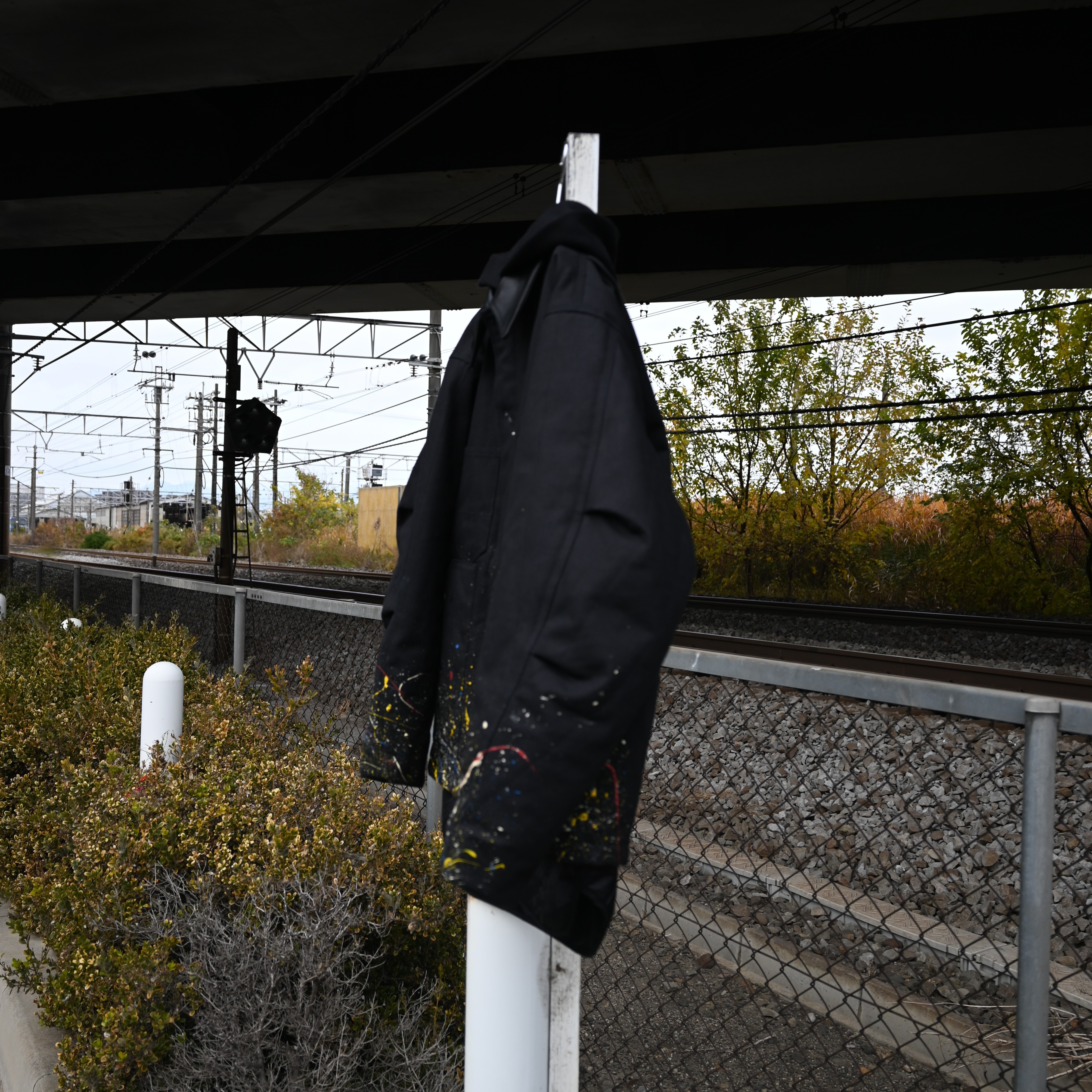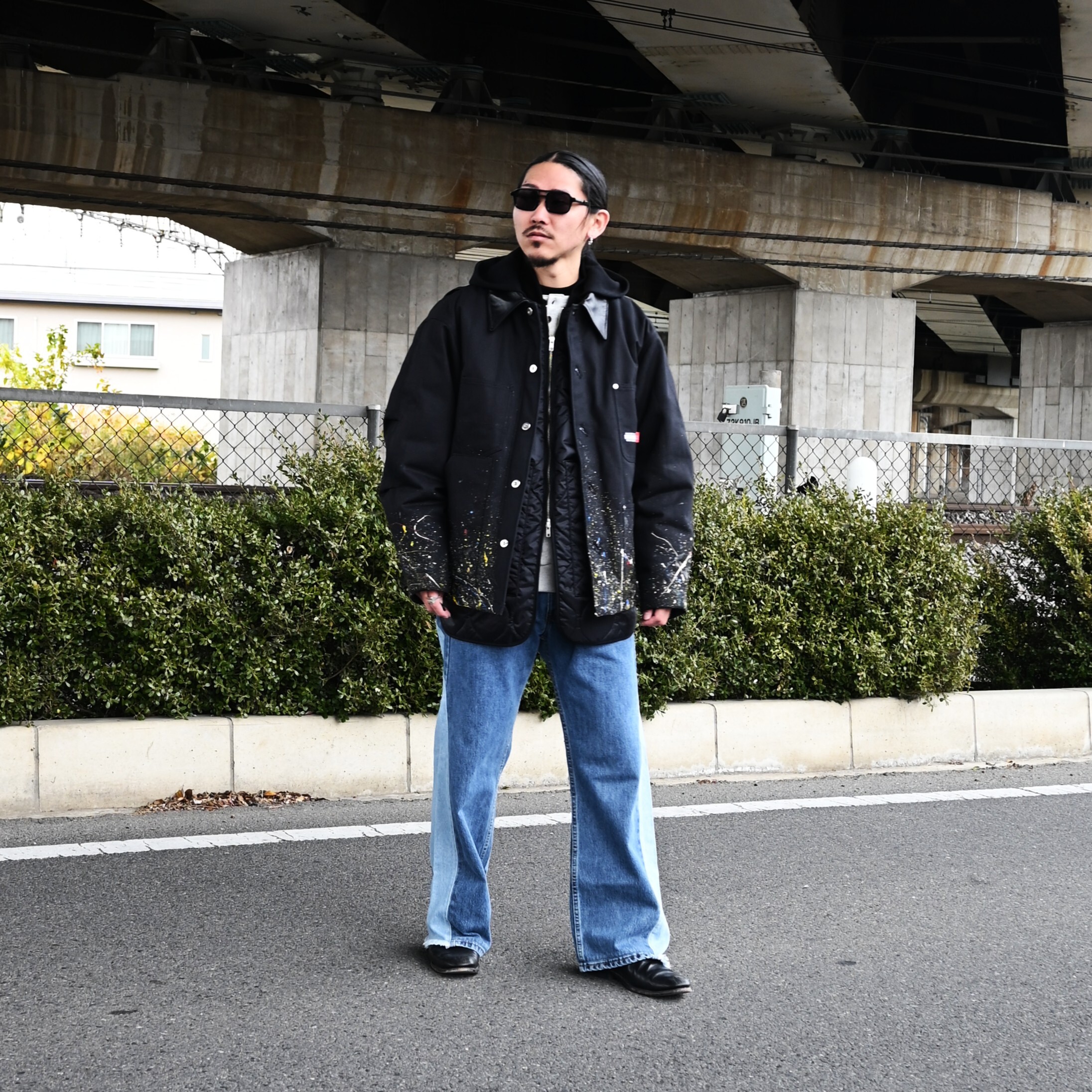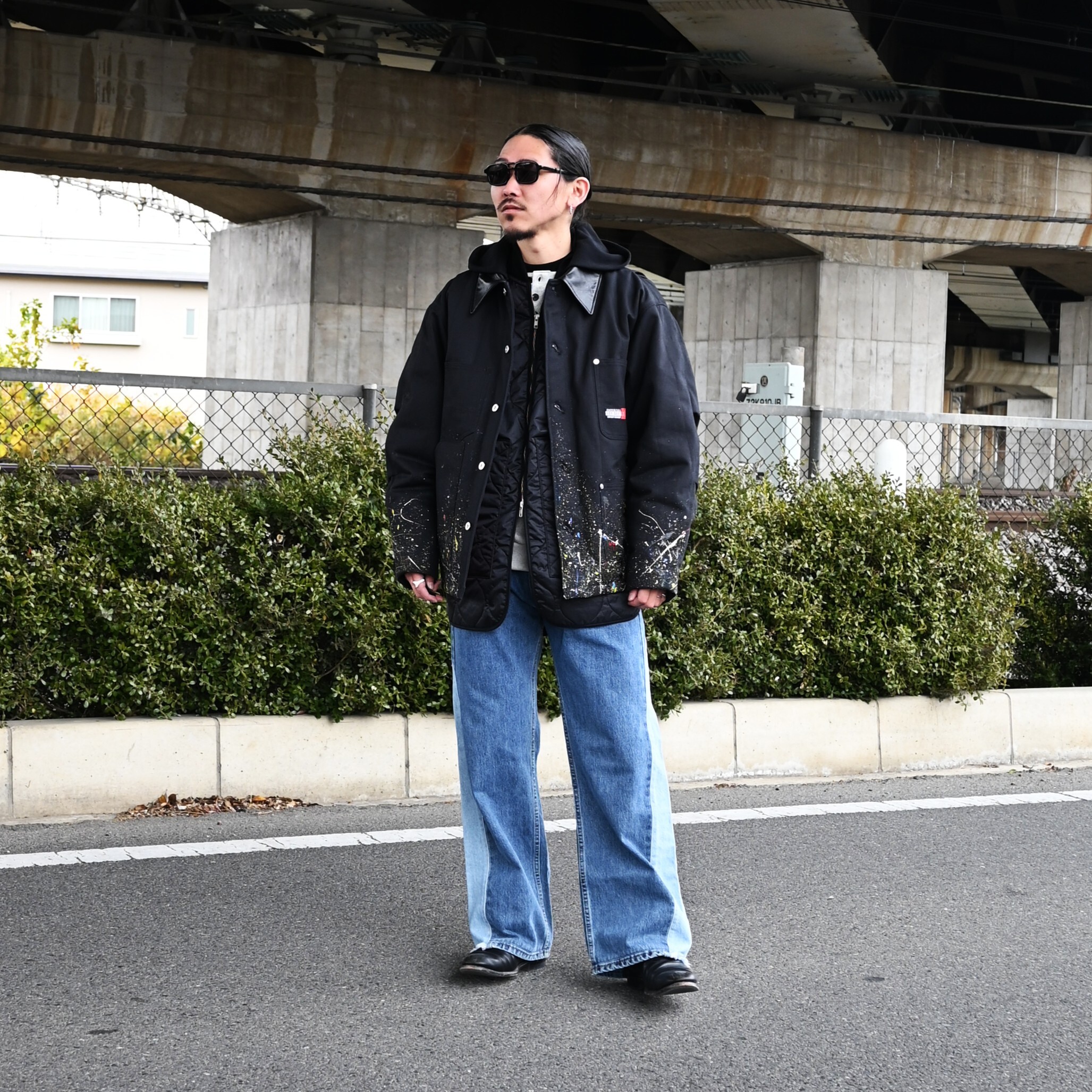 ペンキ加工により全てが1点物の「キルティングドッキングカバーオールブルゾン」