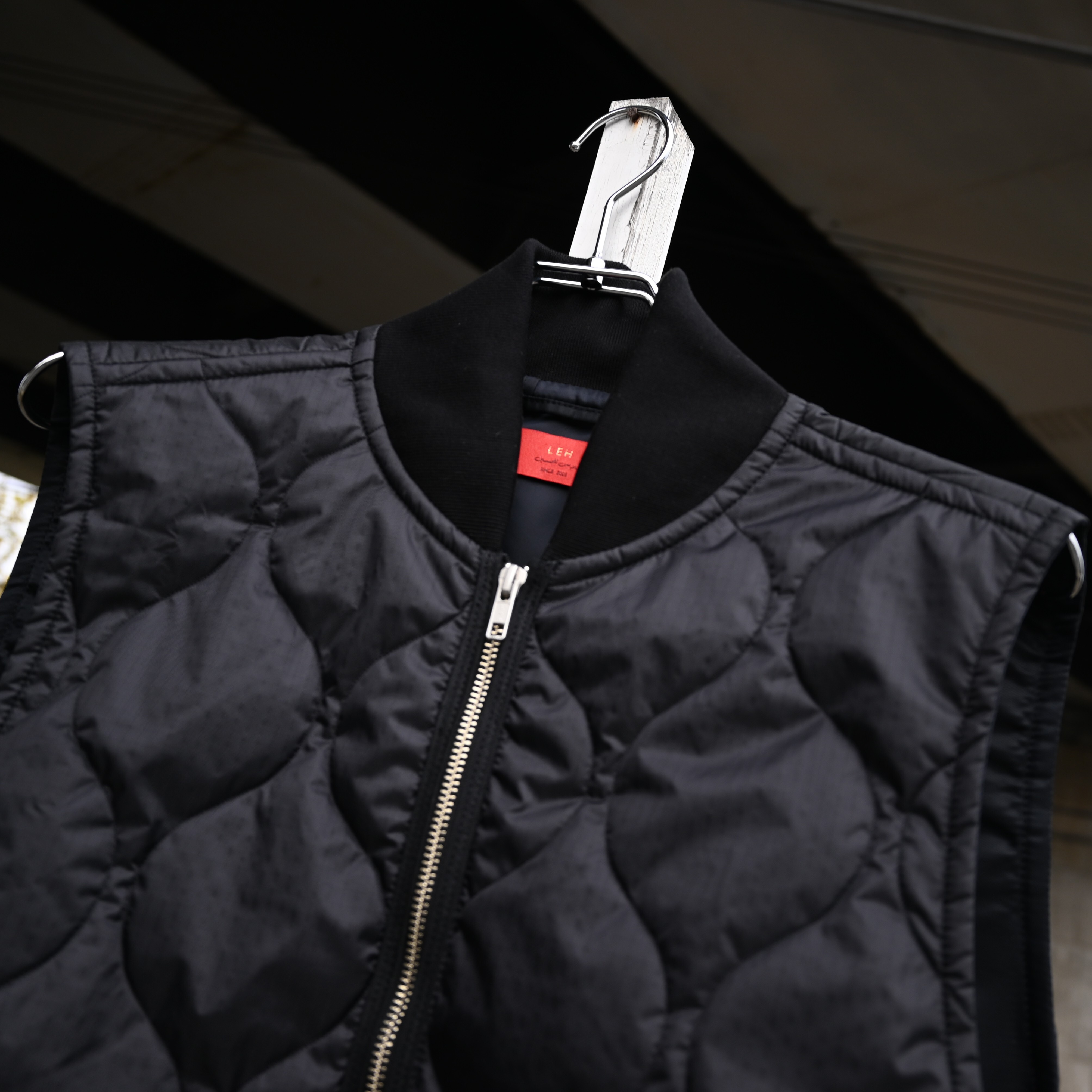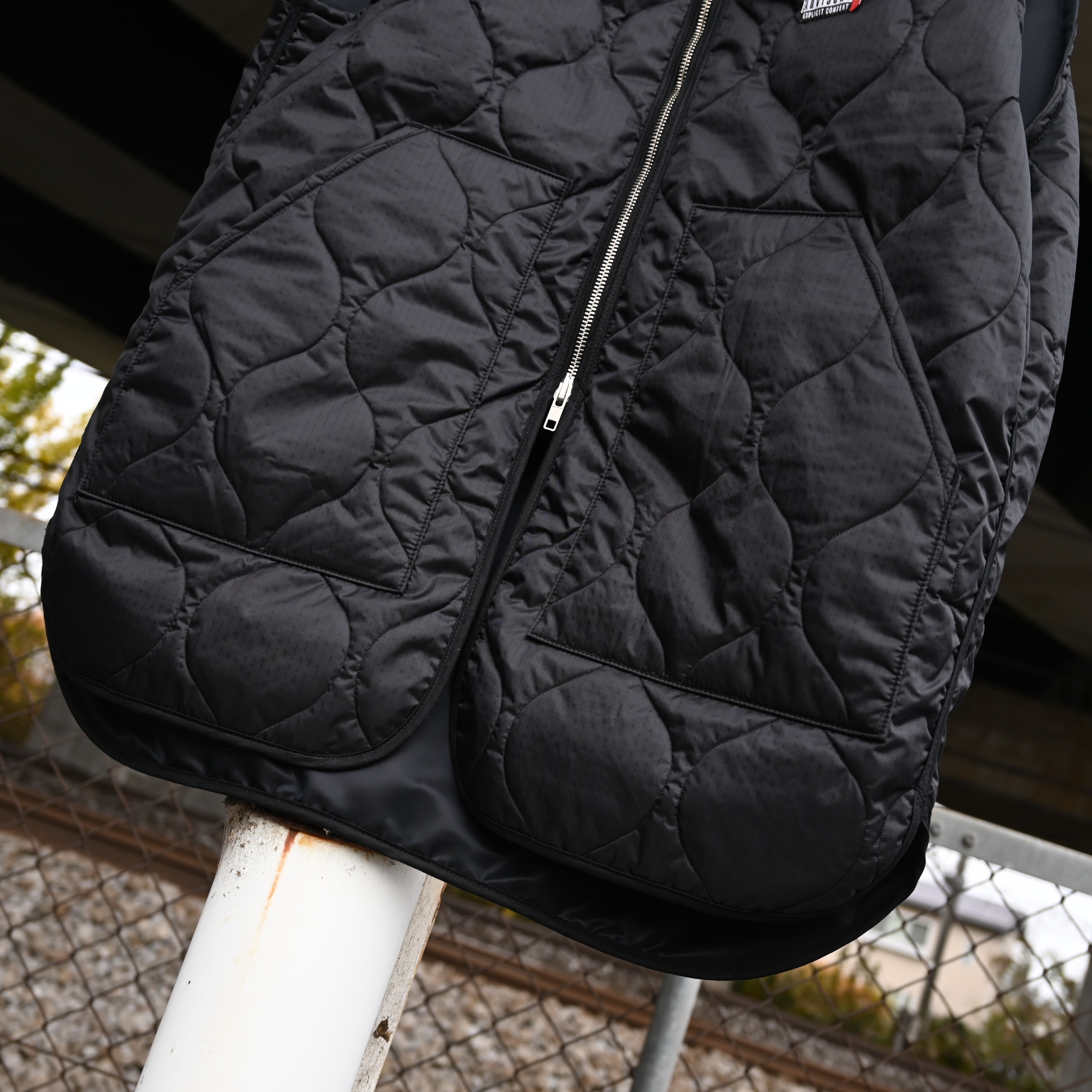 ・キルティングライナーは縦長シルエットで取り外して合わせるとミドルベストのような印象に