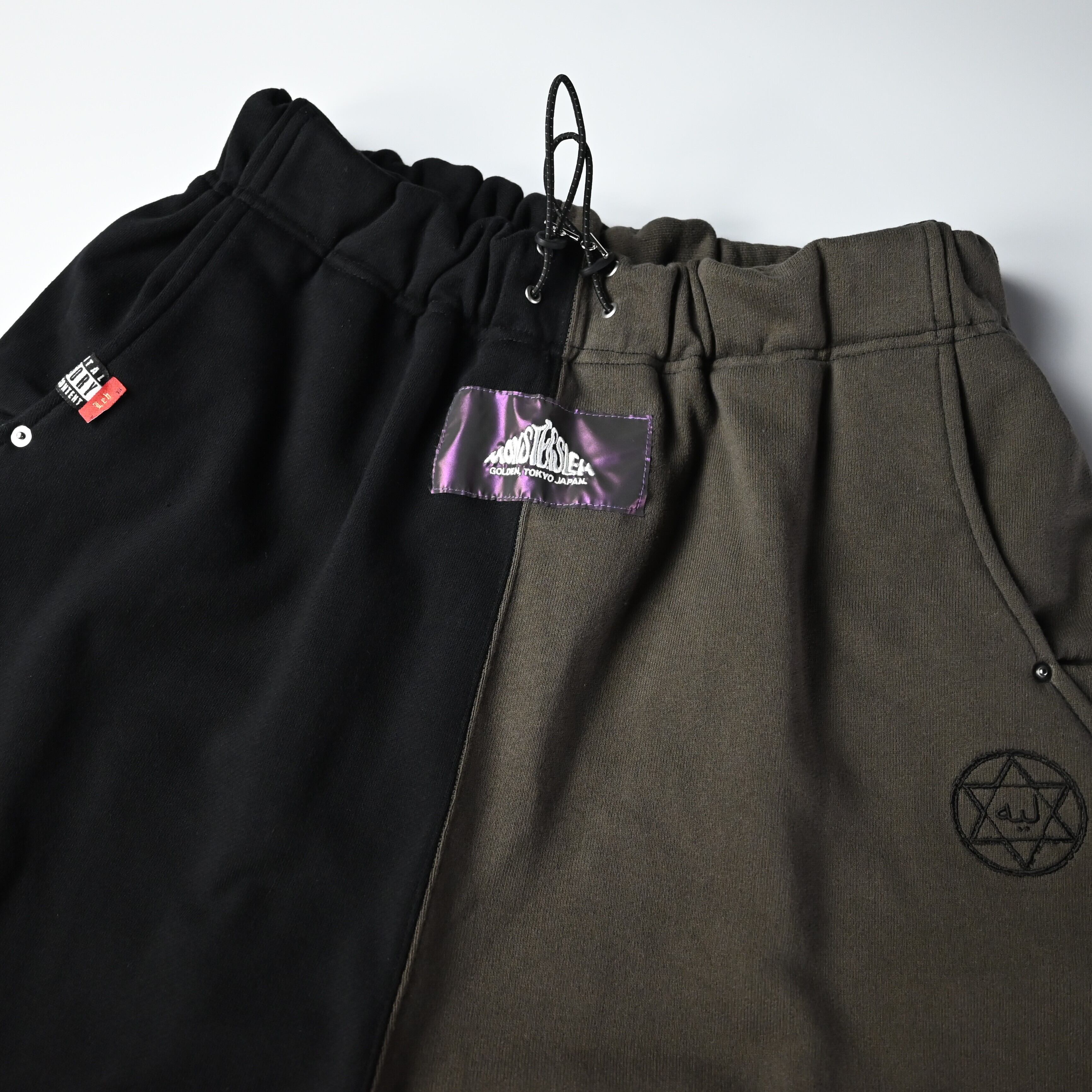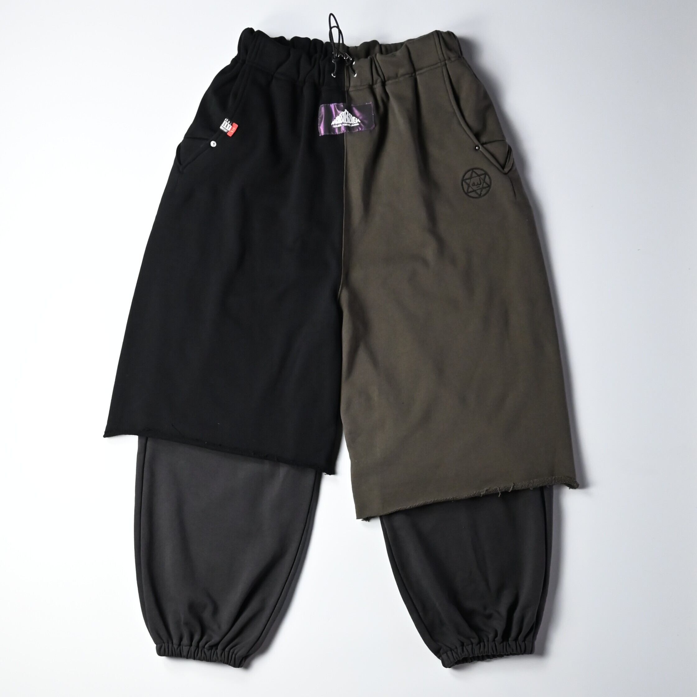 レイヤードとカットオフデザインが目を引くスウェットパンツ