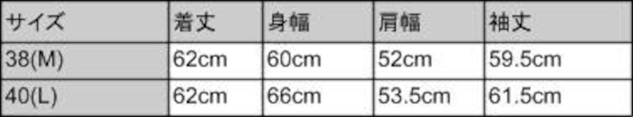 サイズ40(L):着丈62cm肩幅53.5cm 身幅63cm袖丈61.5cm