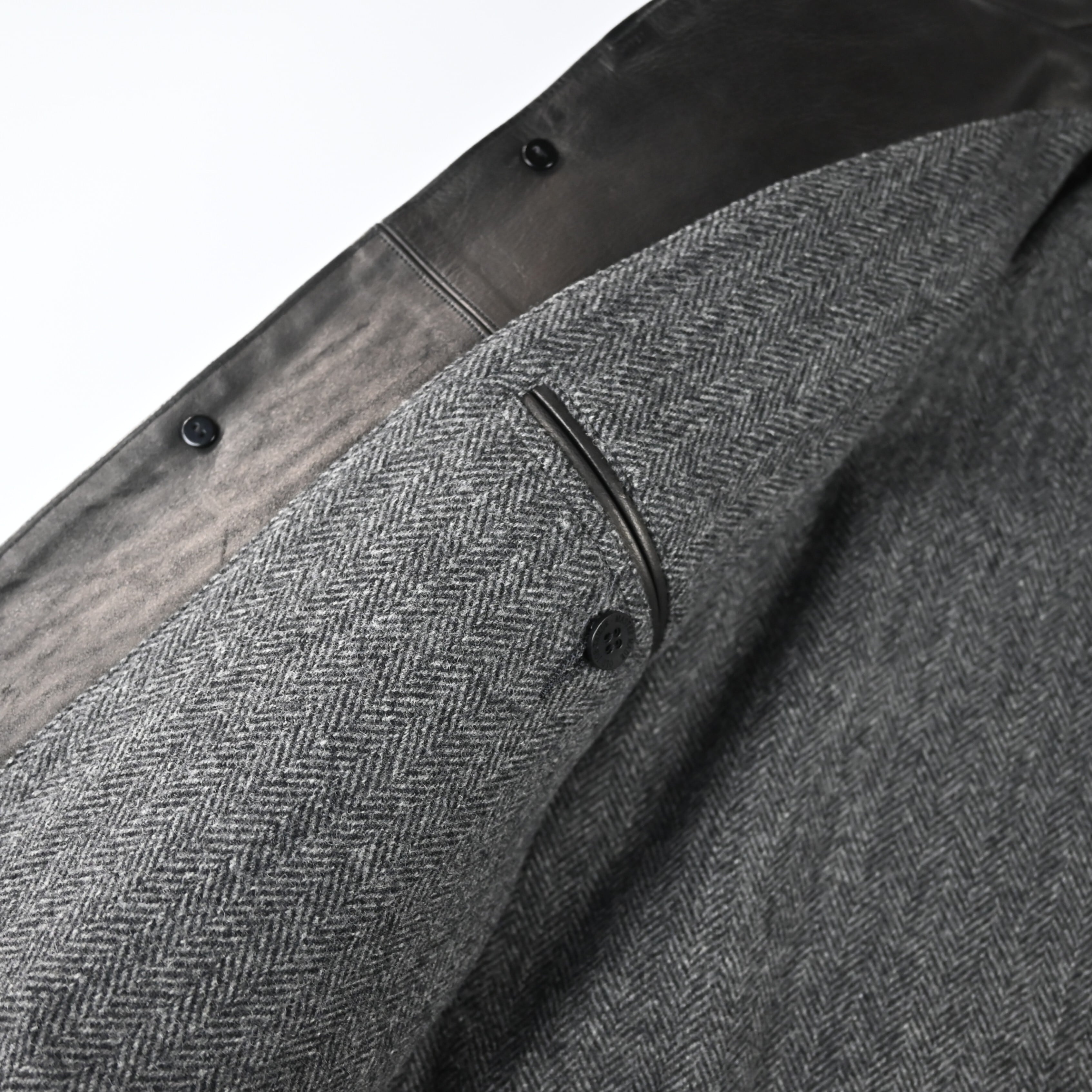 ・裏地には、英国羊毛ツイードを使用。英国羊毛は油分が少なく繊度が太いためカサッとしたドライタッチで保温性が高い