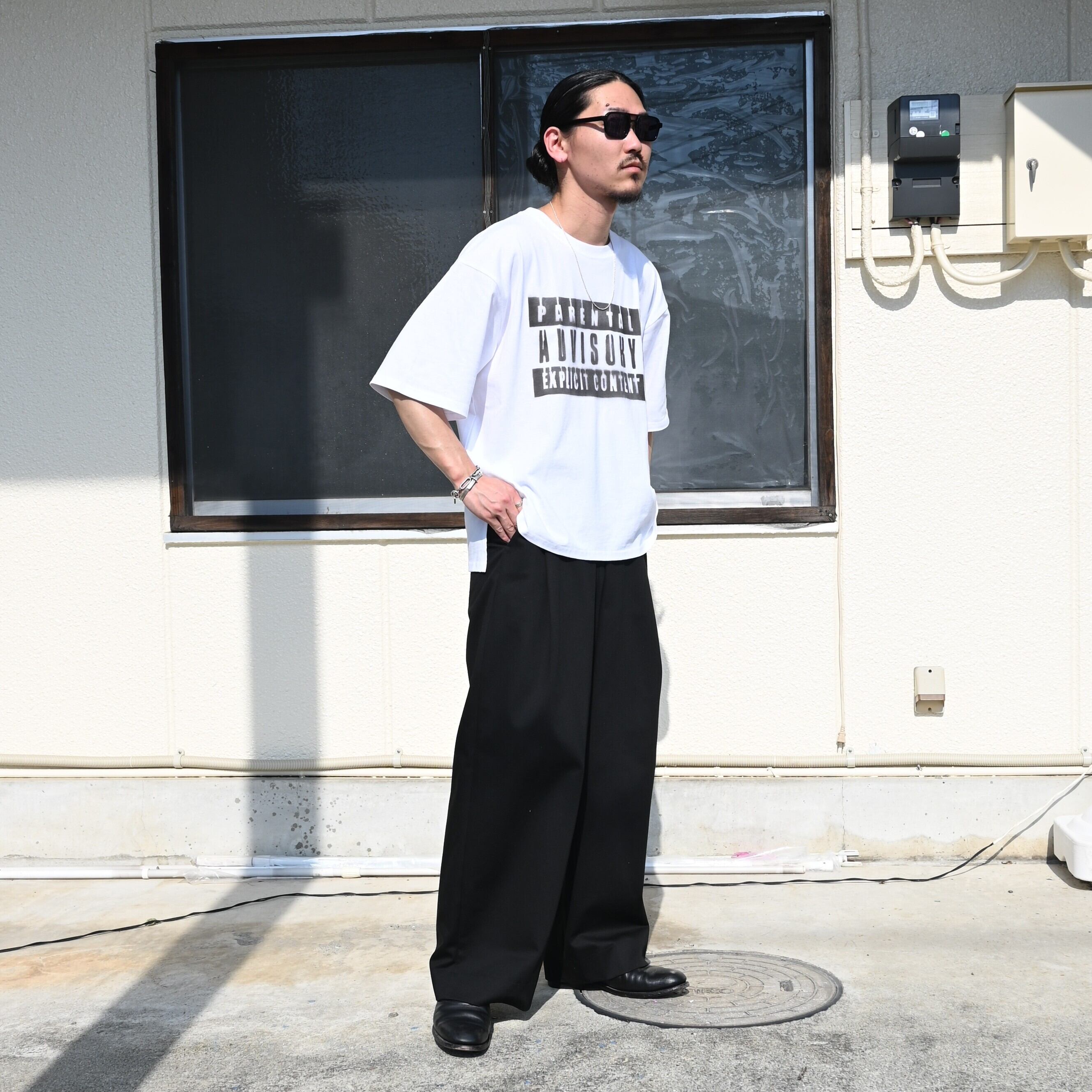 Leh(レー)の25aw新作ADVISORY Big Size Slit T-SHが入荷。ディッキーズオマージュのラップワイドパンツと合わせてシンプルな春夏Tシャツスタイルに。ステンシルプリントがかっこいいのでTシャツ1枚でも様になります。