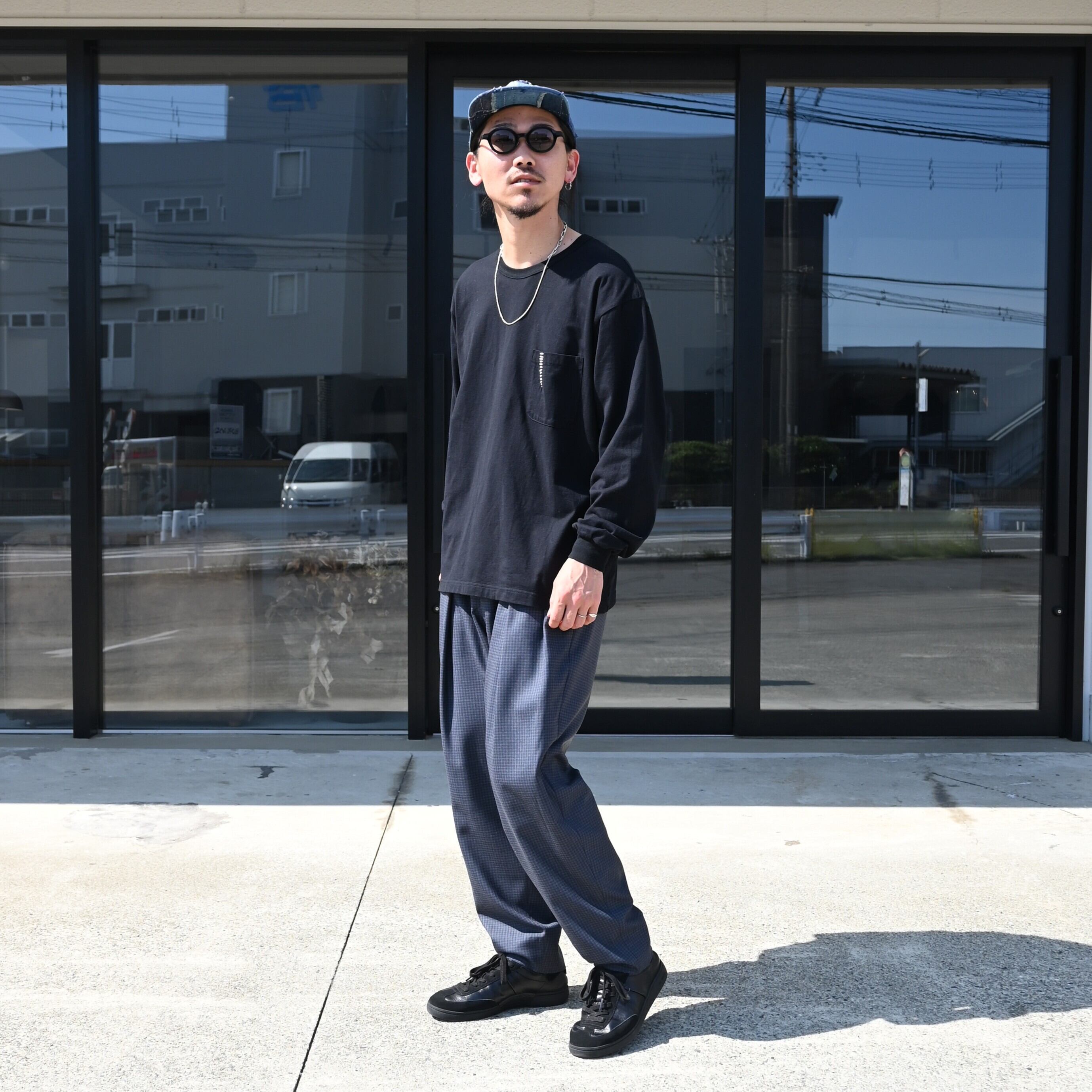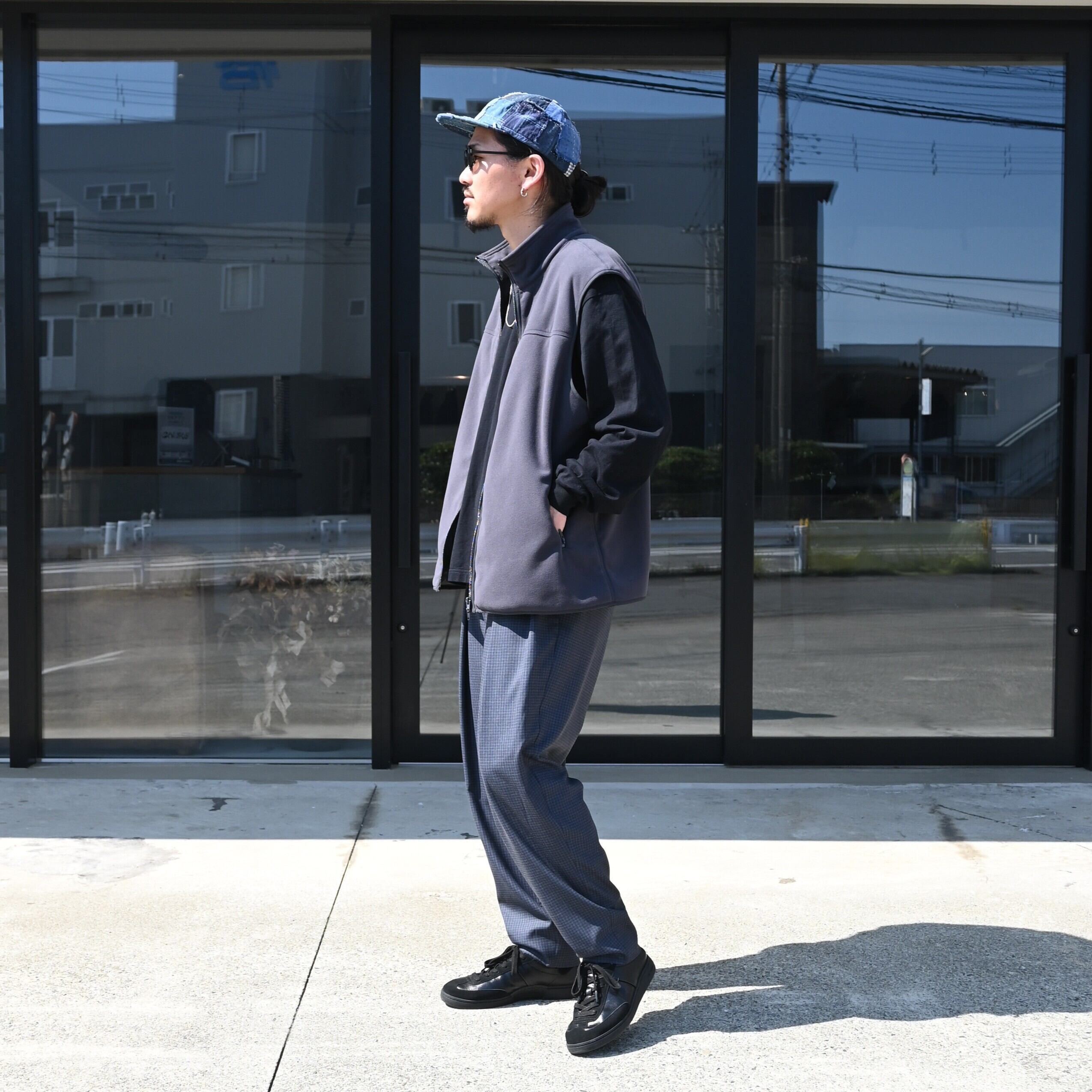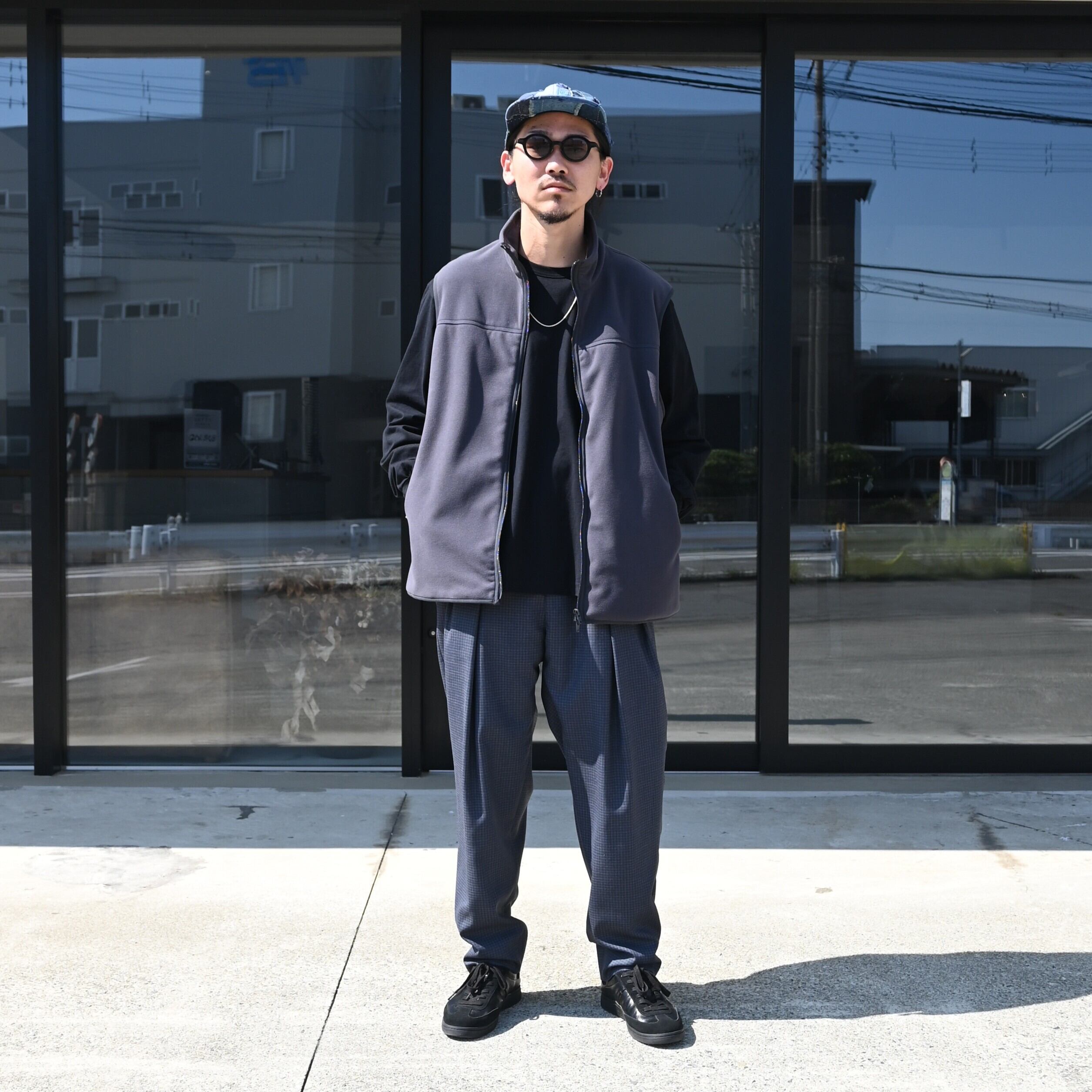 THE DAY(ザデイ)の25AW新作WIND ZONE FLEECE VESTをメインにインナーはKUON(クオン)のSashiko L/S Teeを合わせ、tangenet(タンジェネット)のWool tropical Billyを合わせたグレーベースのスタイリングです。