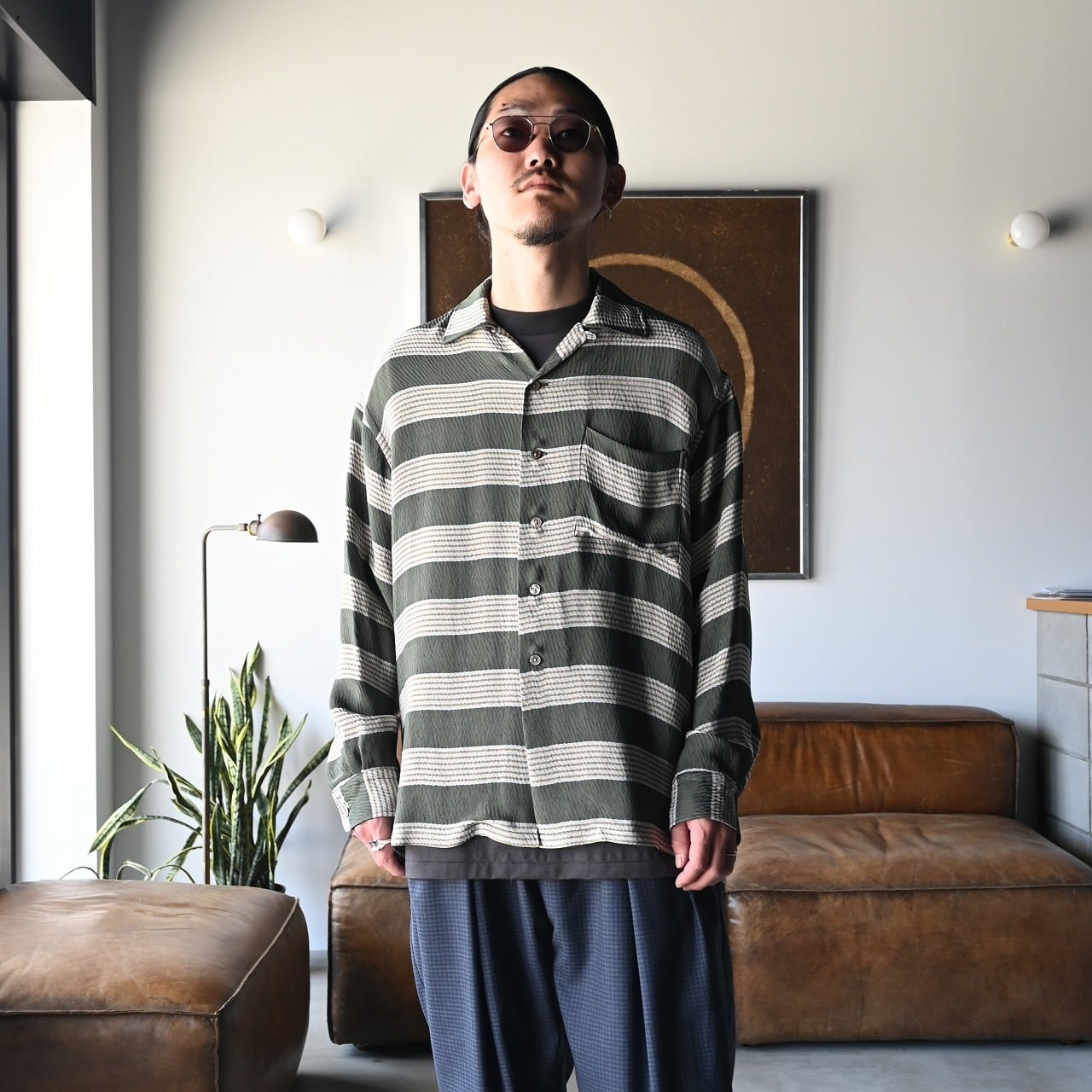 INTÉRIM / HYPER BIG VISCOSE STRIPE 60s OPEN COLLAR SHIRT