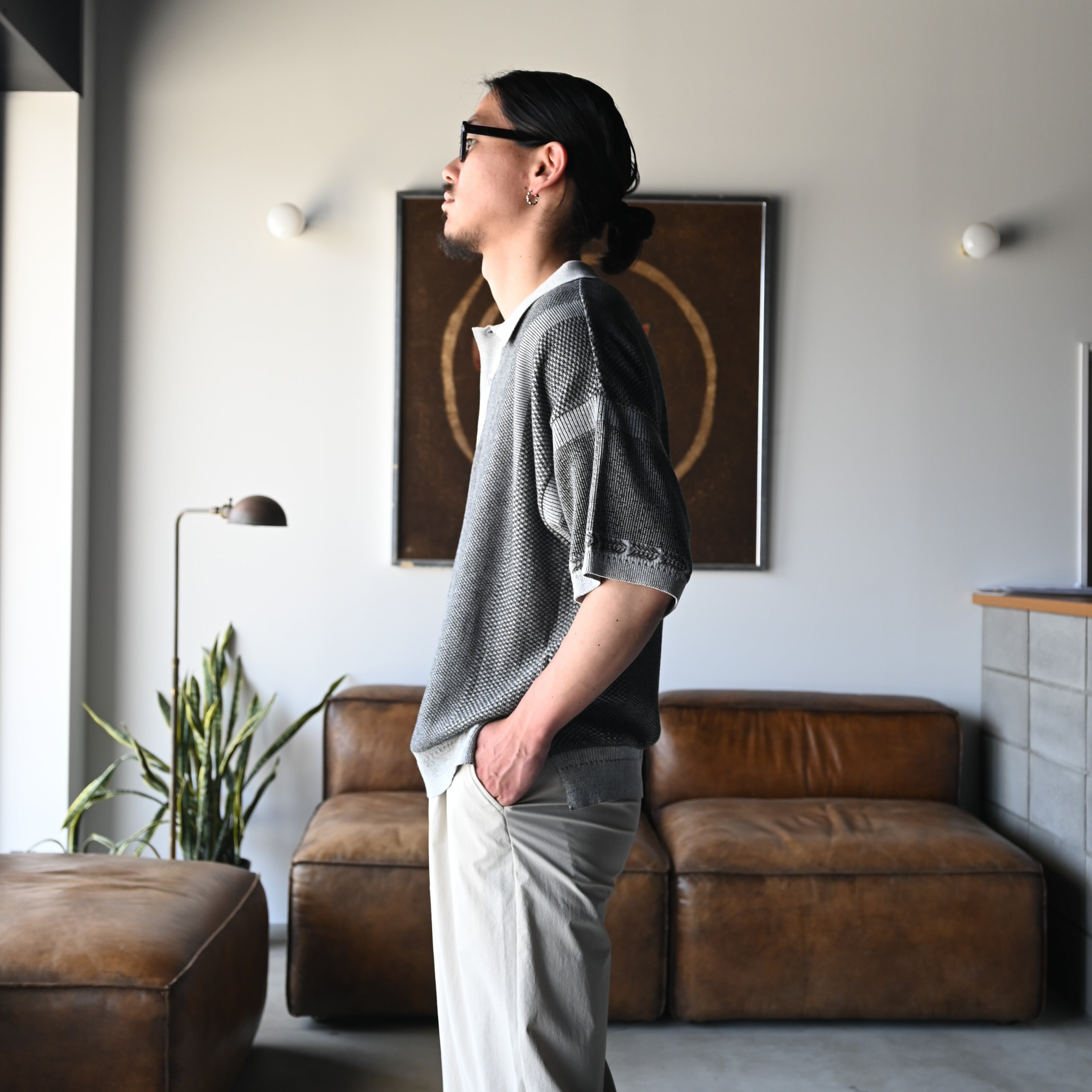 Wearing the KUON Reversible Kimono Collar Blazer as the main piece, I paired it with a knit polo from YASHIKI and slacks from SAYATOMO.