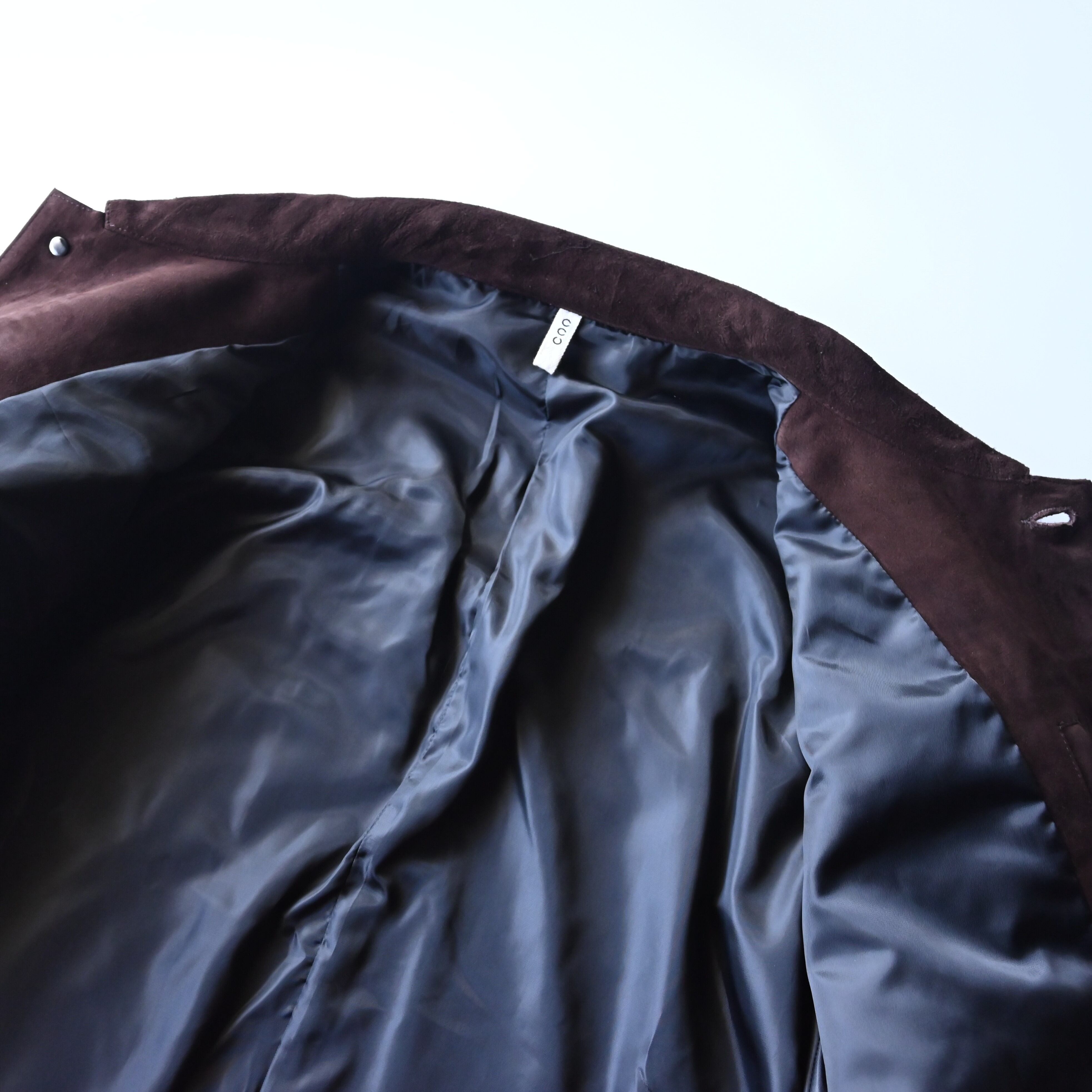 • The surface is suede-finished, creating a fluid drape and a texture that develops richer character the more it is worn.