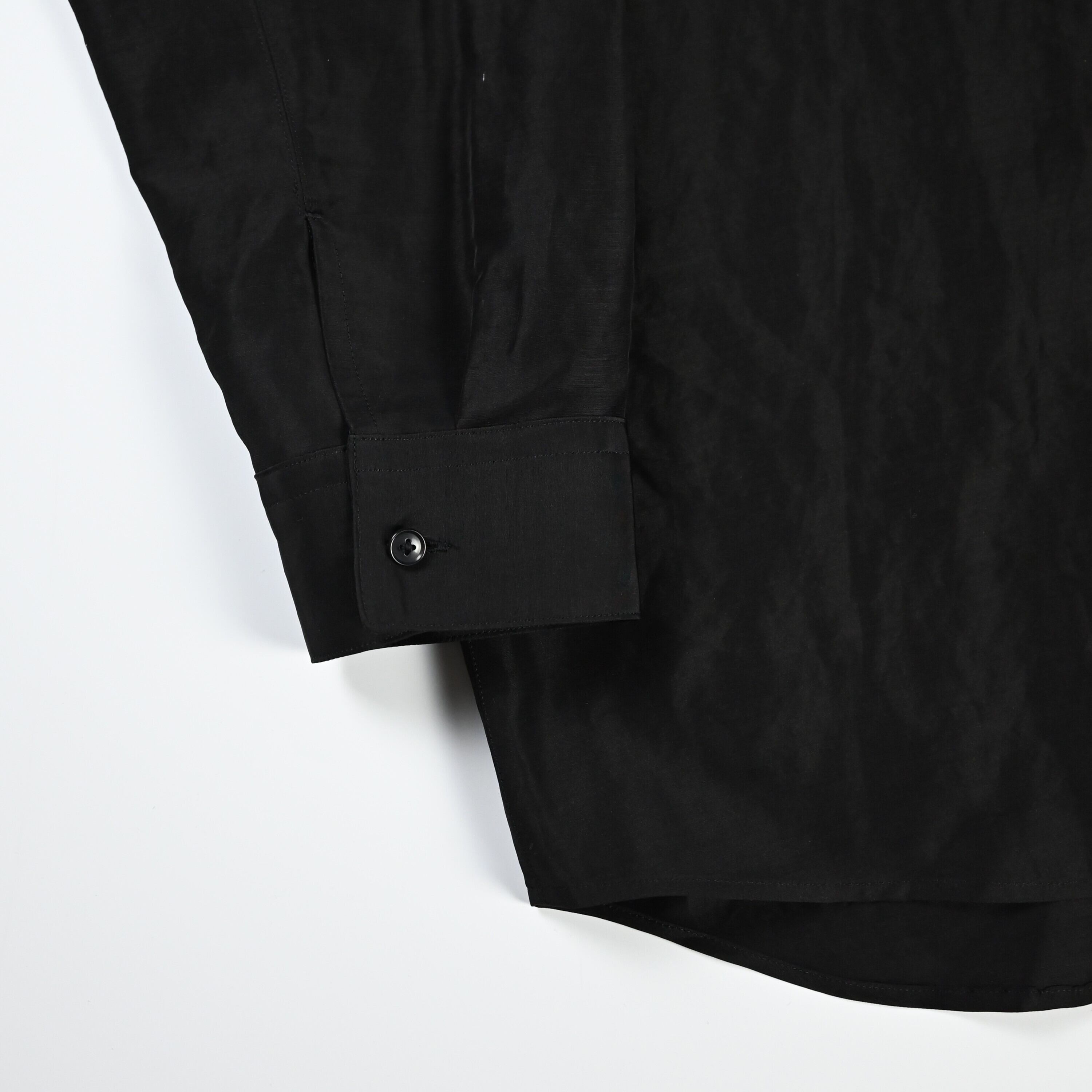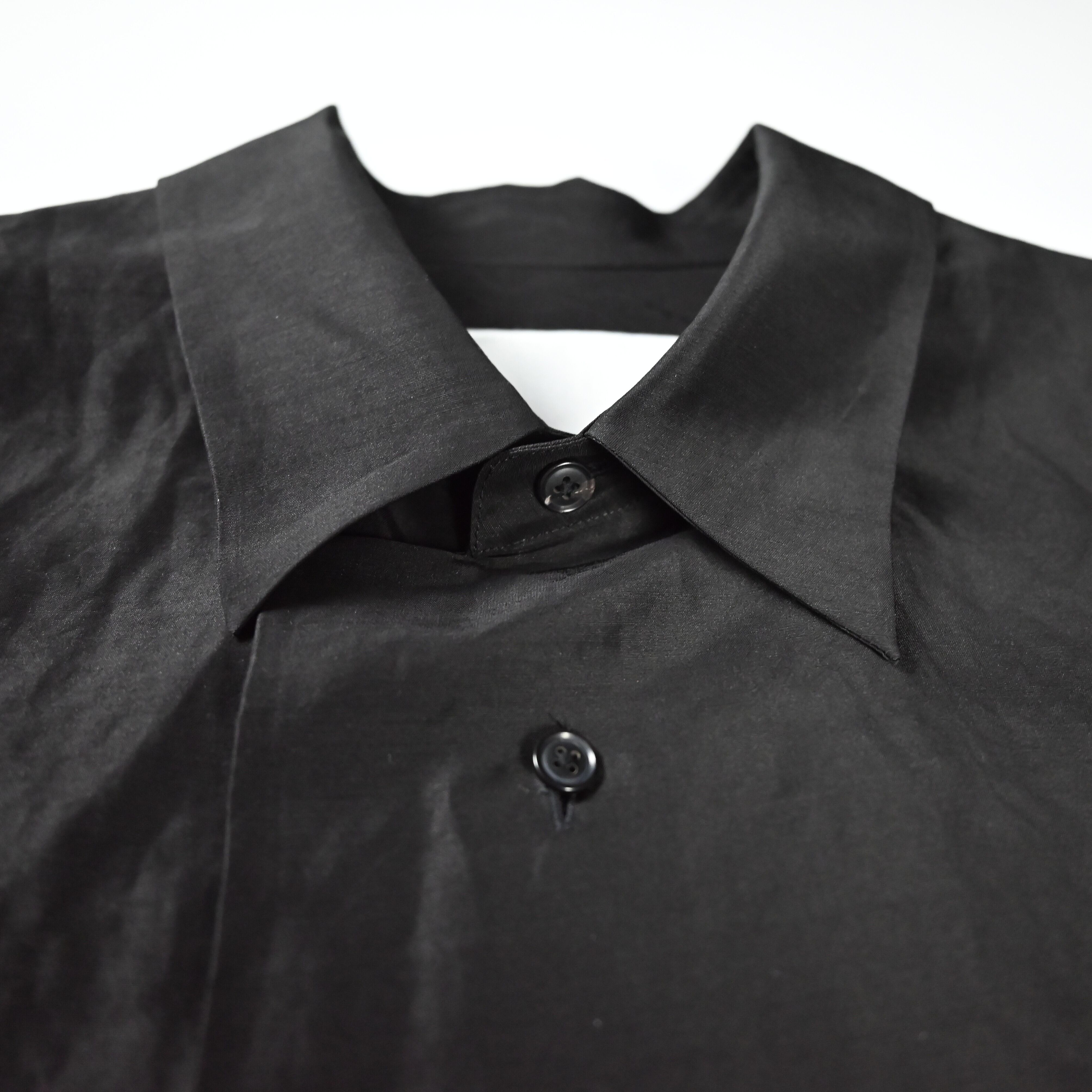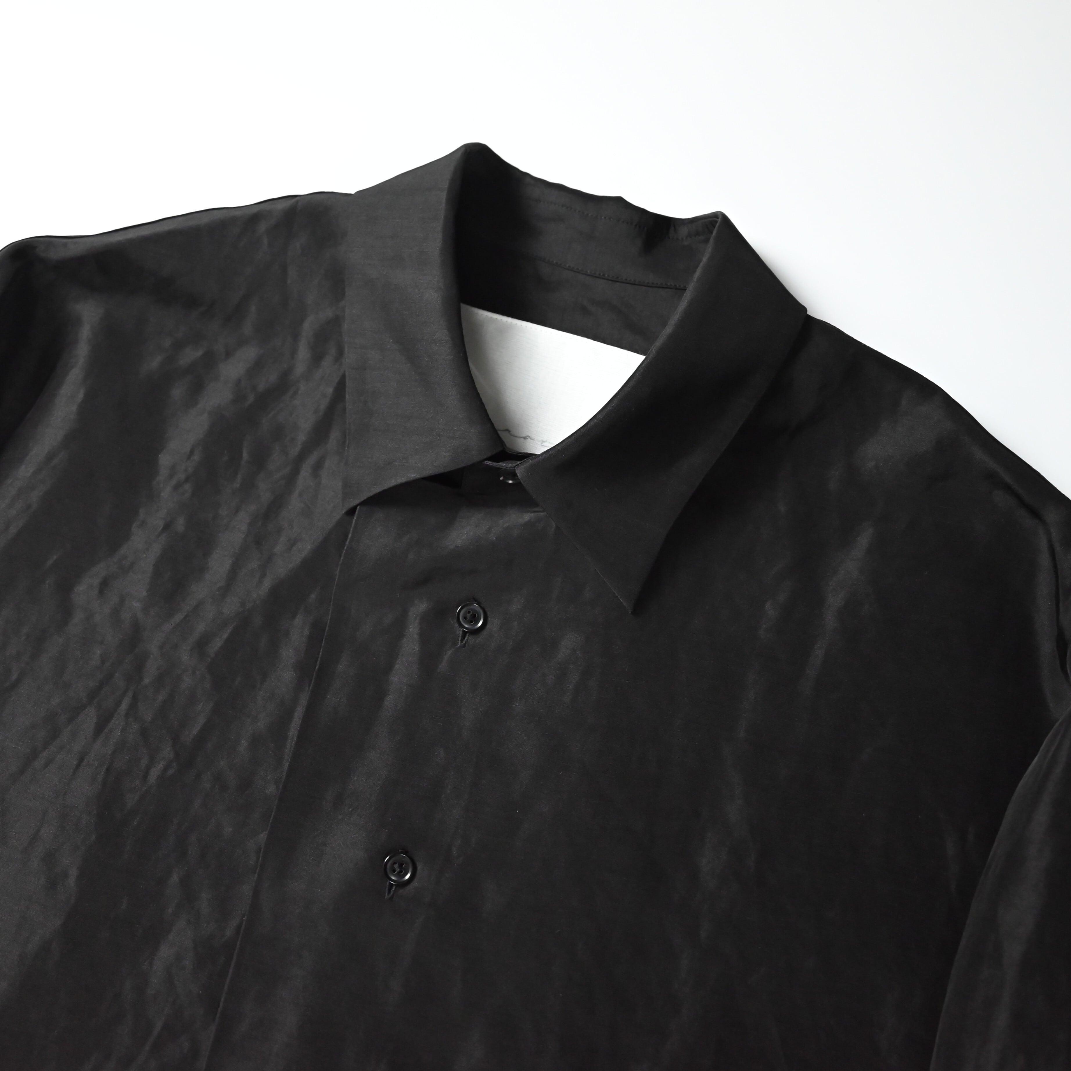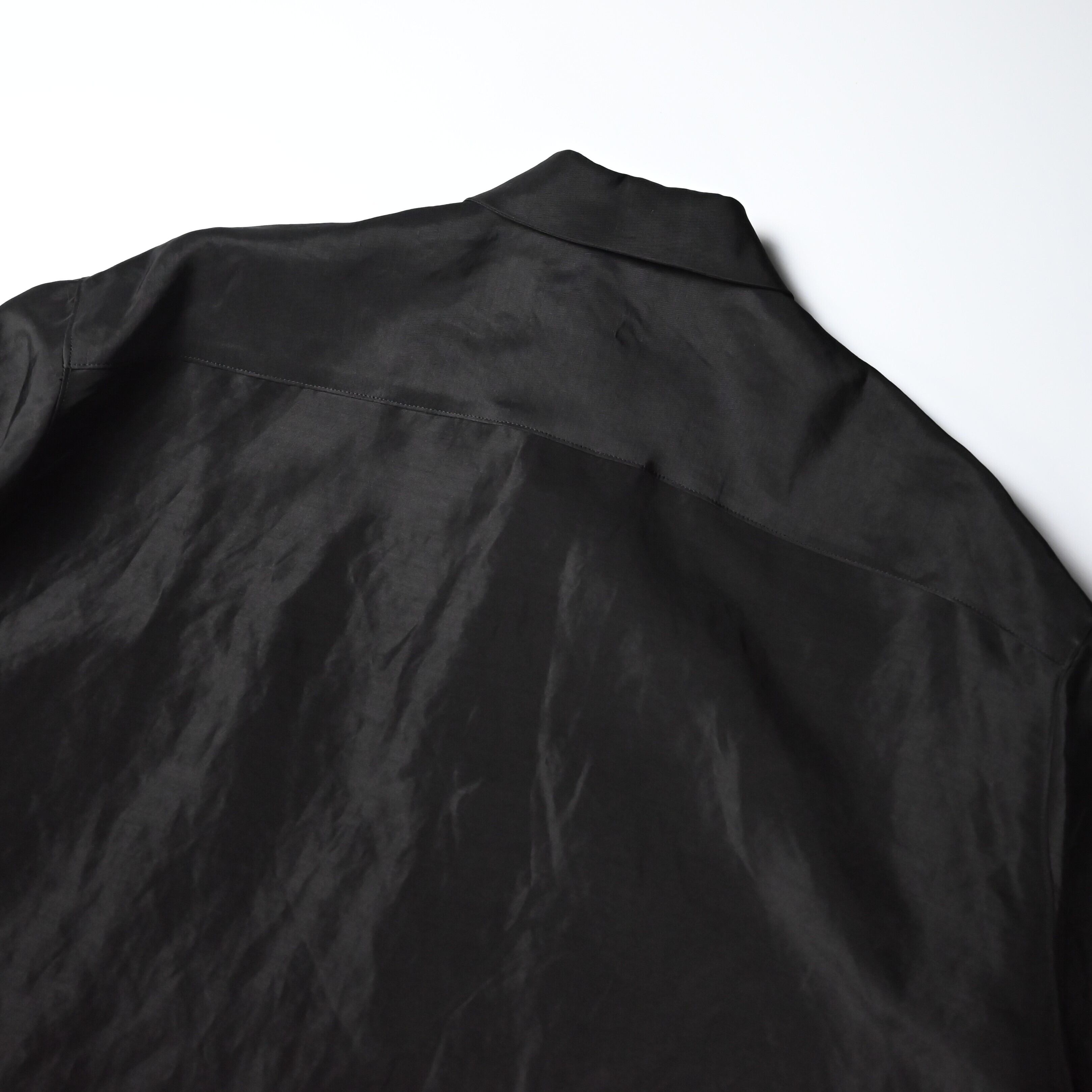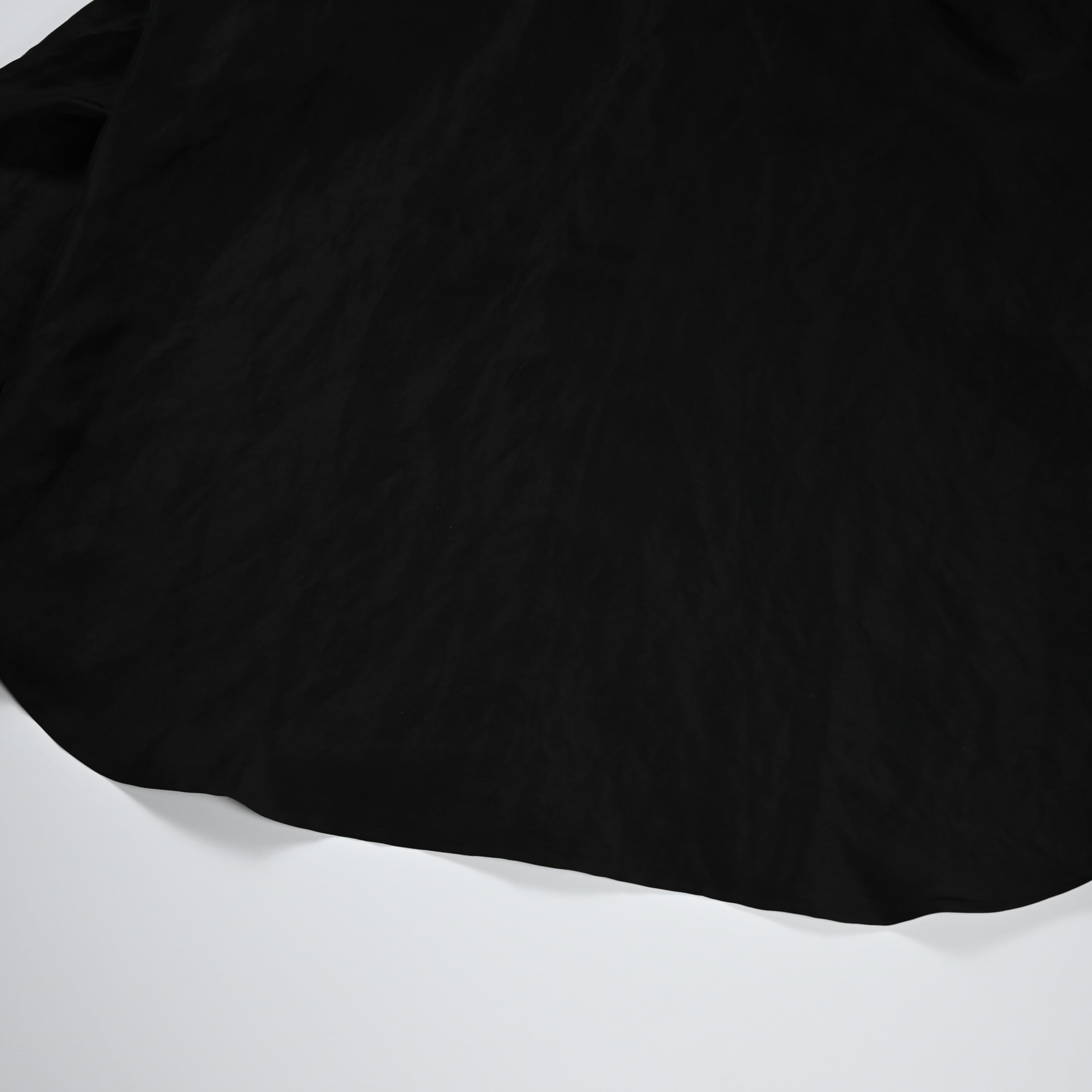 To fully enjoy the inherent quality of the fabric in its purest and chicest form, the fabric is dyed in solid black without uneven dyeing, allowing for a silk-like refined nuance.