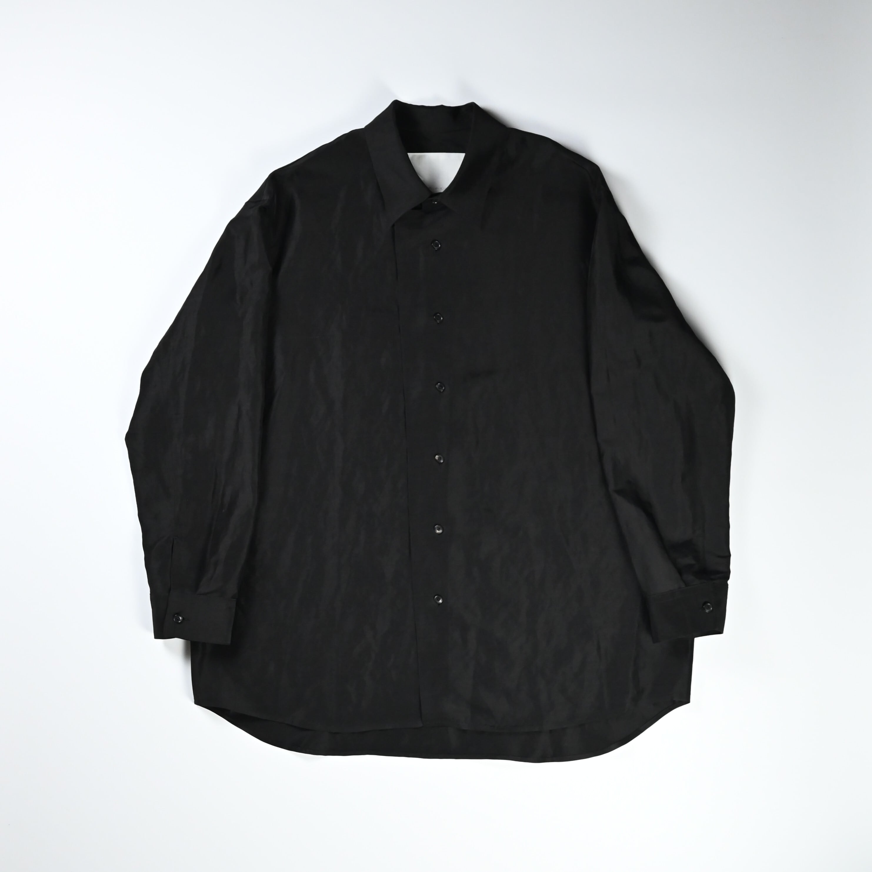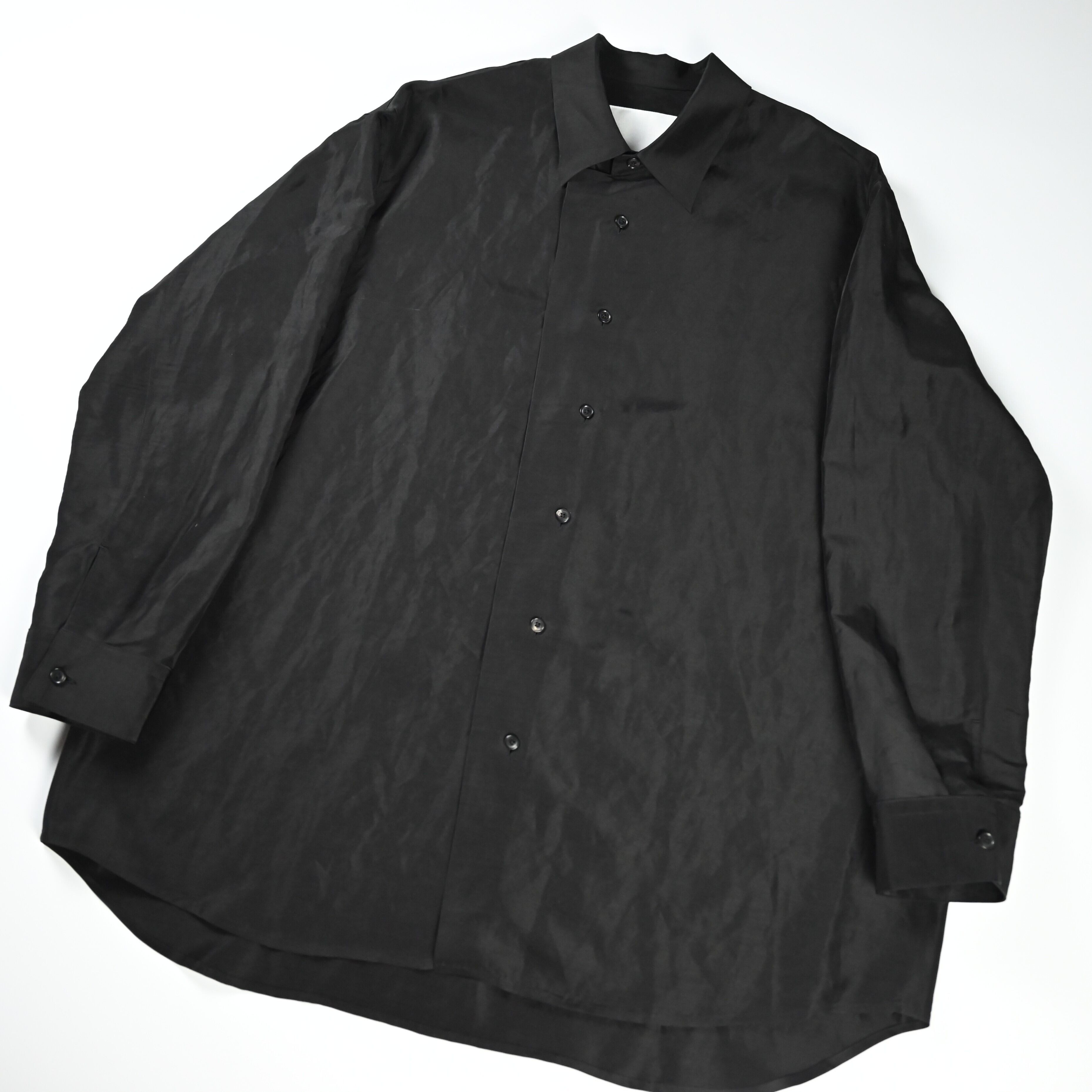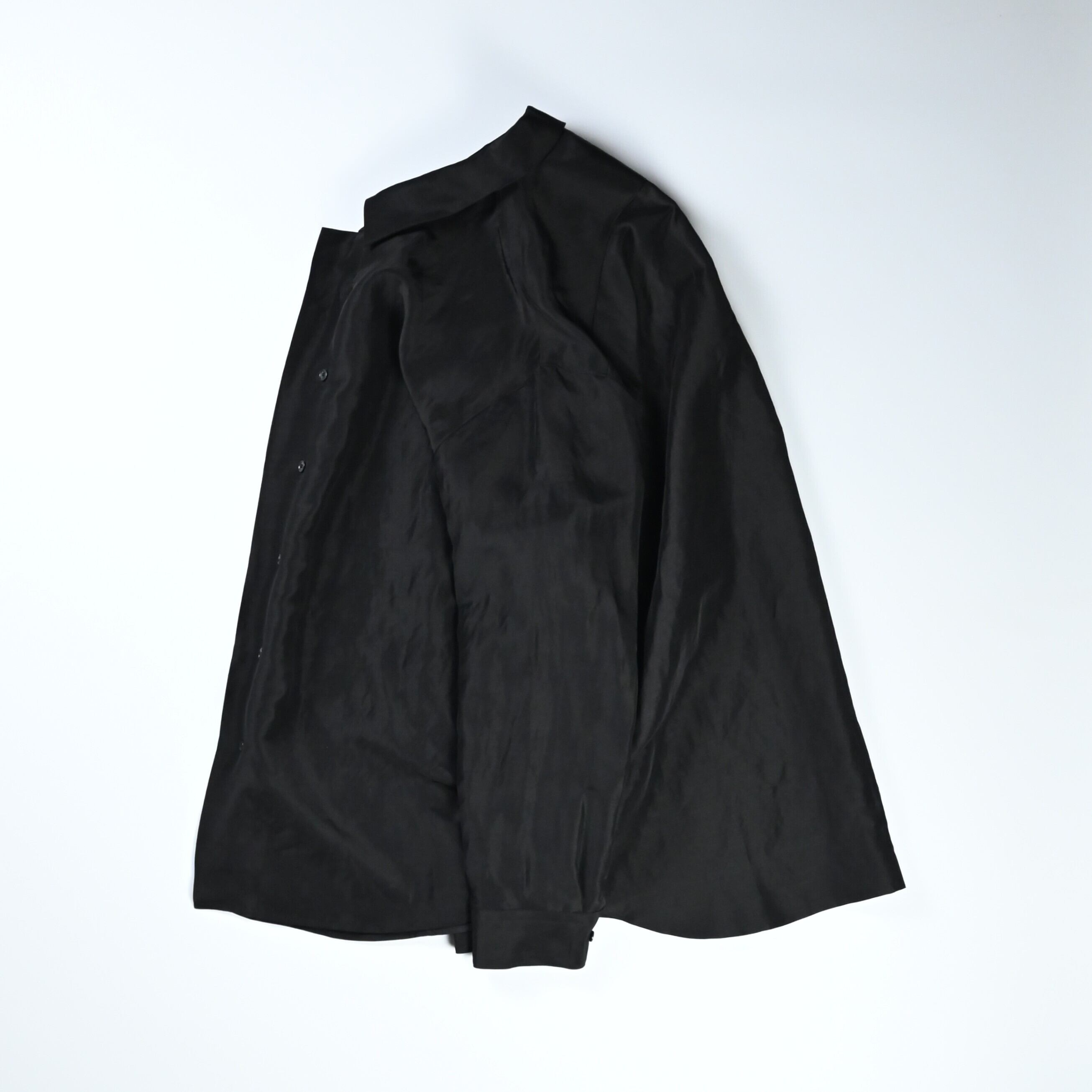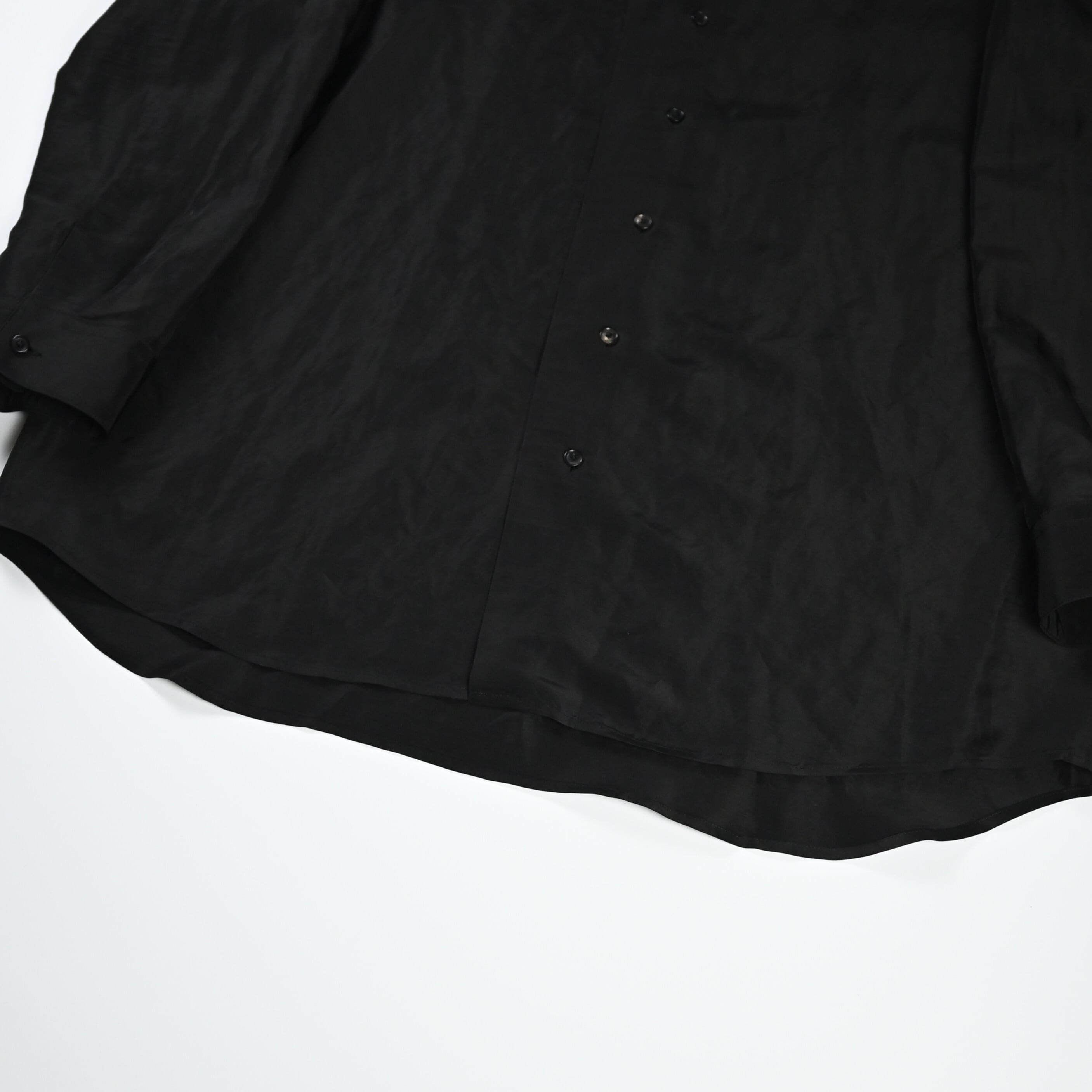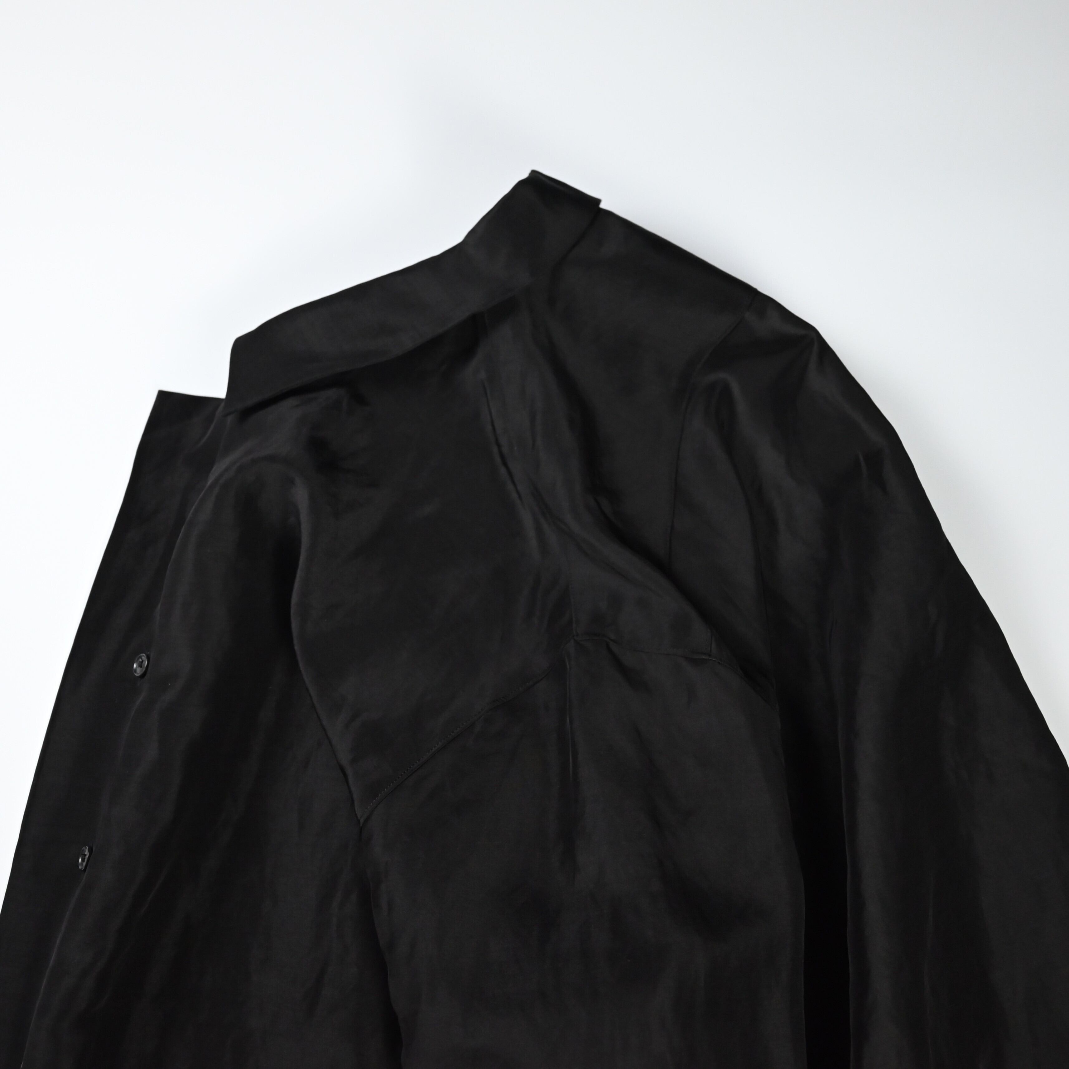 To fully enjoy the inherent quality of the fabric in its purest and chicest form, the fabric is dyed in solid black without uneven dyeing, allowing for a silk-like refined nuance.