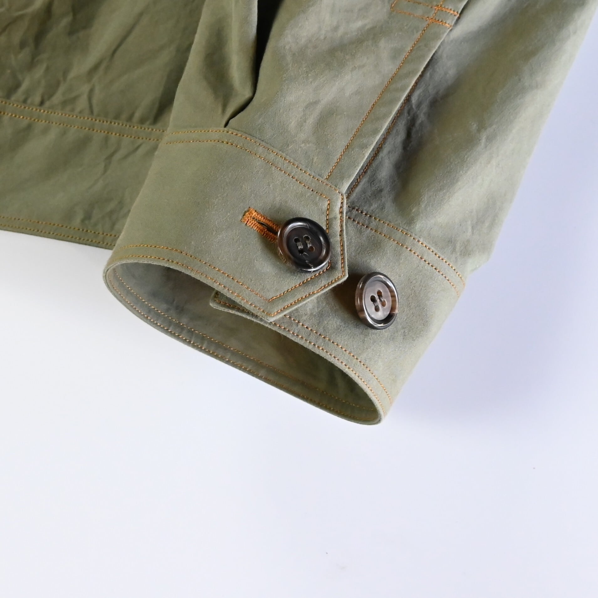 ・オレンジステッチや大ぶりなボタンがクラシカルな雰囲気を醸し出す