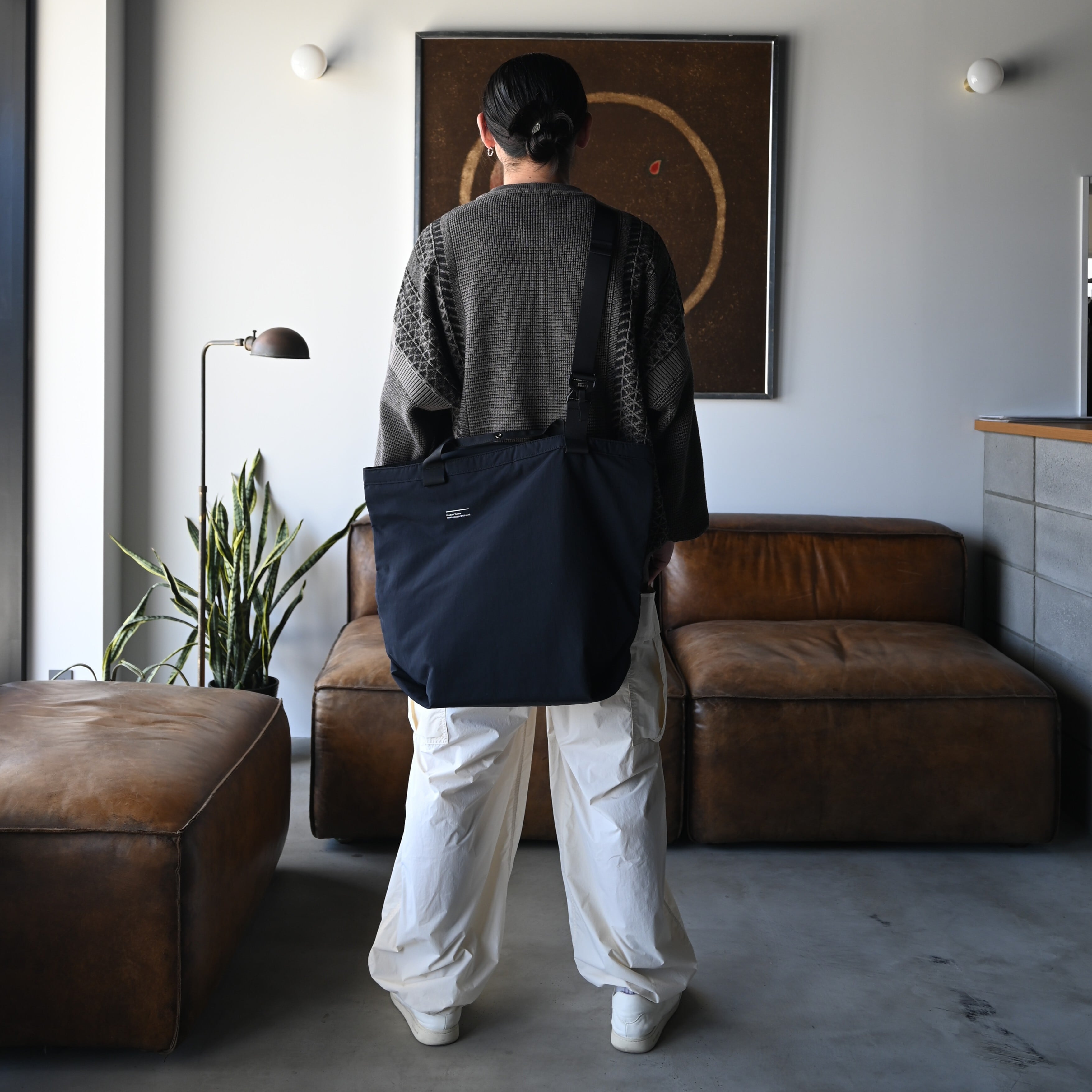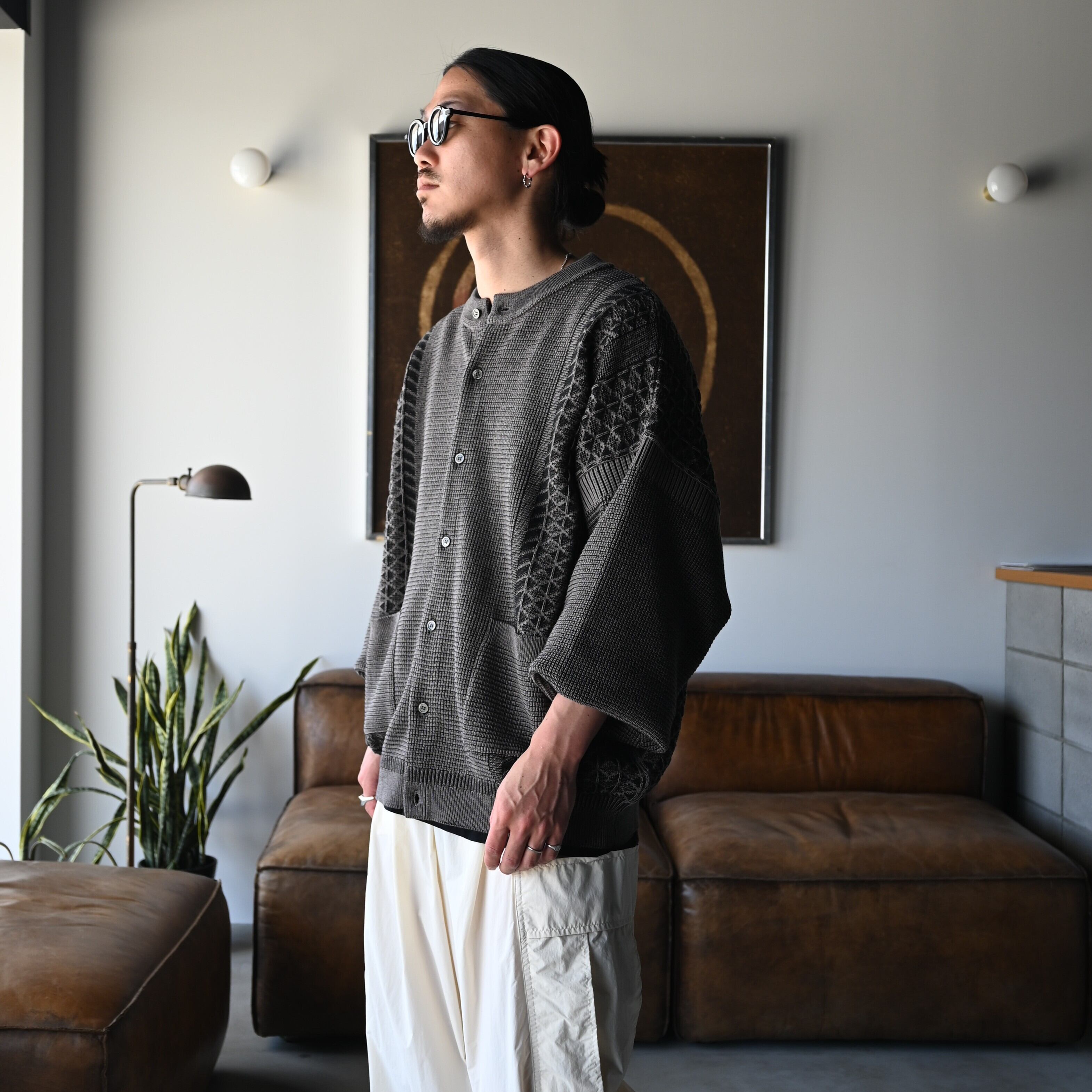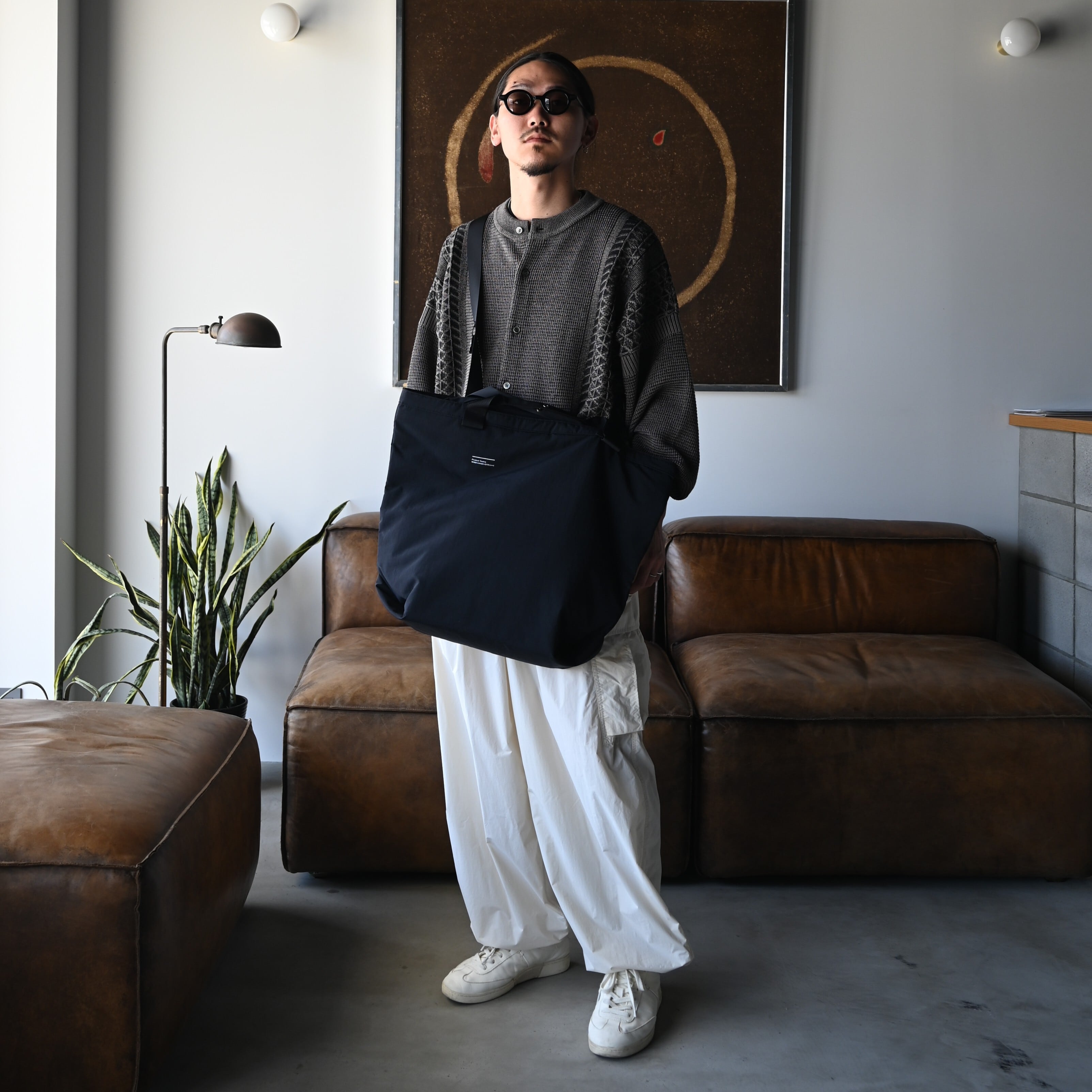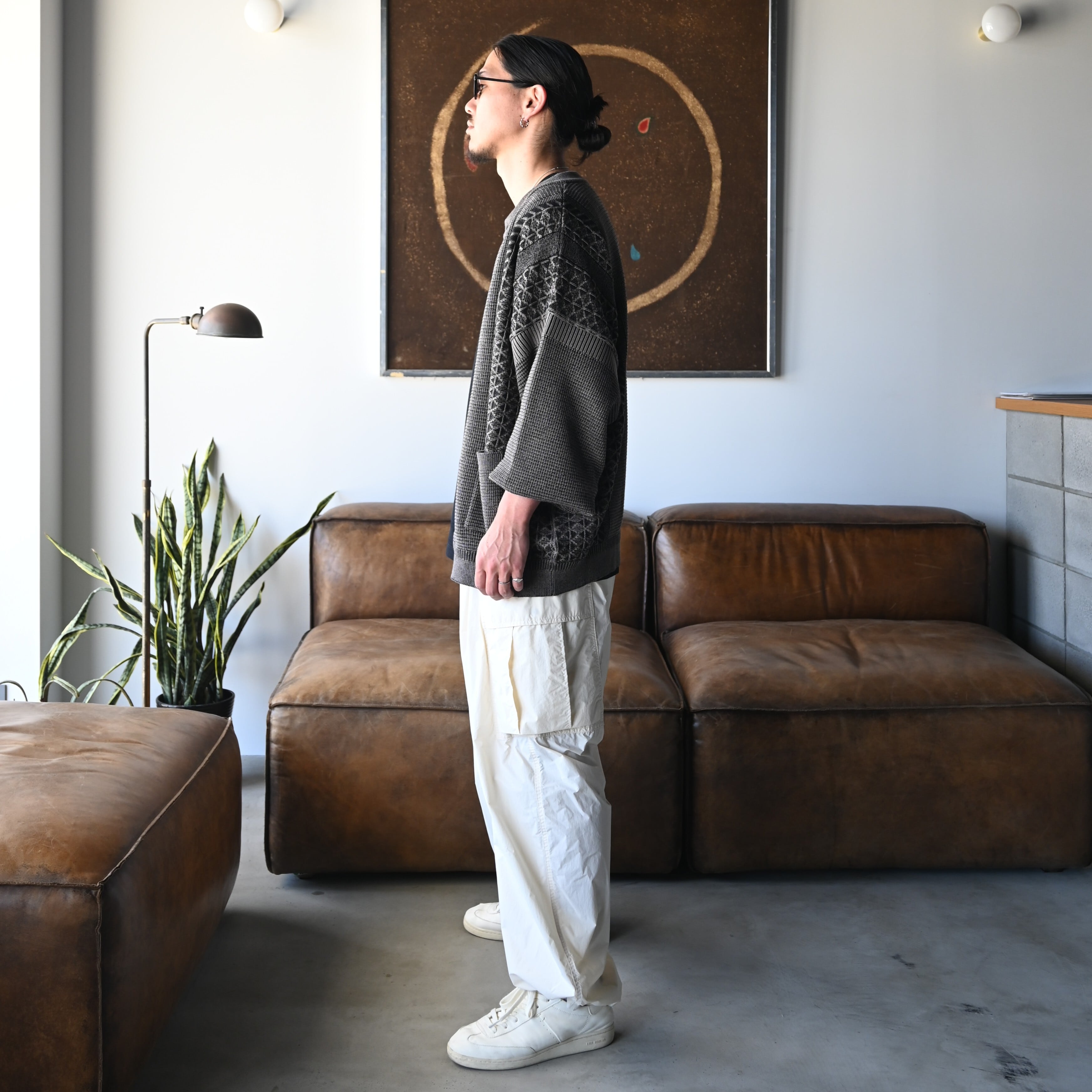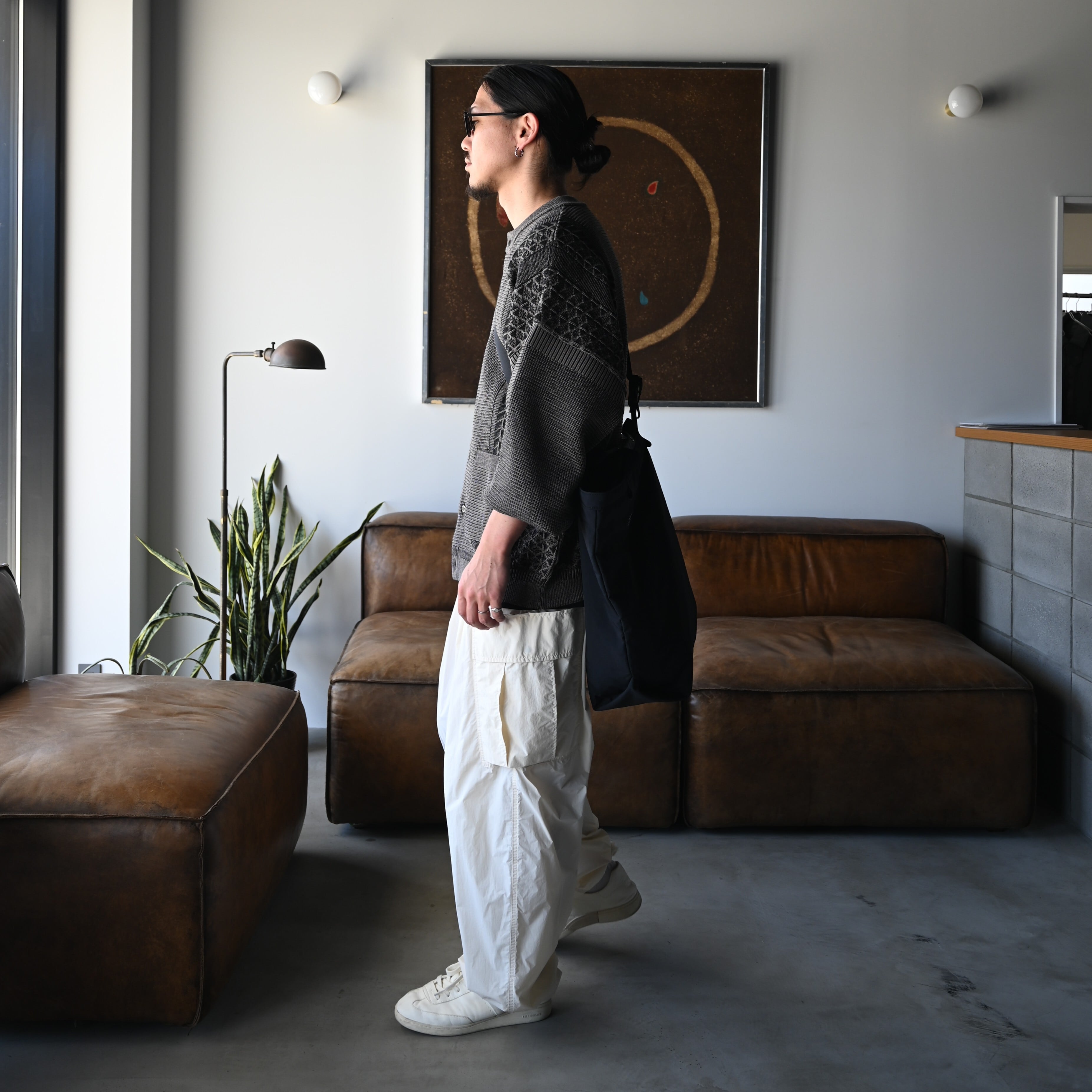 This styling features new items from 25AW YASHIKI and product twelve. The Ginka Cardigan is the main piece, paired with PT12 Utility Pants, and layered with a KUON Sashiko Tee as the innerwear. For an accent, the look is completed with a City Tote Bag.