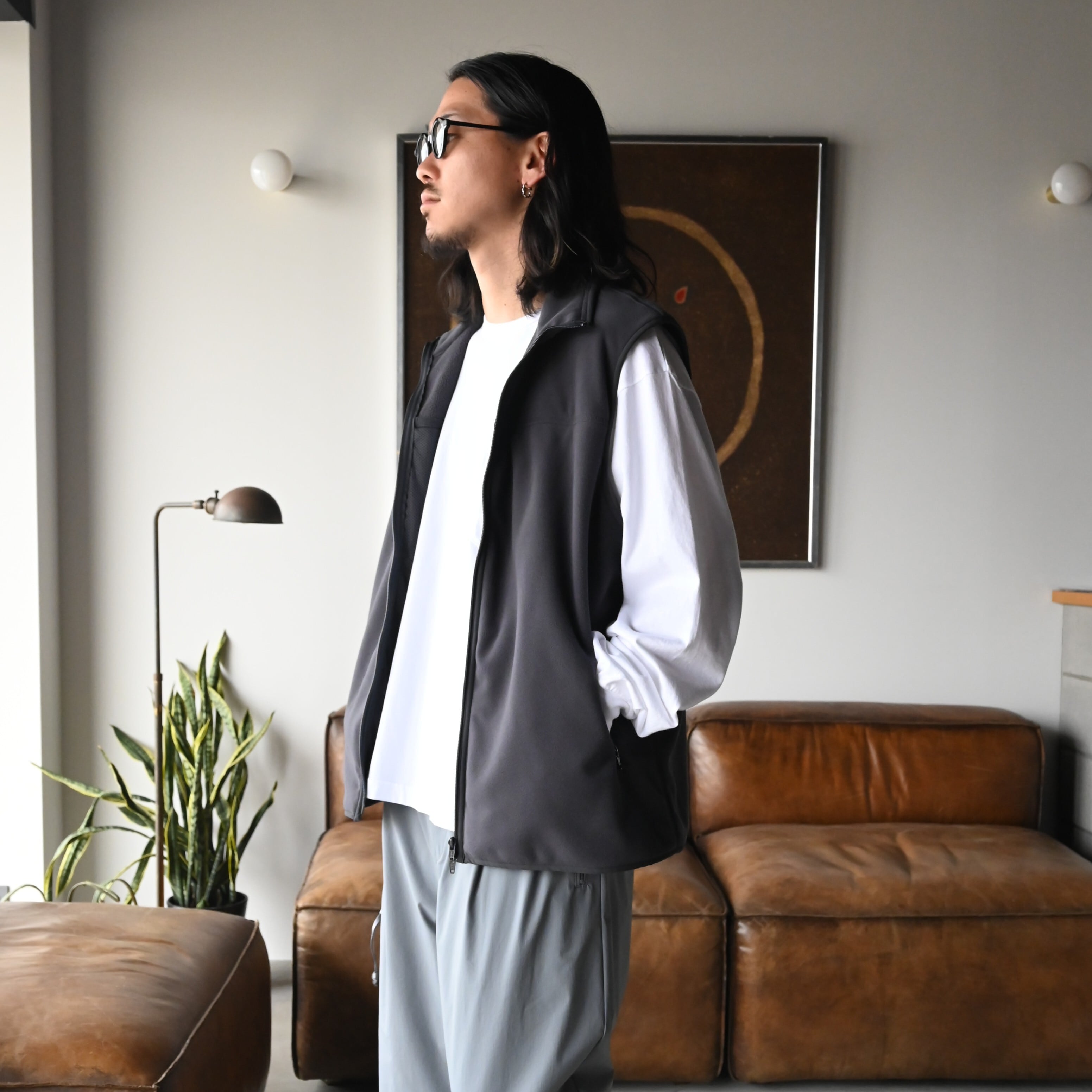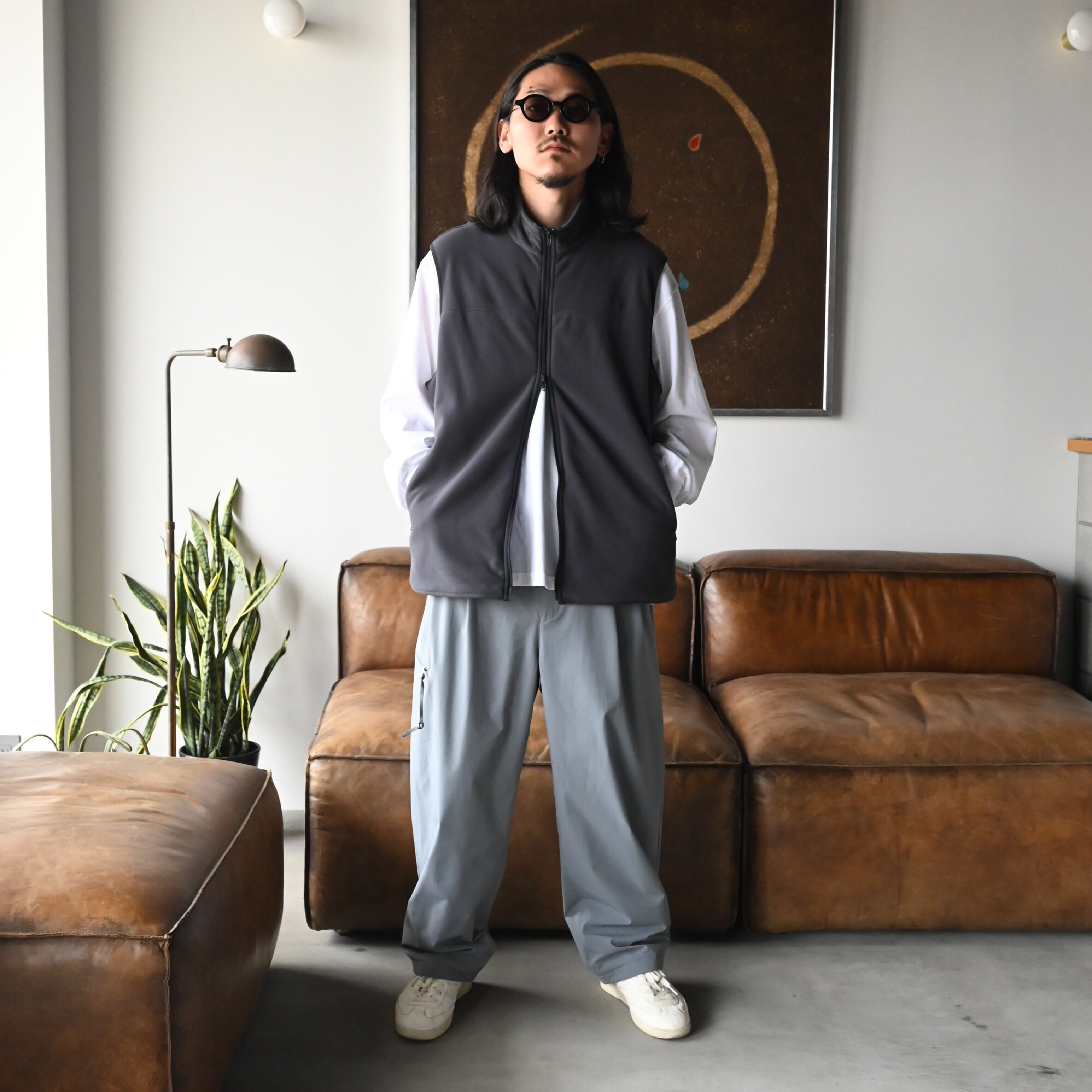 25AW新規取り扱いのploduct twelve(プロダクトトゥウェルブ)、City Active Warm JacketとCity Active Warm Pantsをセットアップ着用、インナーにTHEDAY(ザデイ)のWIND ZONE FLEECE VESTを合わせたグレーベースのスタイリングです。インナーのKUON(クオン)Sashiko L/S Teeもオススメです〇