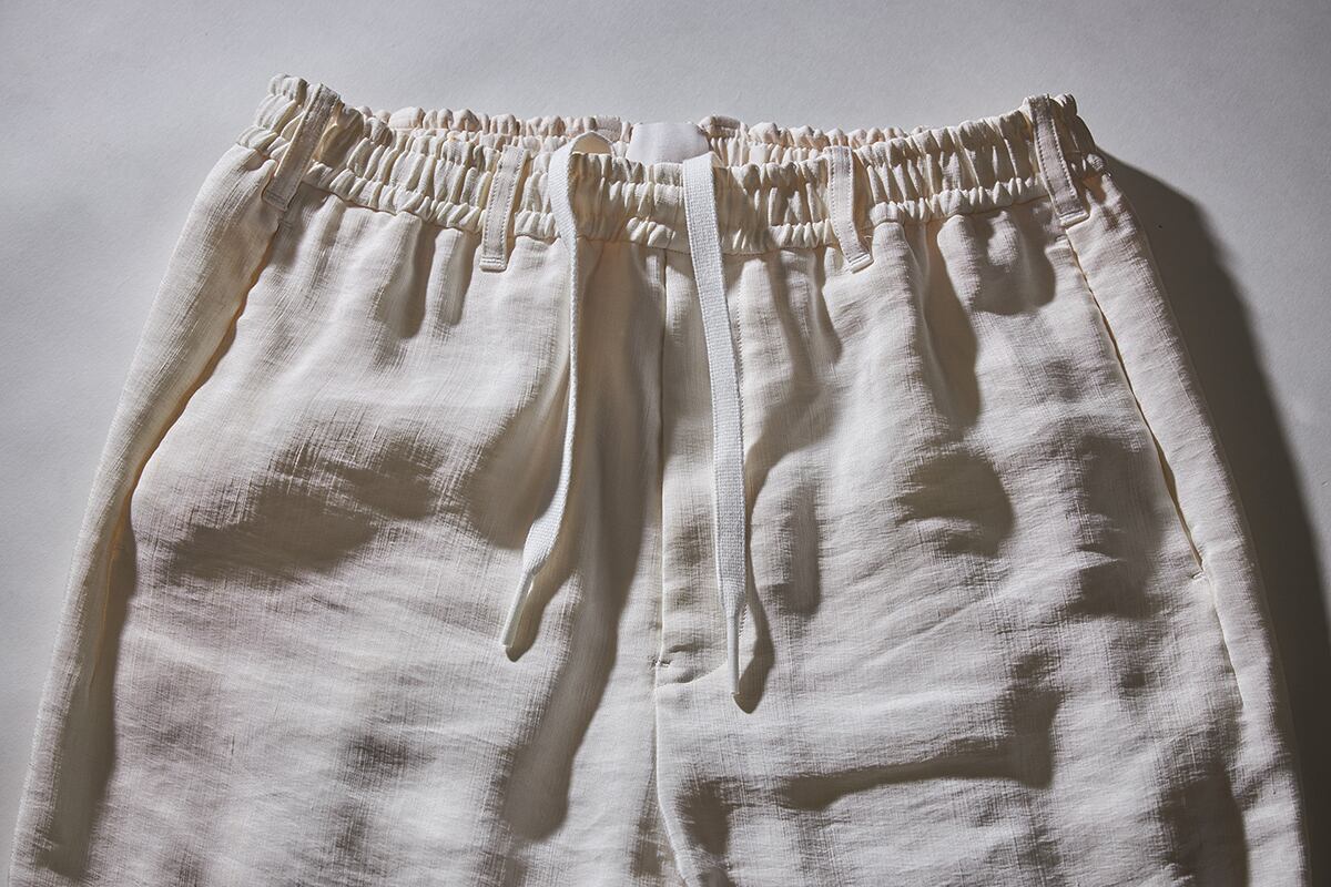 Yamauchi’s signature pants crafted from vintage silk-linen double cloth.