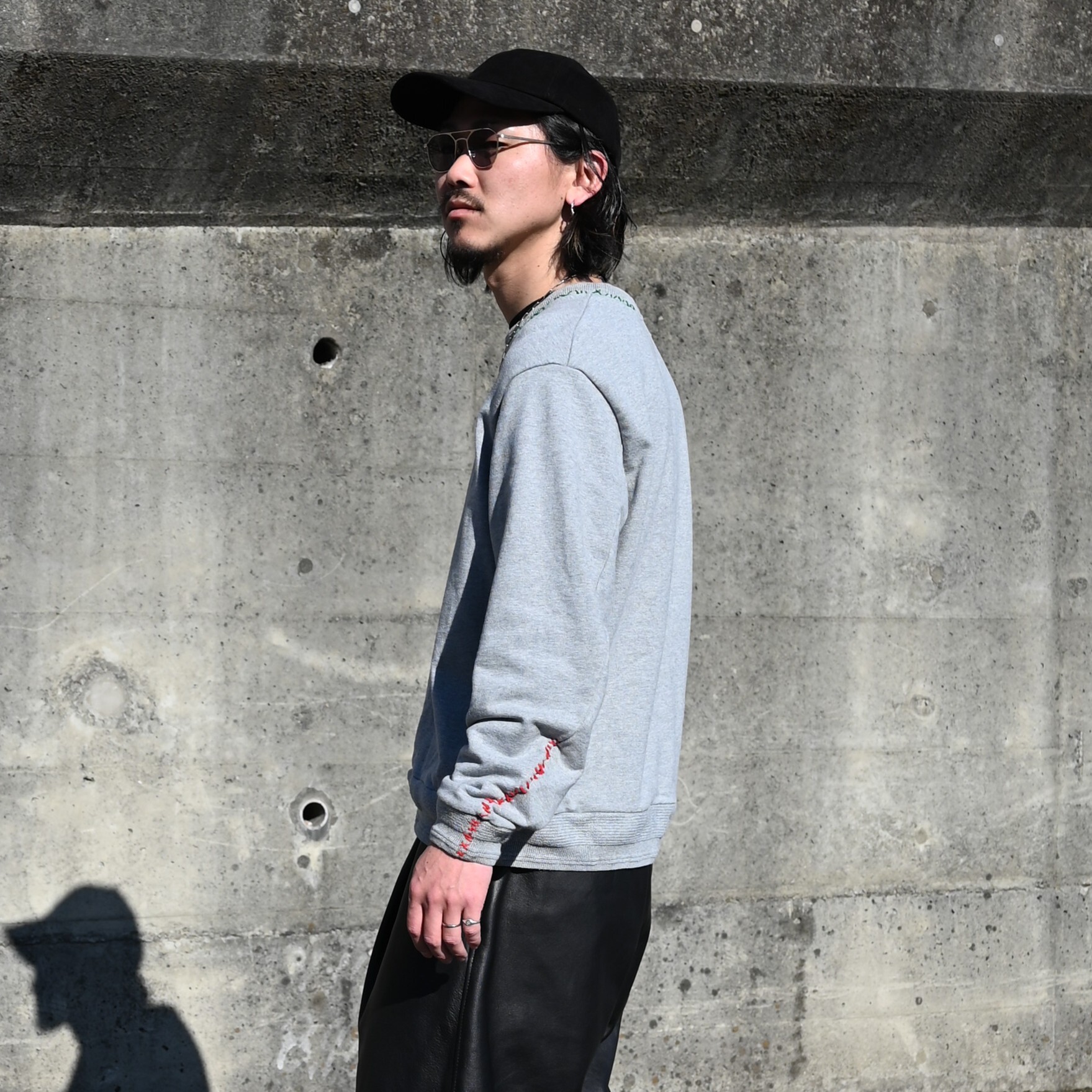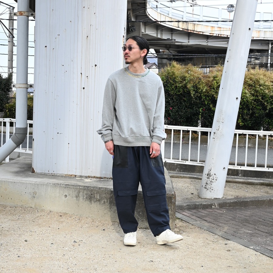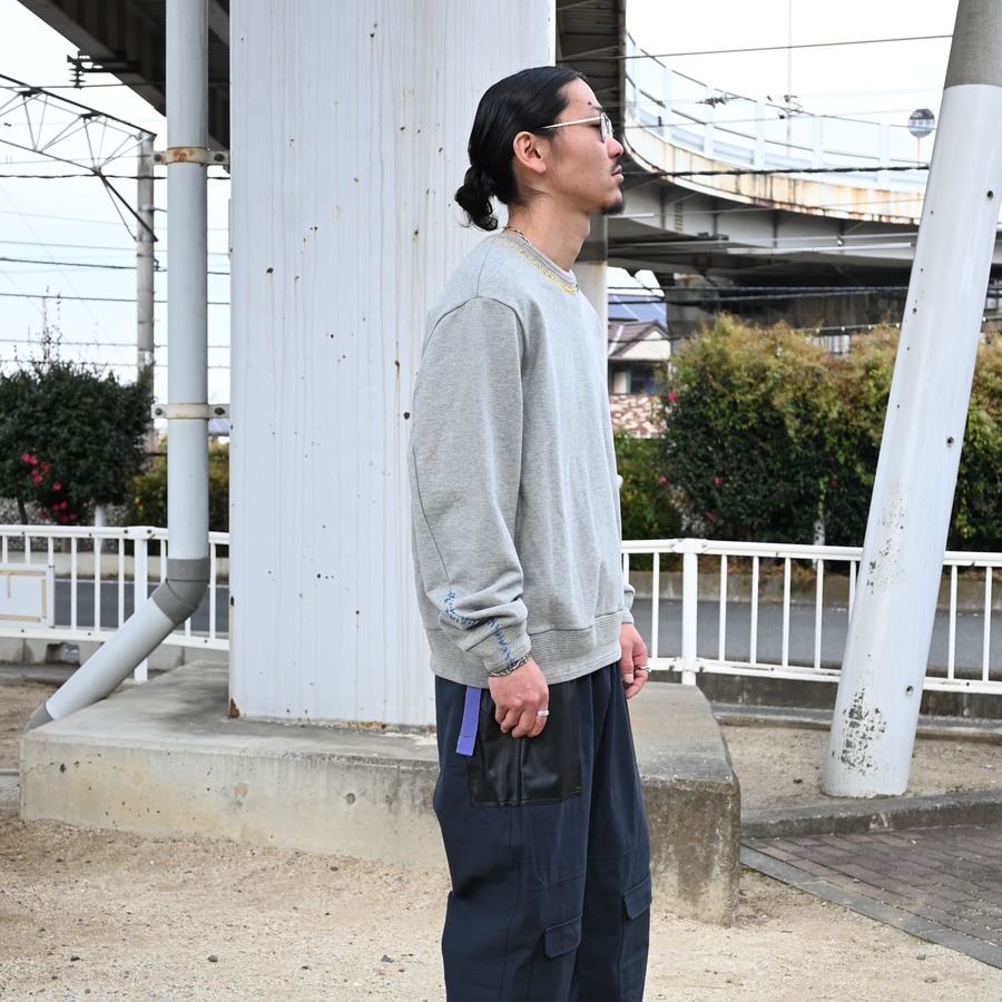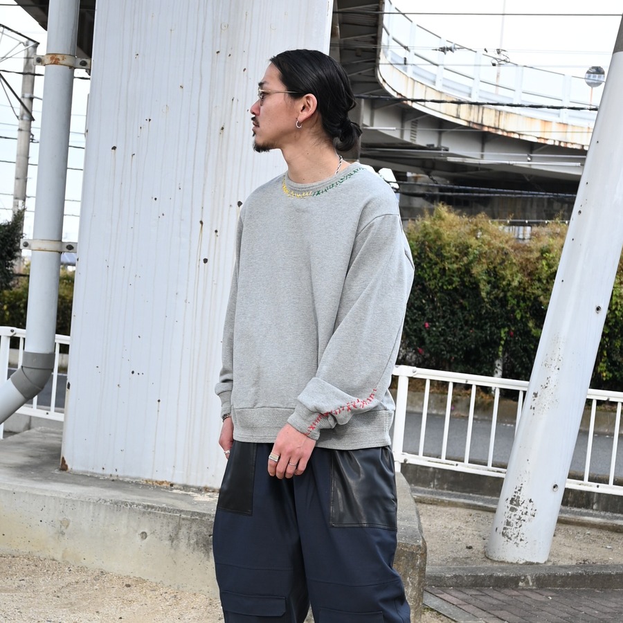 ・襟元、袖口に刺し子を配したスウェット