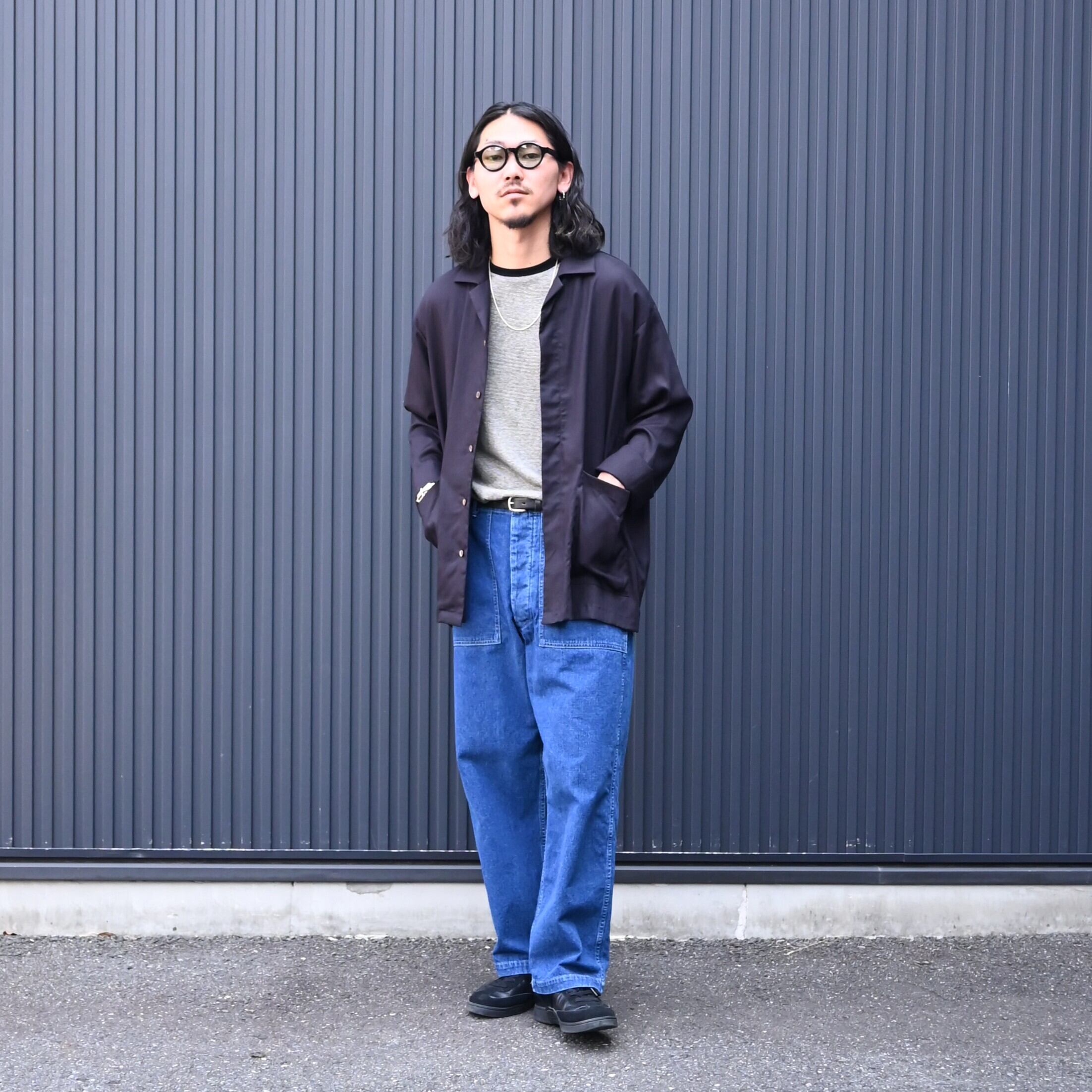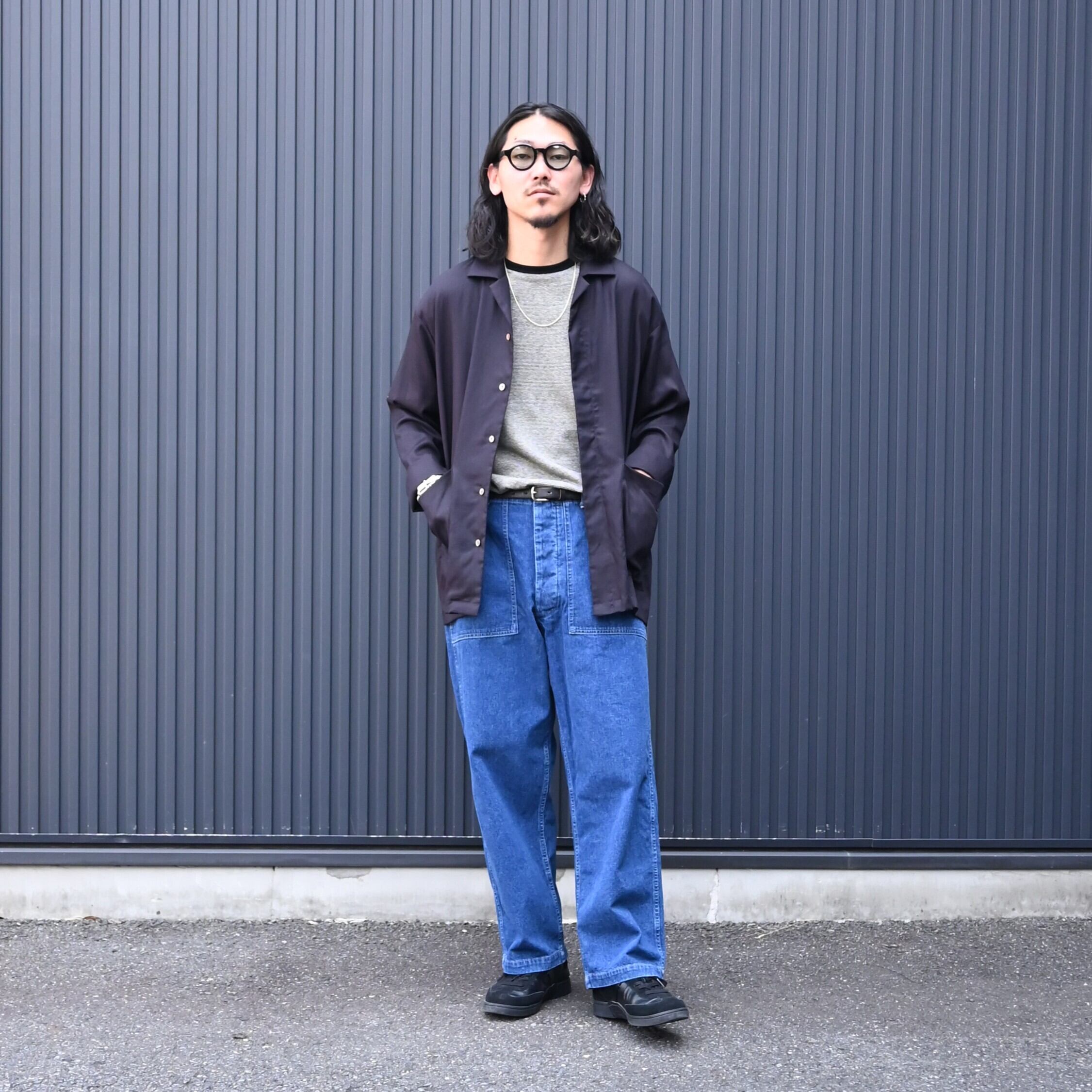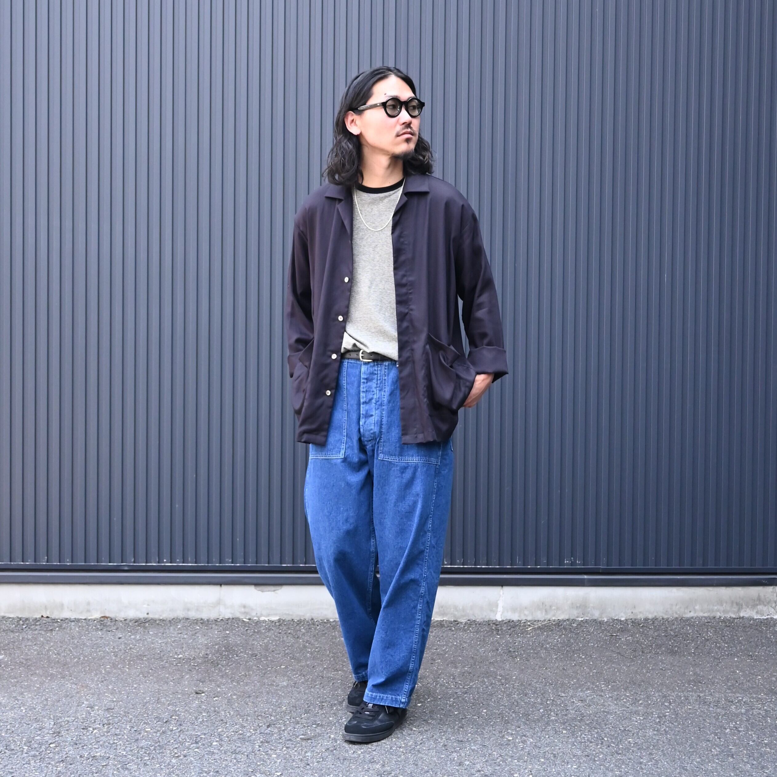 合わせのデニムはUSED SLUB YARN DENIM BAKER PANTSでほどよく色落ちした雰囲気と絶妙な丈感、そしてベイカーパンツベースという点がとても良い。