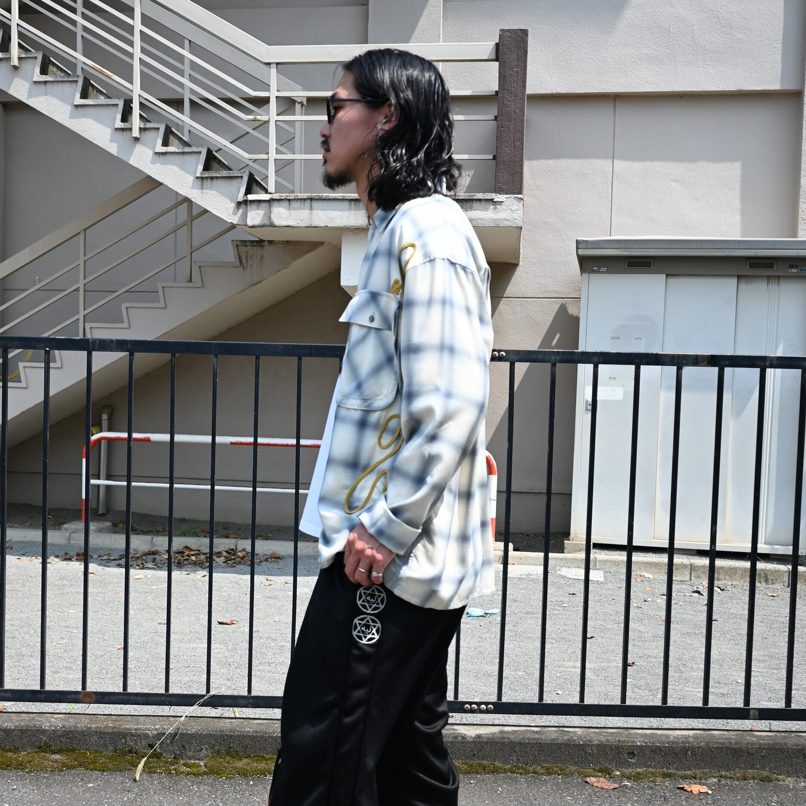 We styled the look around Leh’s latest 25AW release, the Zip Wide Track Pants, paired with the Embroidery Check Shirt and the ADVISORY Big Size Slit T-Shirt.