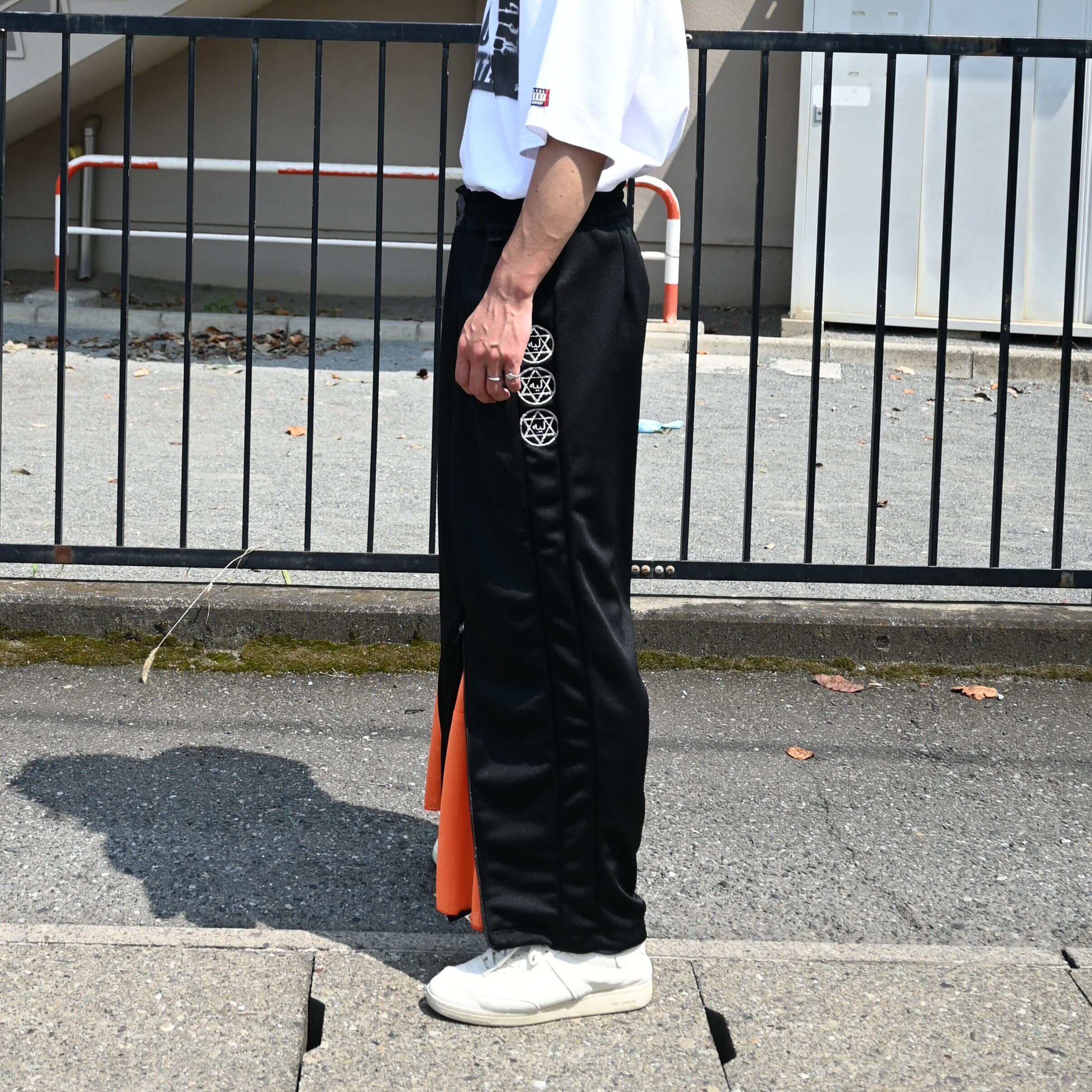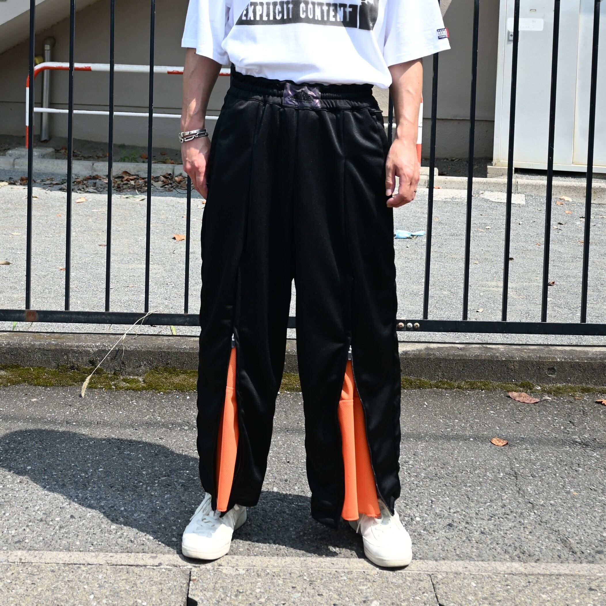 These versatile track pants can transform into a flared-like silhouette with the zipper opening, and the inner mesh lining in orange adds a striking accent to the overall styling.