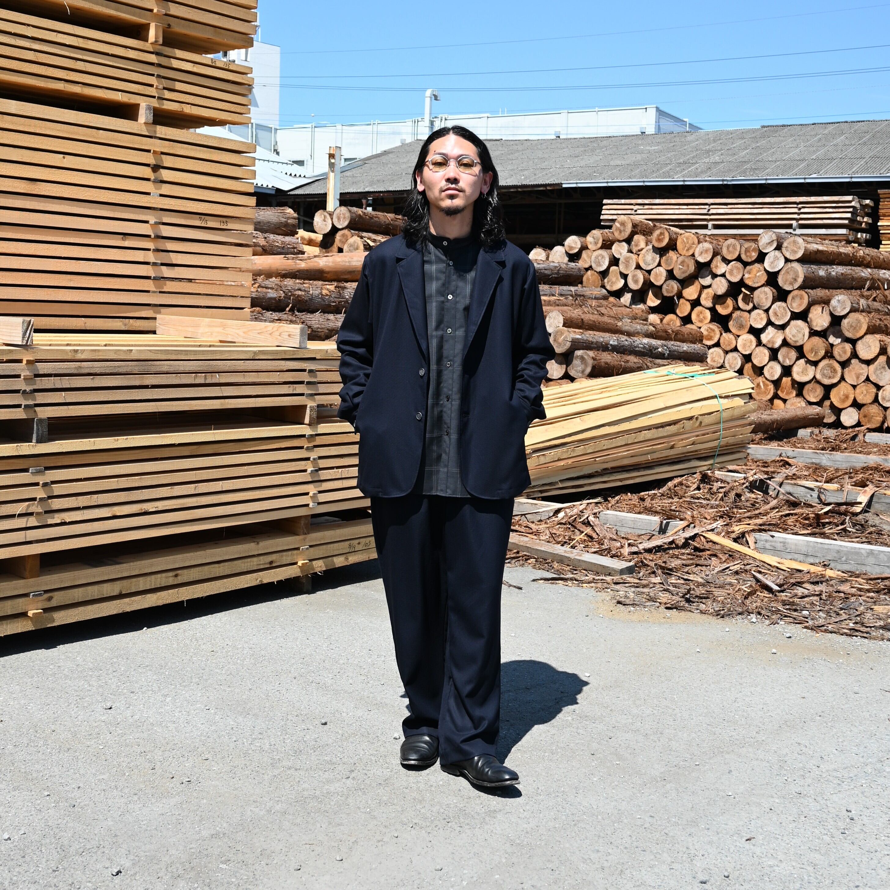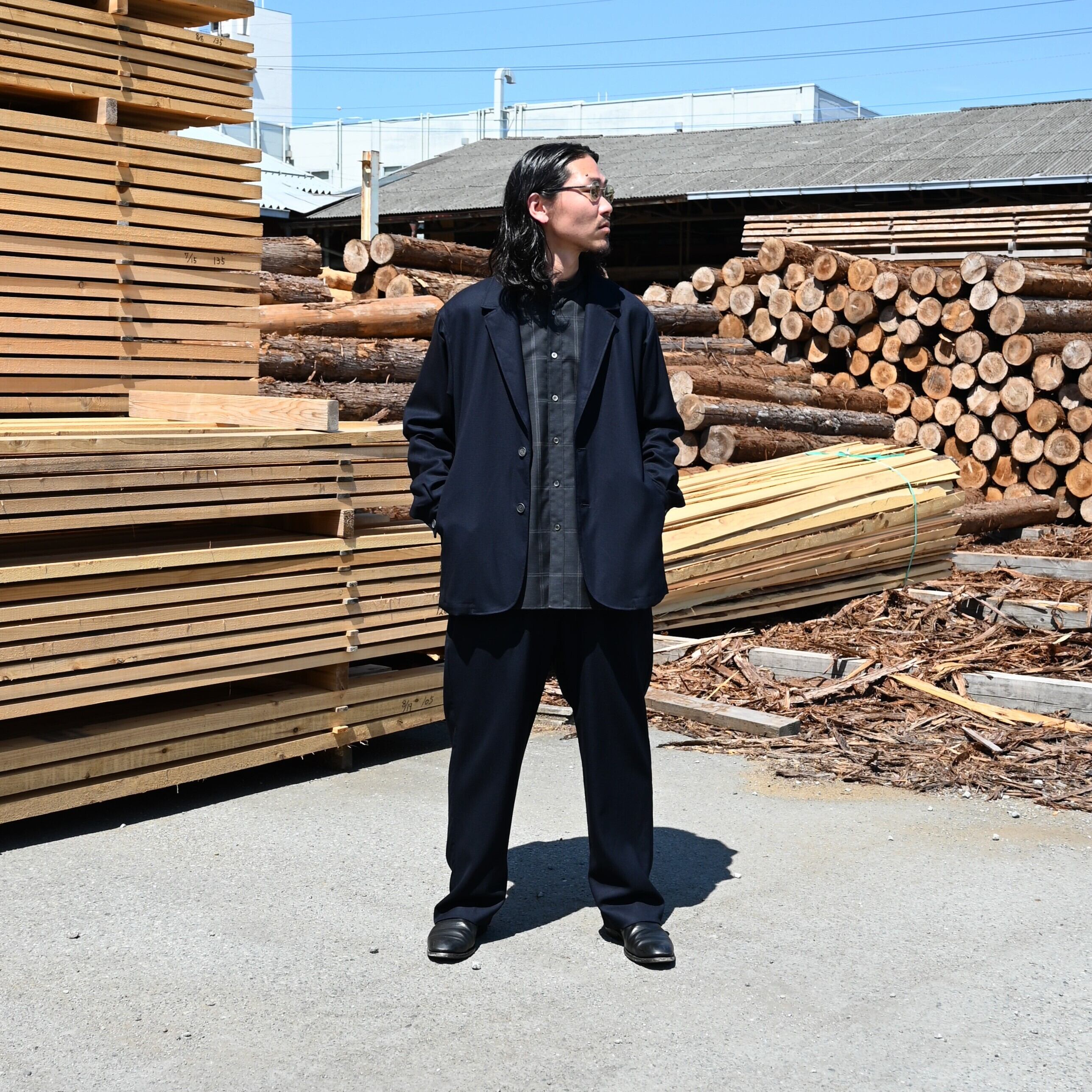 This setup, made using the wool mesh fabric developed by Yamauchi, who undoubtedly creates top-class textiles in the industry, showcases excellent craftsmanship. Our selected items feature pre-washed fabric, which retains the elegant texture of wool while providing a relaxed feel with just the right amount of casualness.