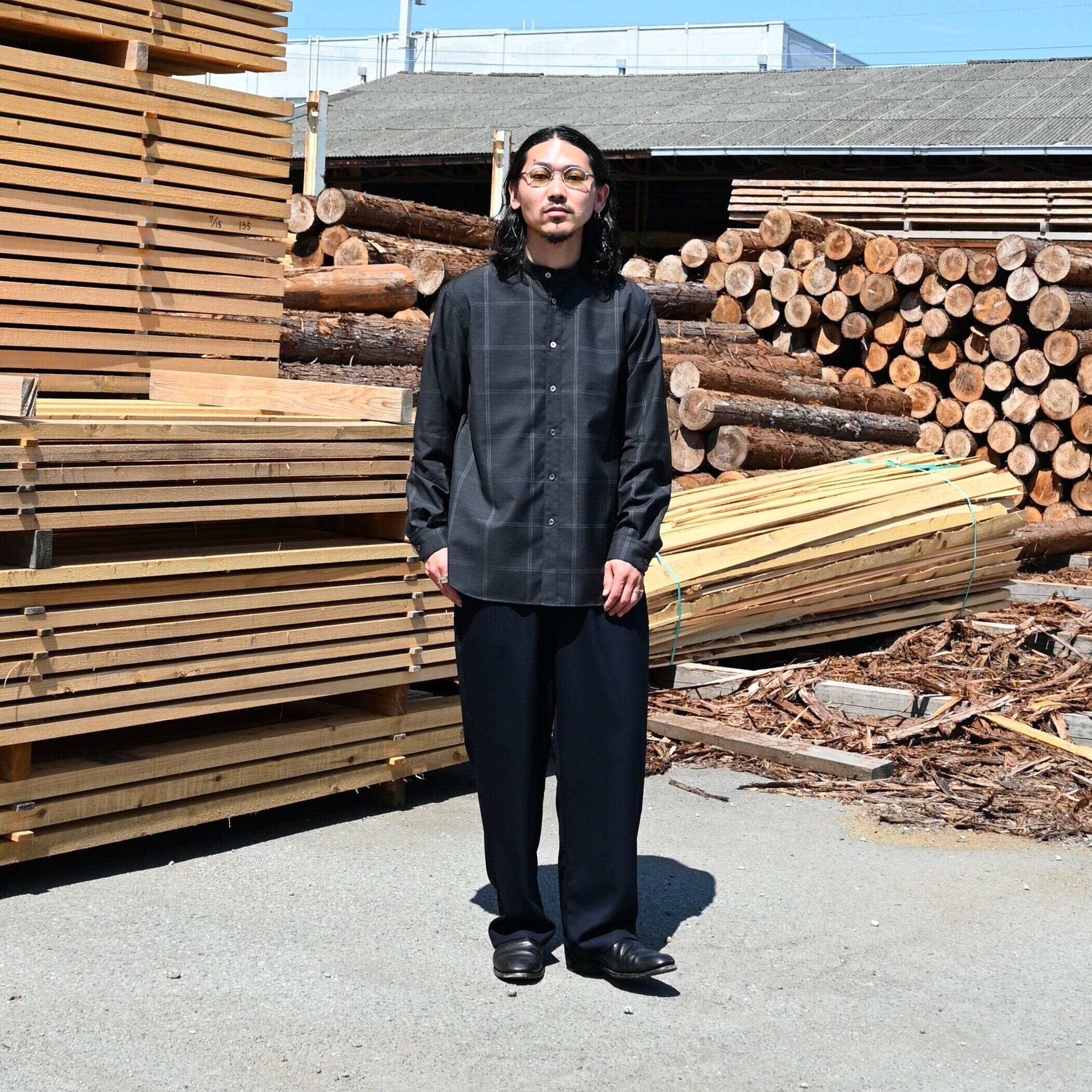 山内 / ノーミュールシングウール・ビッグウィンドウペンシャツ スタンドカラー