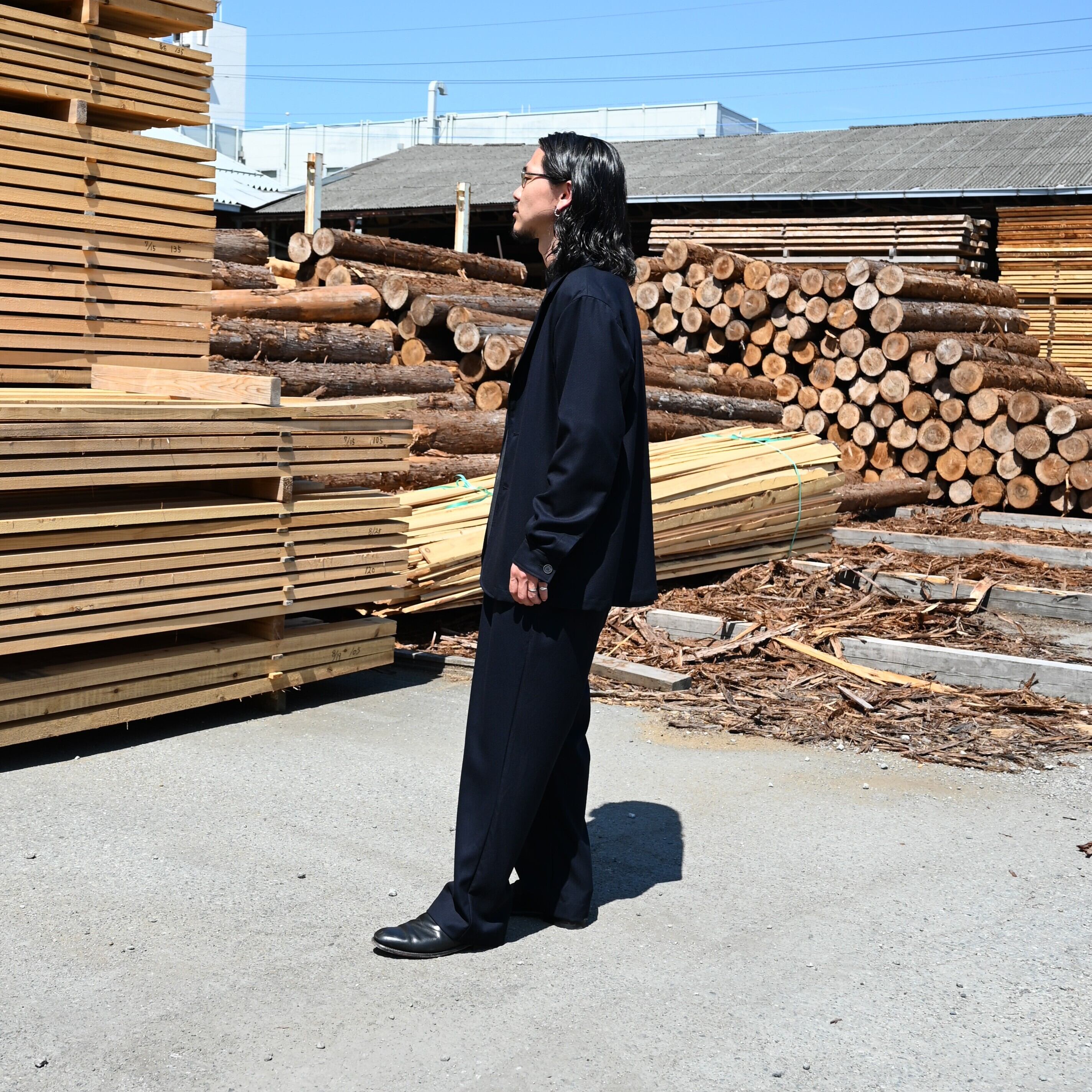 間違いなく業界でトップクラスのテキスタイルを作る山内が展開するウールメッシュクロス生地を使用したセットアップ、縫製の良さはもちろんですが当店セレクト品は洗い加工された生地の為、ウールの持つ上品な風合いはありつつも程よくカジュアルさもあるリラックス感のあるセットアップです。