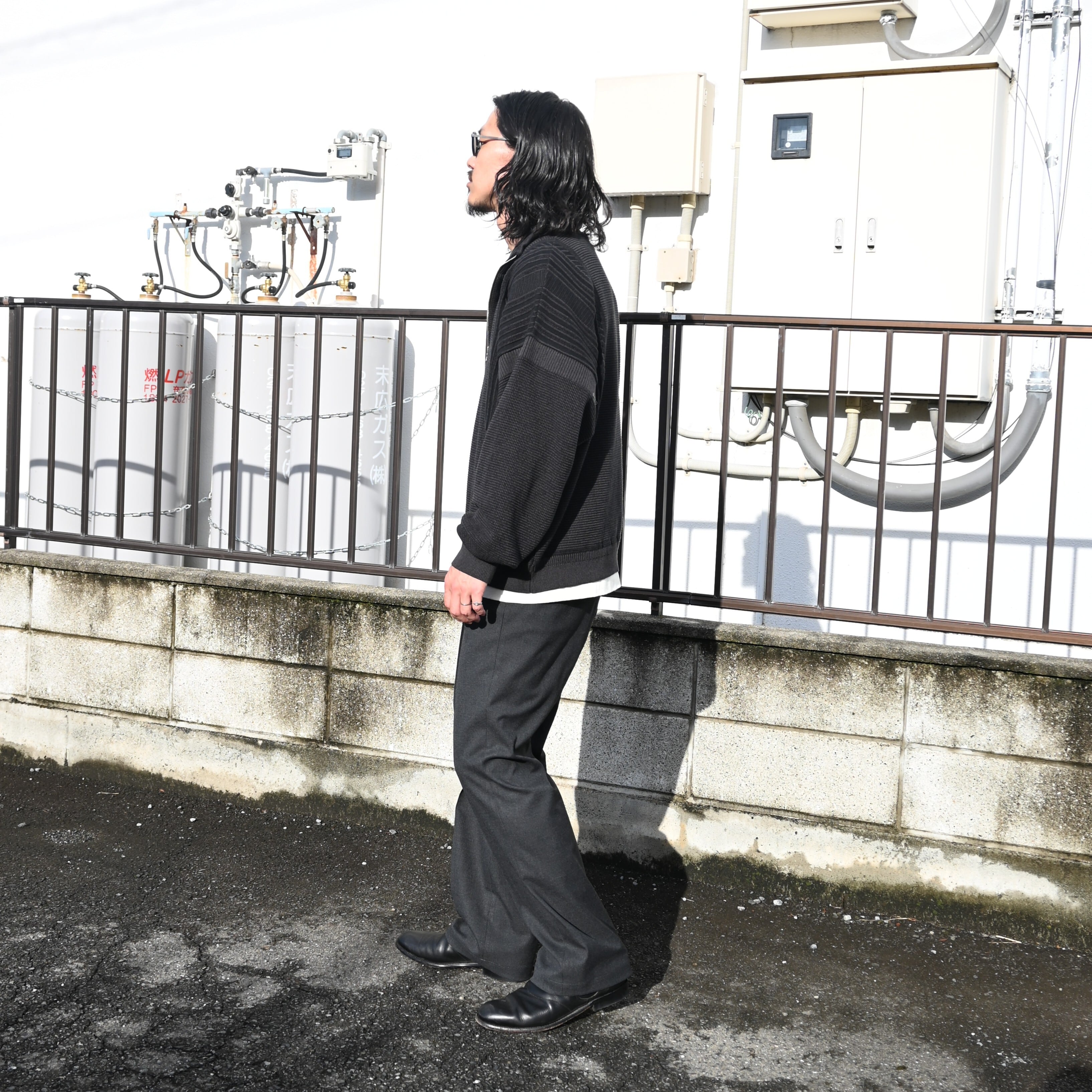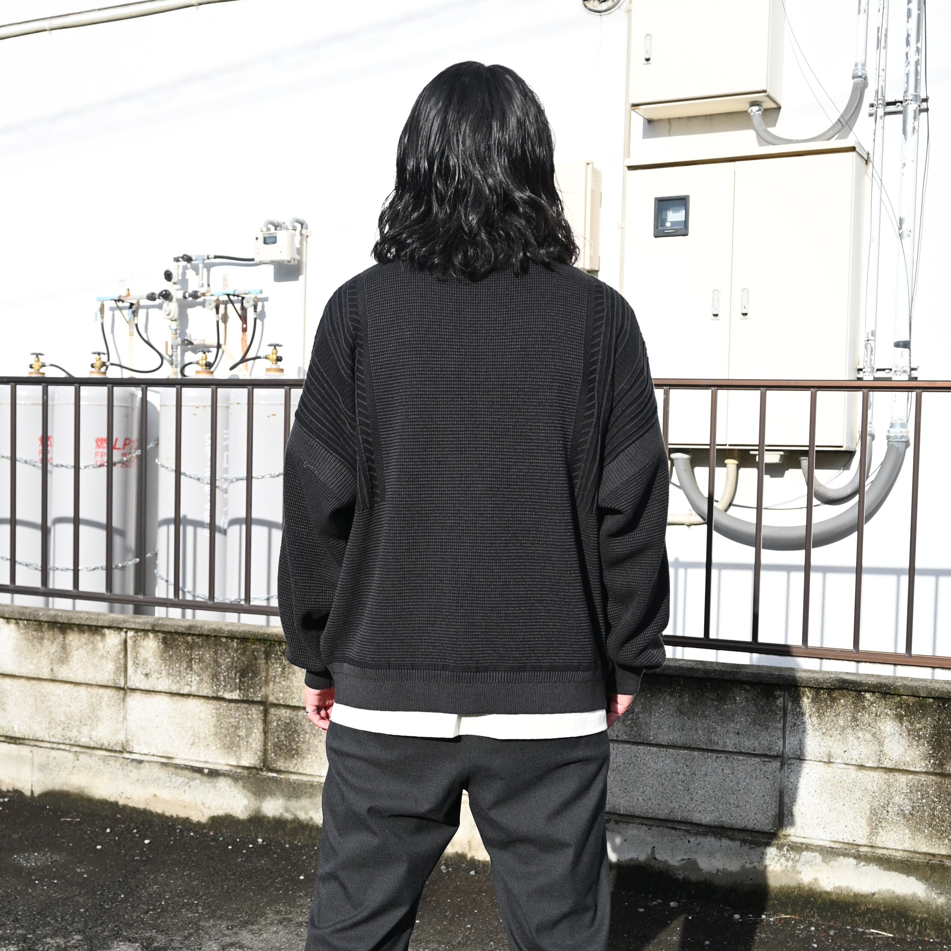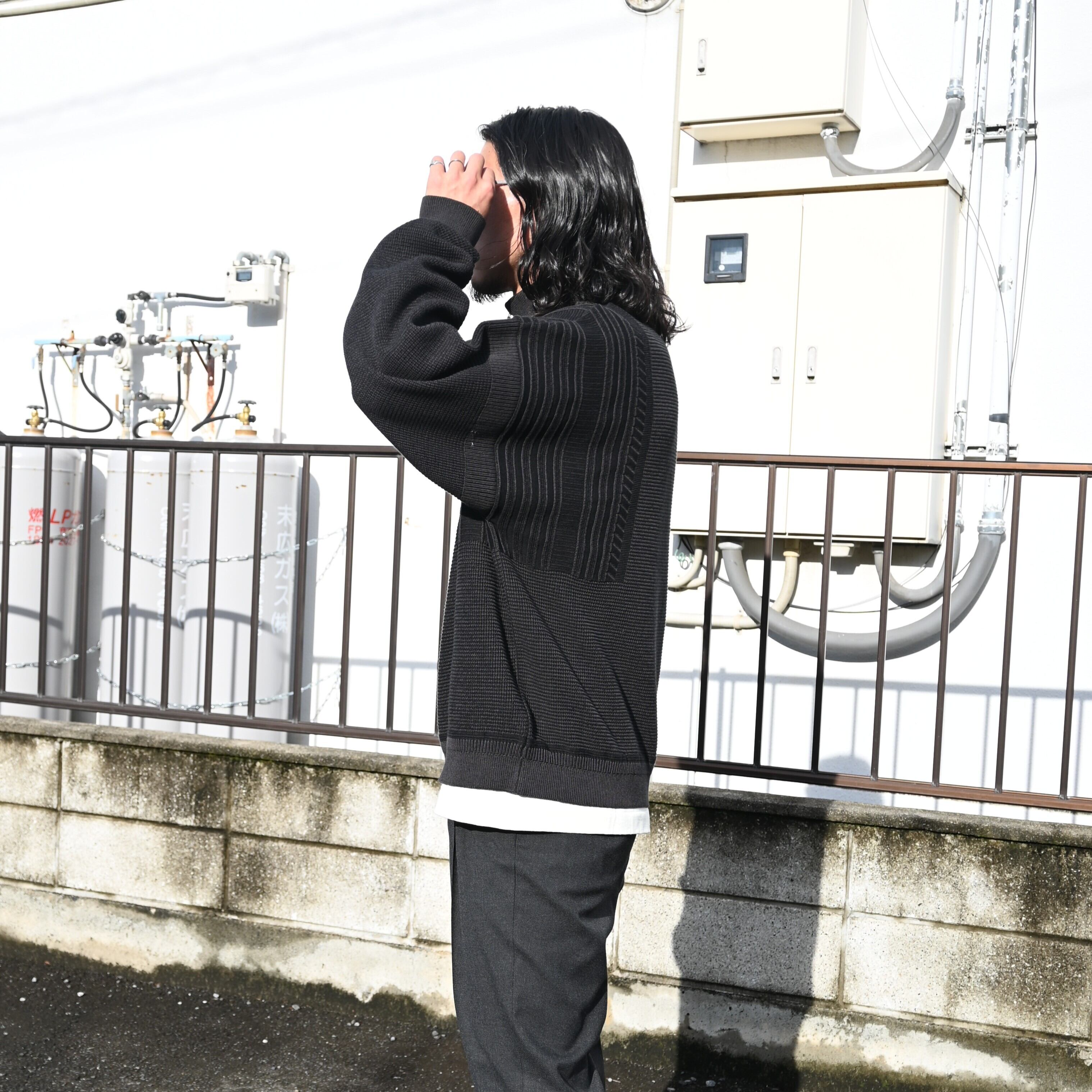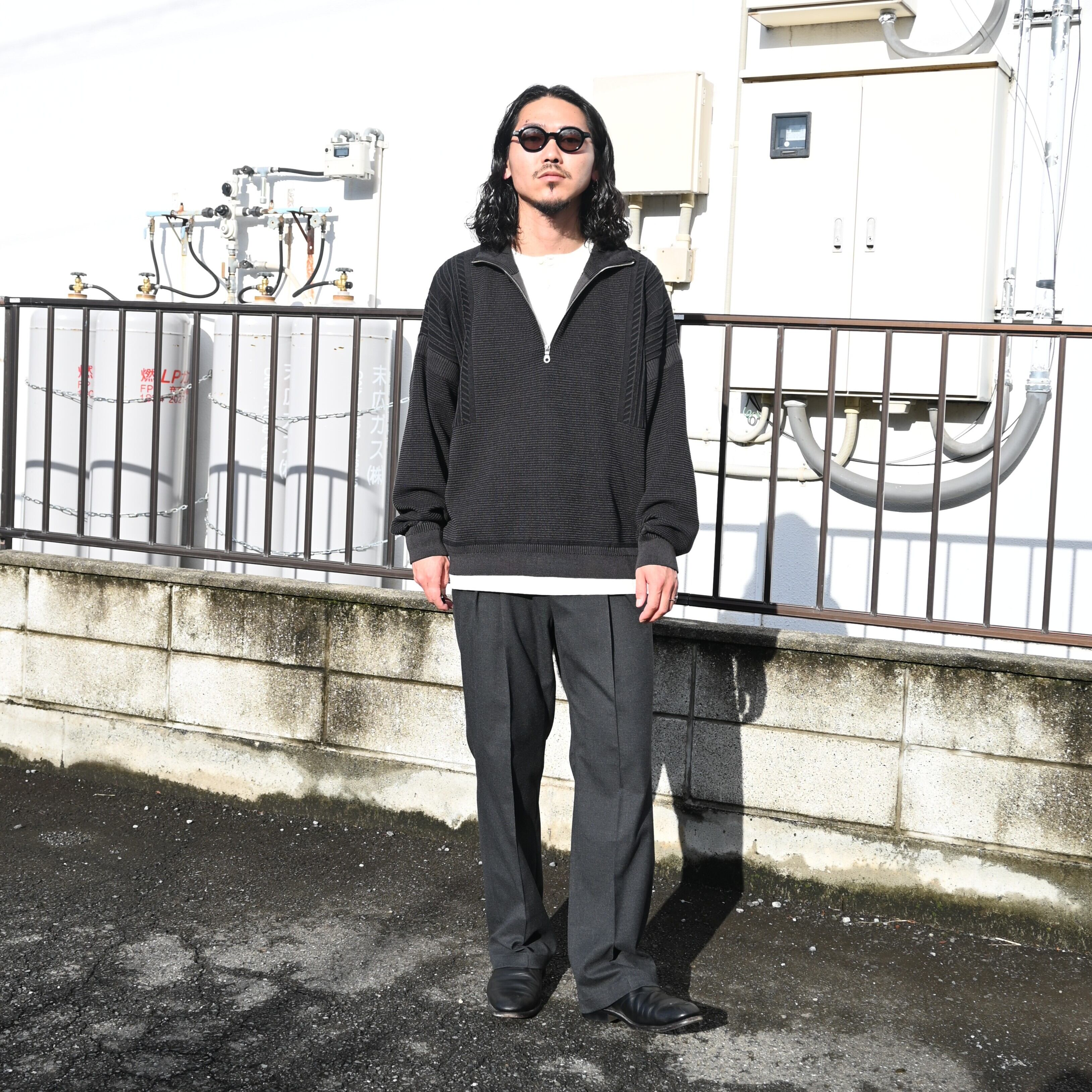 YASHIKI(ヤシキ)新作バイイング事故発生のハーフジップニットブラックのスタイリング。