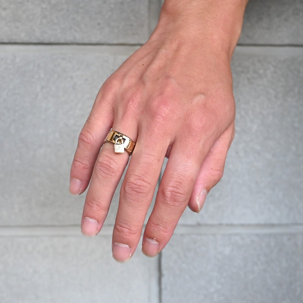 • A silver jewelry piece featuring the iconic Touret clasp and Cadena (padlock).